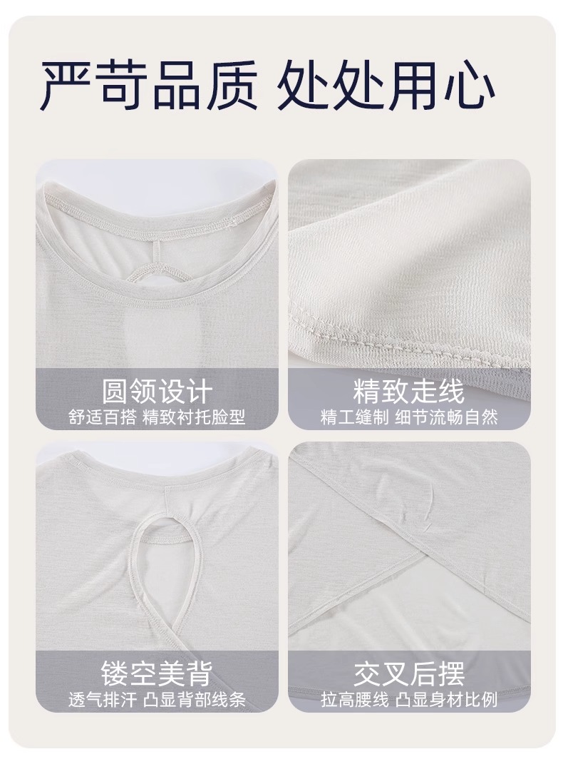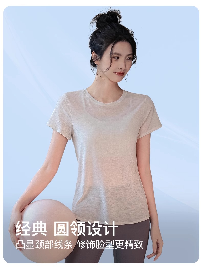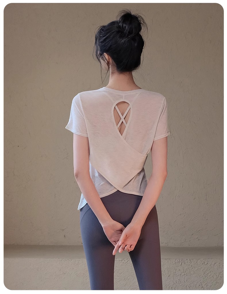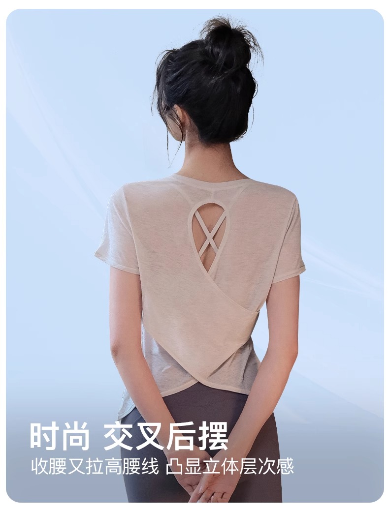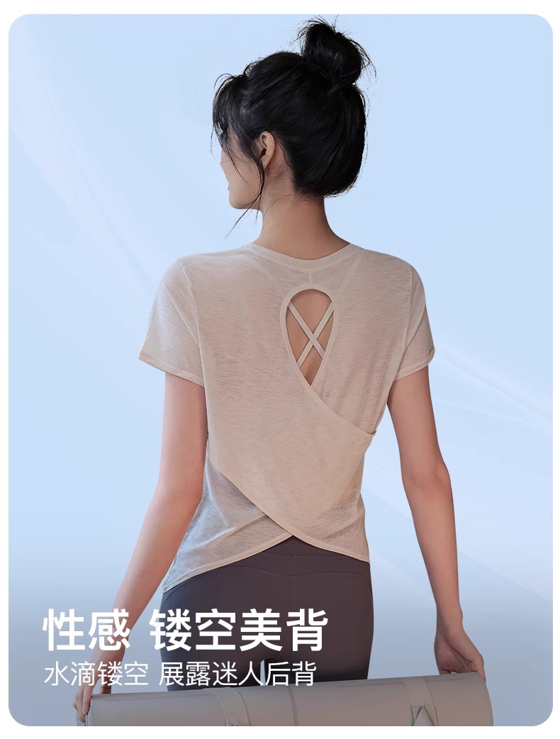 跃牌【安琪拉系列】夏季竹节纱透气瑜伽T裇镂空美背运动上衣女TX41025
