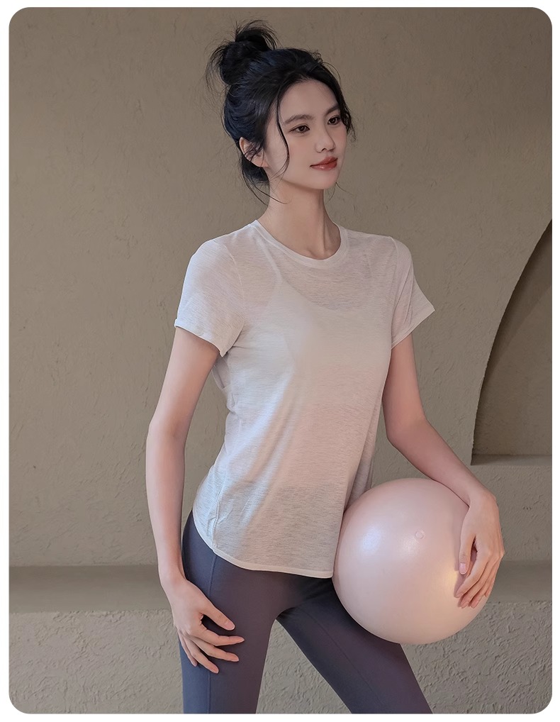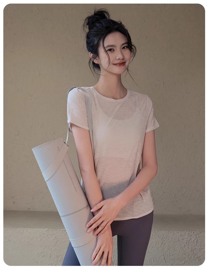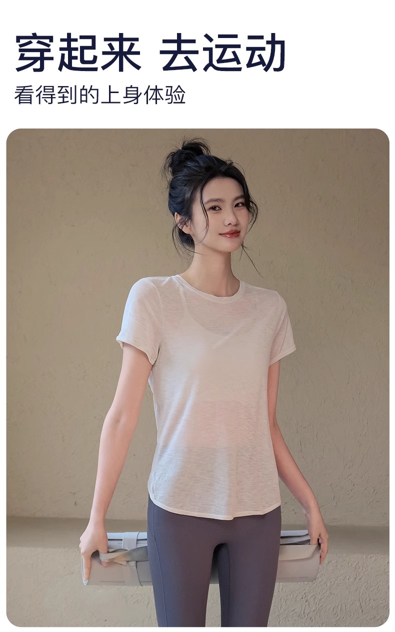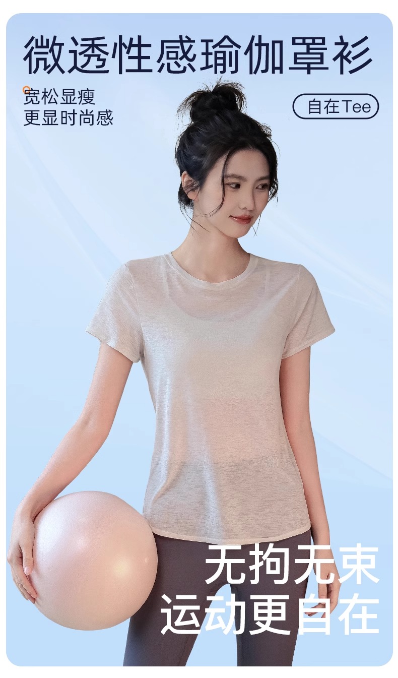 跃牌【安琪拉系列】夏季竹节纱透气瑜伽T裇镂空美背运动上衣女TX41025