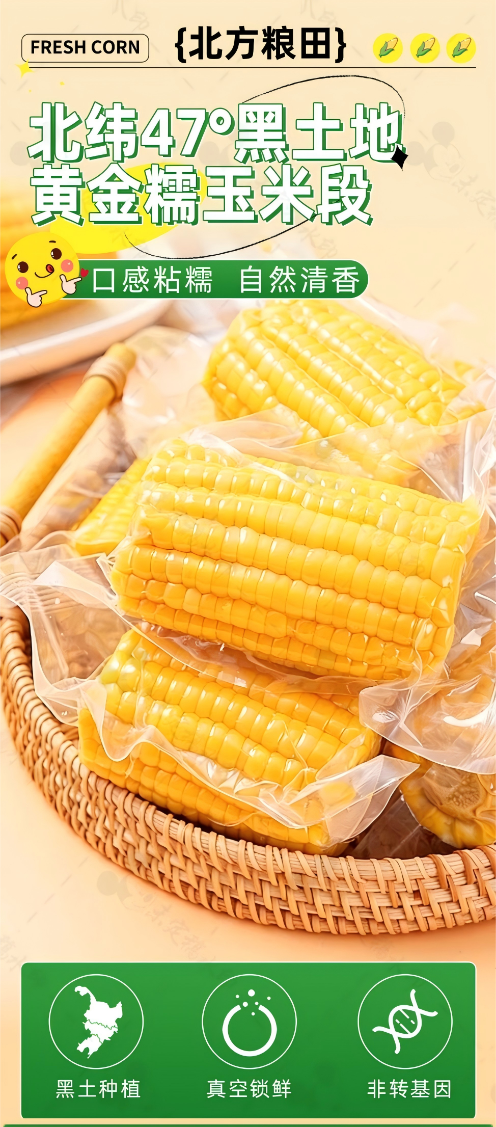 北方粮田 鲜食黄糯玉米段 18根 非转基因玉米,商超同款,品质放心;进口HG耐高温抗紫外线蒸煮袋,3小时真空锁鲜;粒粒饱满 ,软糯香甜,老少皆宜