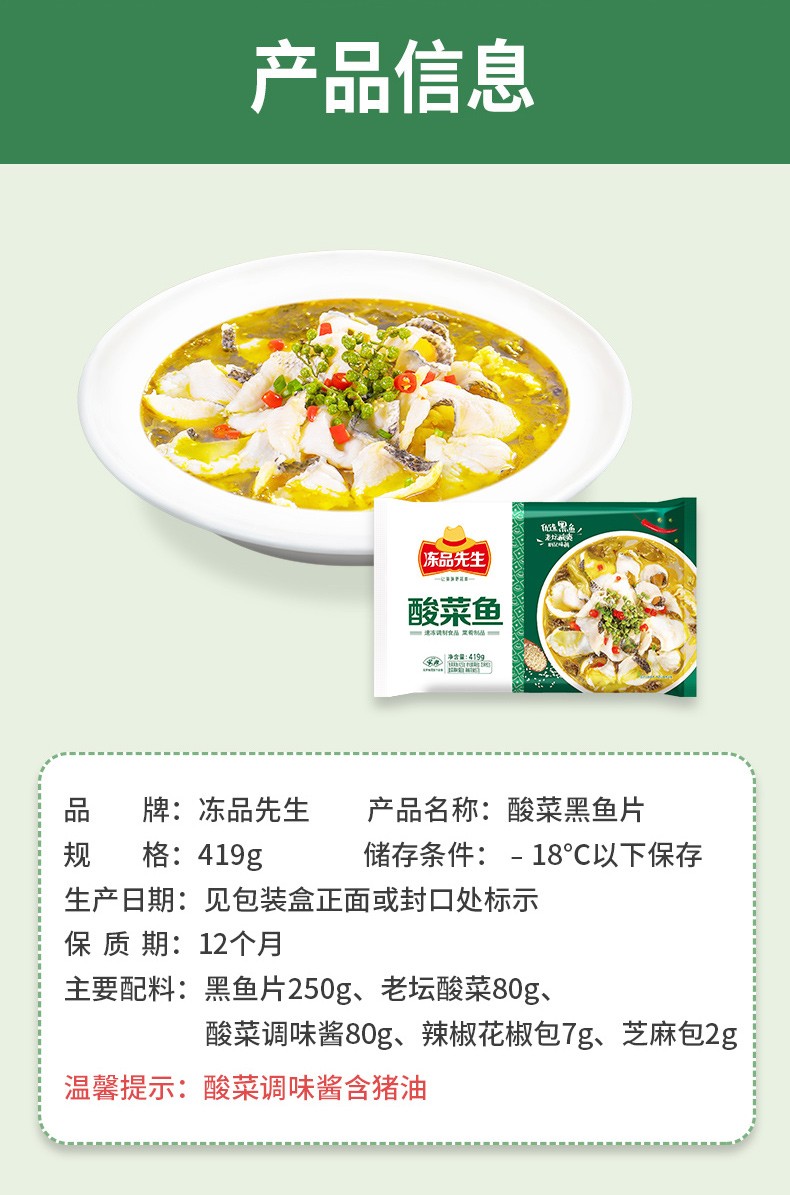 419g冻品先生酸菜鱼 酸爽可口 肉质紧实