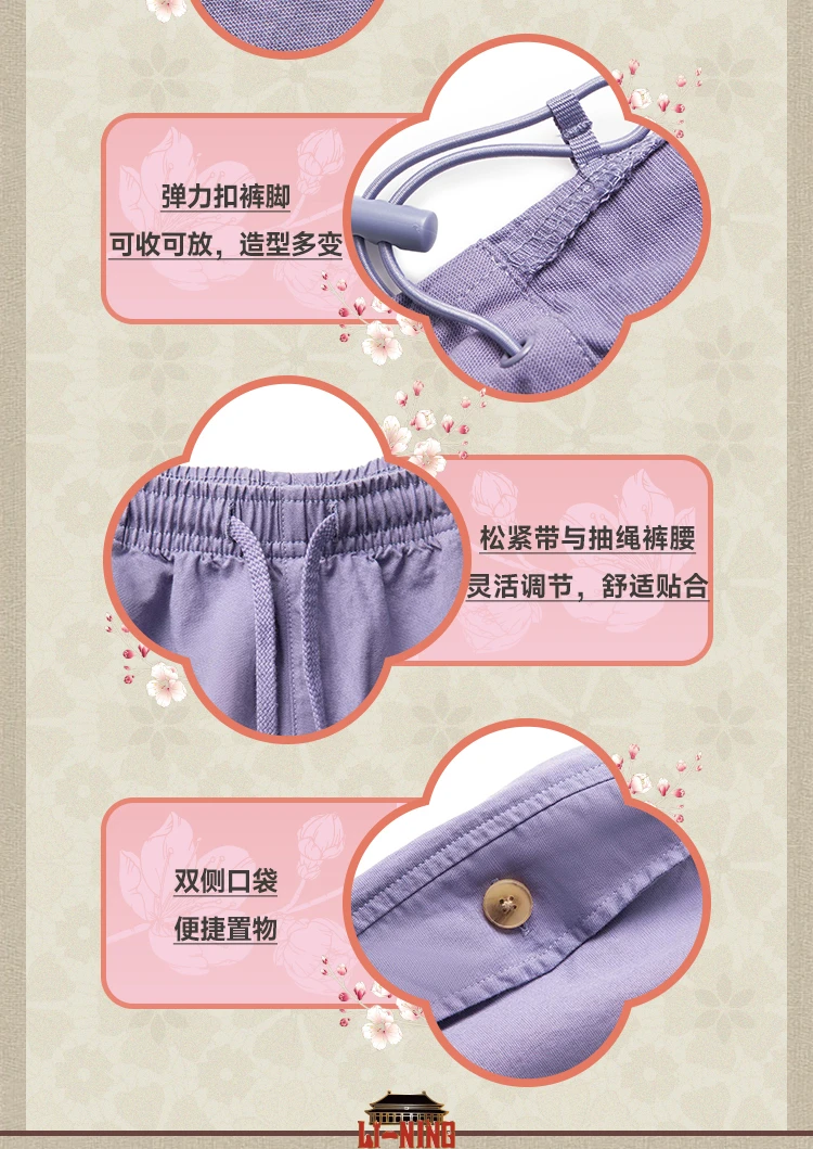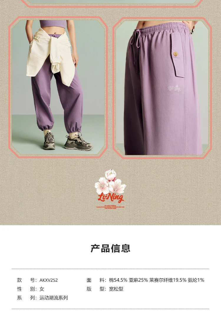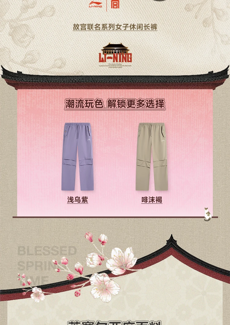【M断码】李宁中国文化系列故宫联名妙笔生花女子直筒宽松基础直筒裤休闲长裤AKXV252【库存有限,如无货将做退款,介意慎拍!】