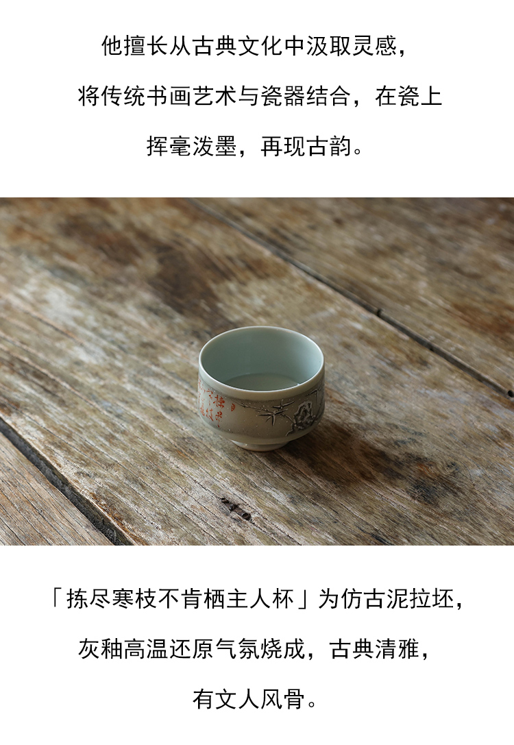 茶香记 乎上堂拣尽寒枝不肯栖主人杯90ml景德镇陶瓷茶杯手绘品杯