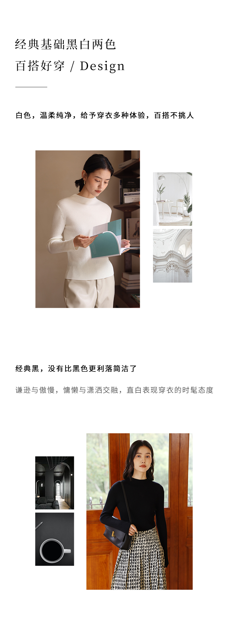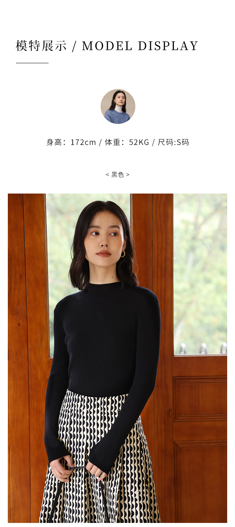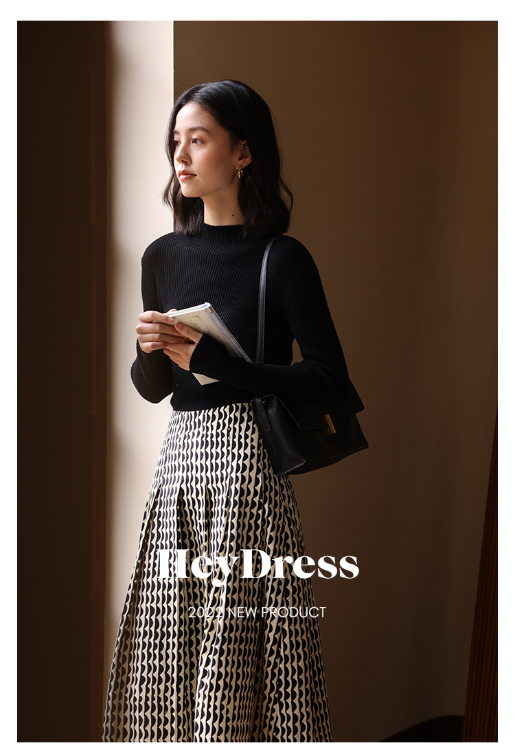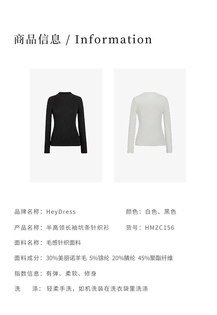HeyDress可机洗半高领针织衫女秋冬美丽诺羊毛修身显瘦打底衫毛衣