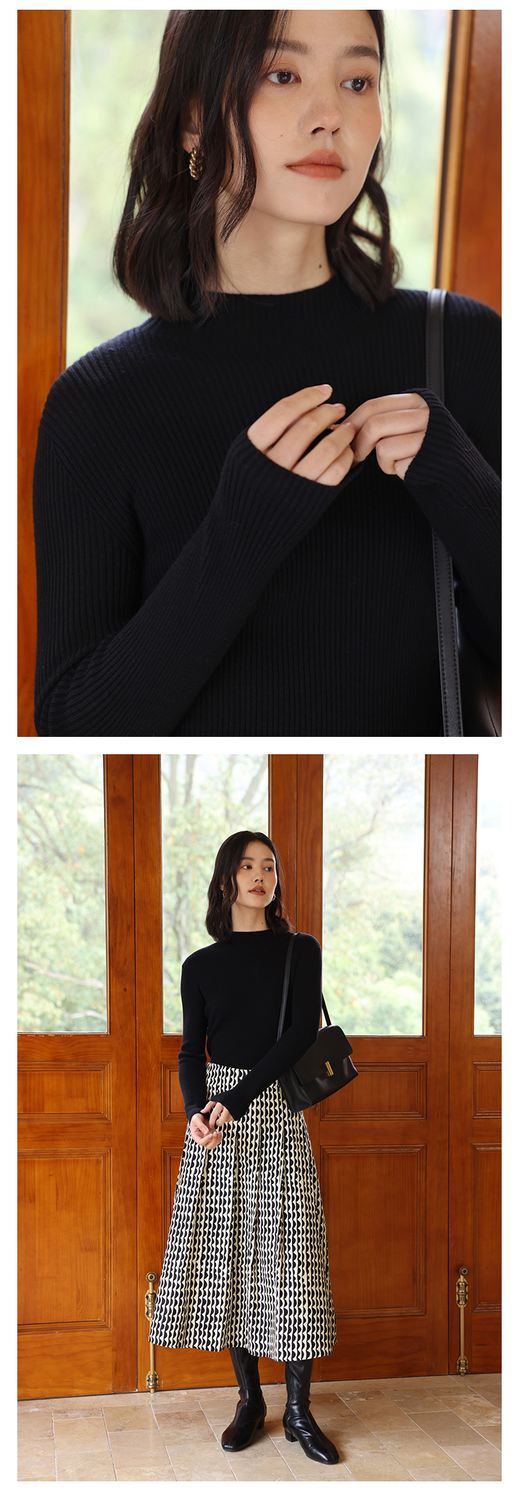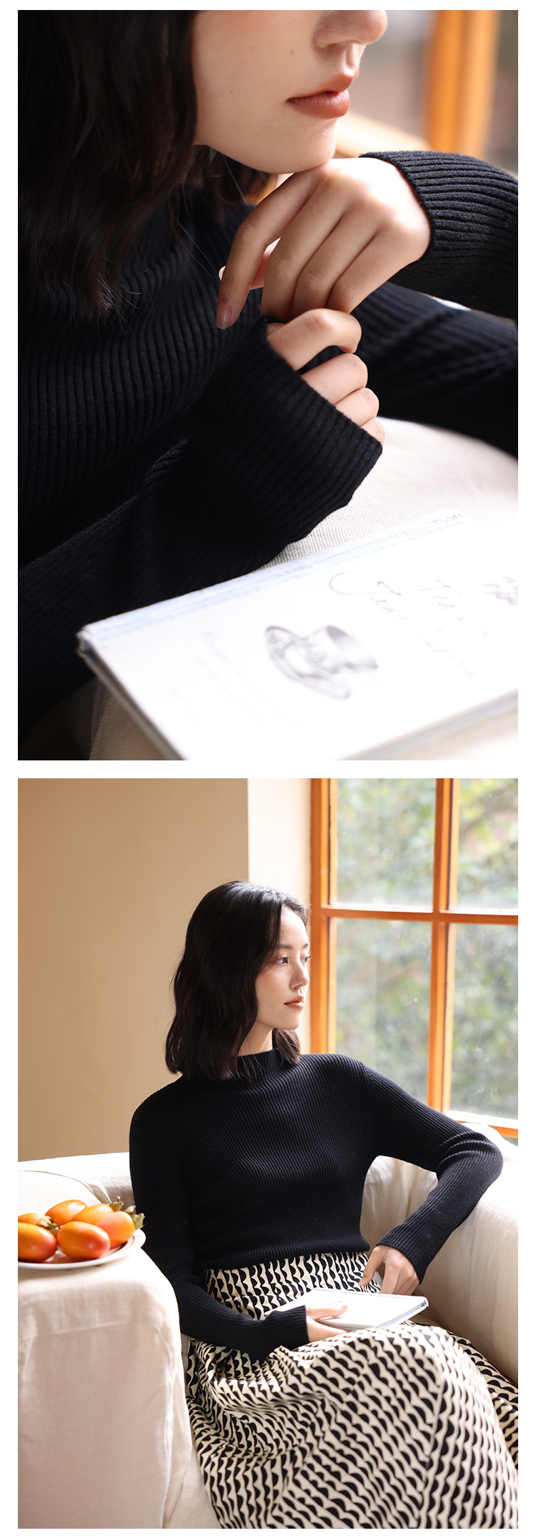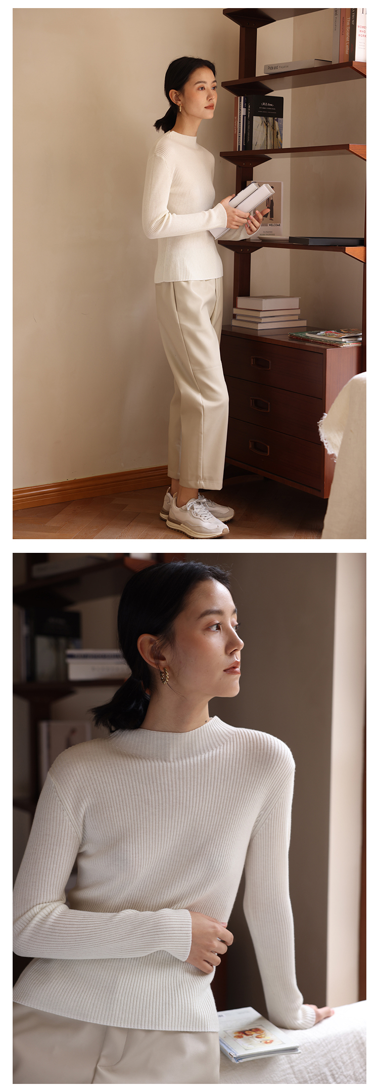 HeyDress可机洗半高领针织衫女秋冬美丽诺羊毛修身显瘦打底衫毛衣