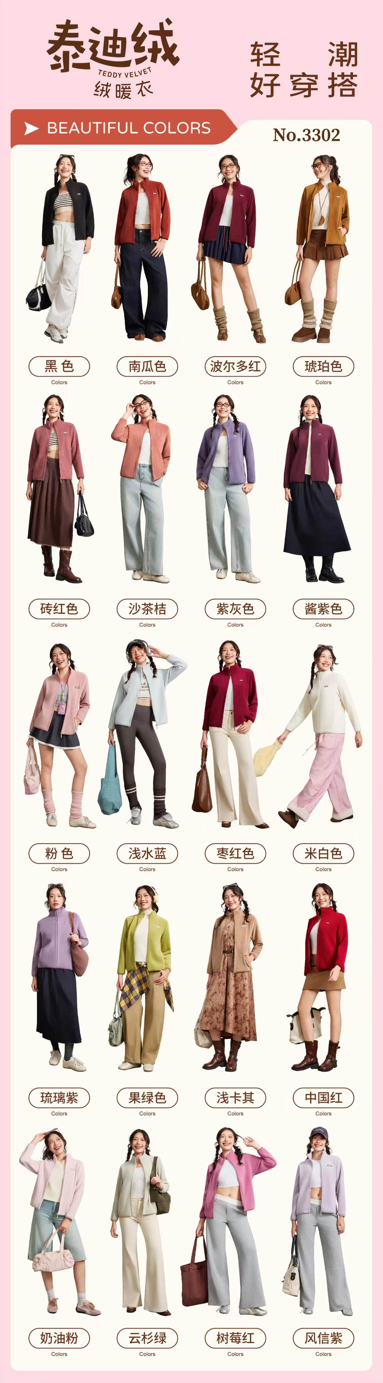 【品名】LS竹炭纤维女士24款泰迪绒外套3302