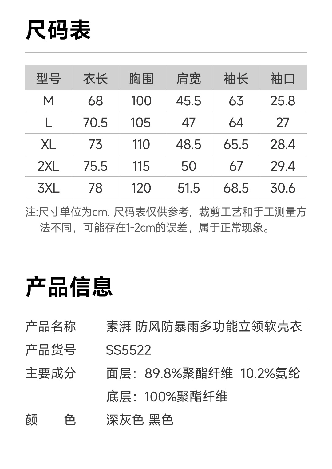 好奇专属【25秋冬季新款 全面升级】素湃软壳衣SS5521/素湃立领魔壳外套SS5522 高效透湿保干爽 内层吸潮气