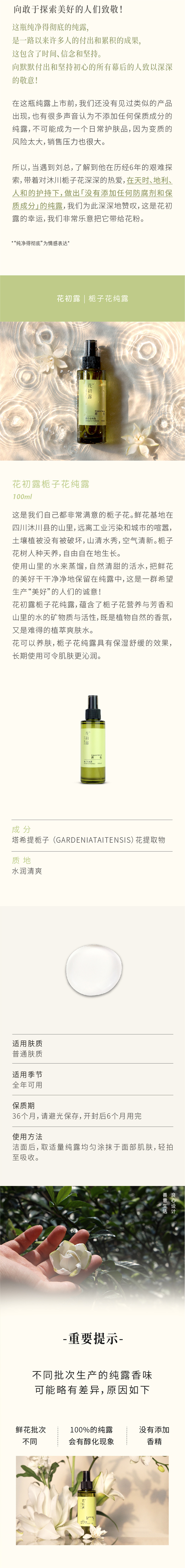 栀子花纯露 | 100ml/瓶 淡雅清香 清透水润 爽肤水 玻璃瓶装 花初露