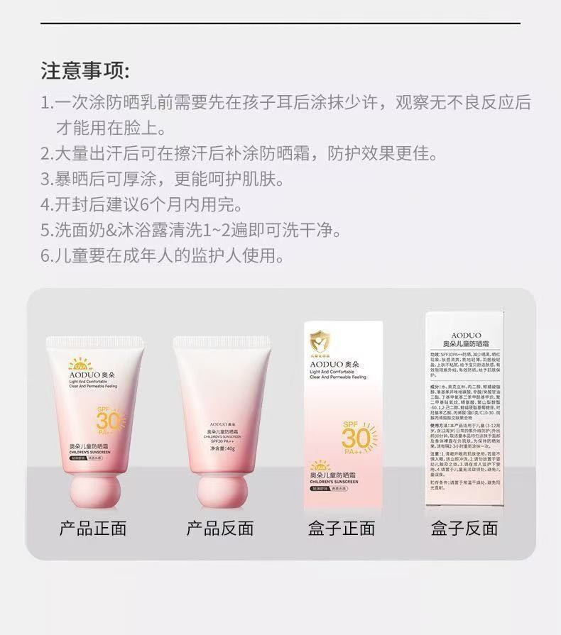 【温和安全!清透质地】奥朵儿童防晒霜宝宝幼婴儿男女童小孩学生专用青少年防晒乳。xa