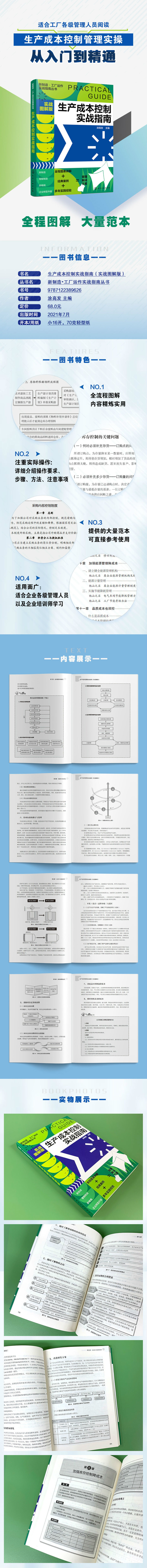 《生产成本控制实战指南(实战图解版)》一书分两篇:第一篇为成本管理的基础工作,包括成本管理的框架、成本管理体系建立、实施定额管理、实施作业标准化四章内容;第二篇为生产成本控制实操,包括从设计之始控成本、从采购源头控成本、现场物料使用成本控制、加强库存控制降成本、消除浪费降成本、加强能源管理降成本、品质成本也须控制、降人力资源成本、生产成本核算与分析九章内容。