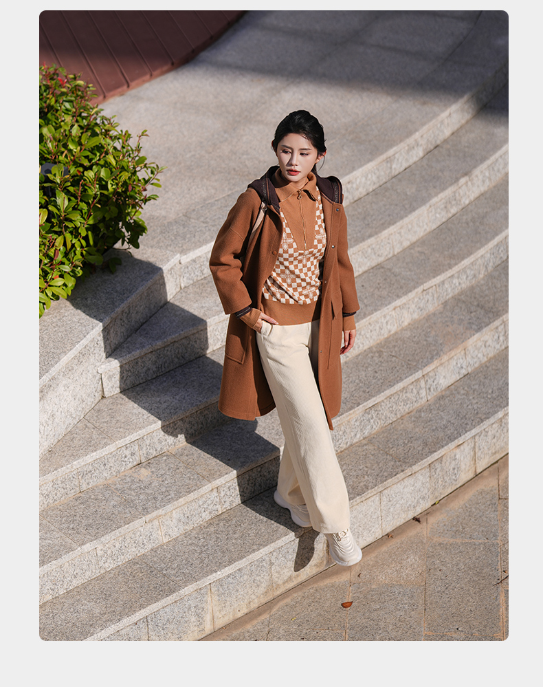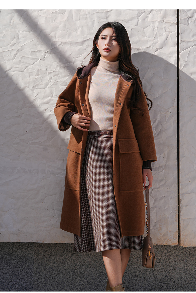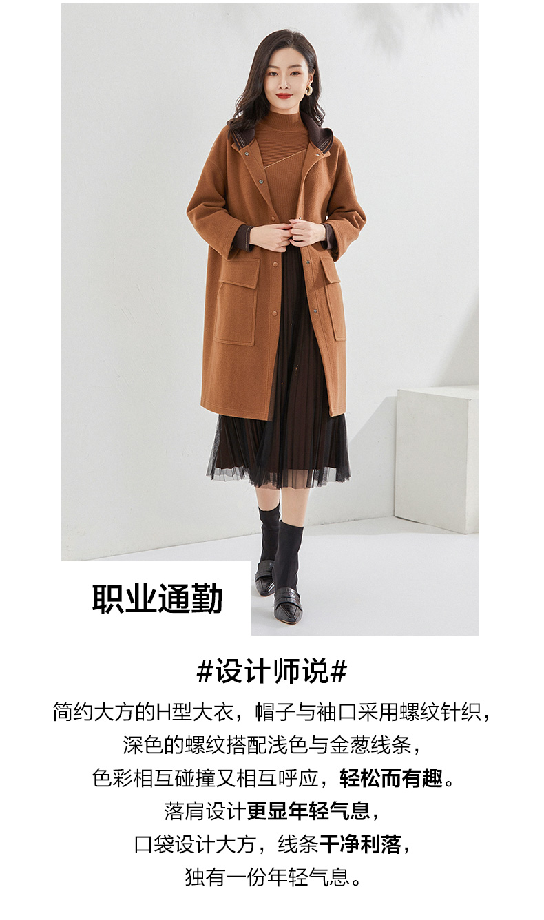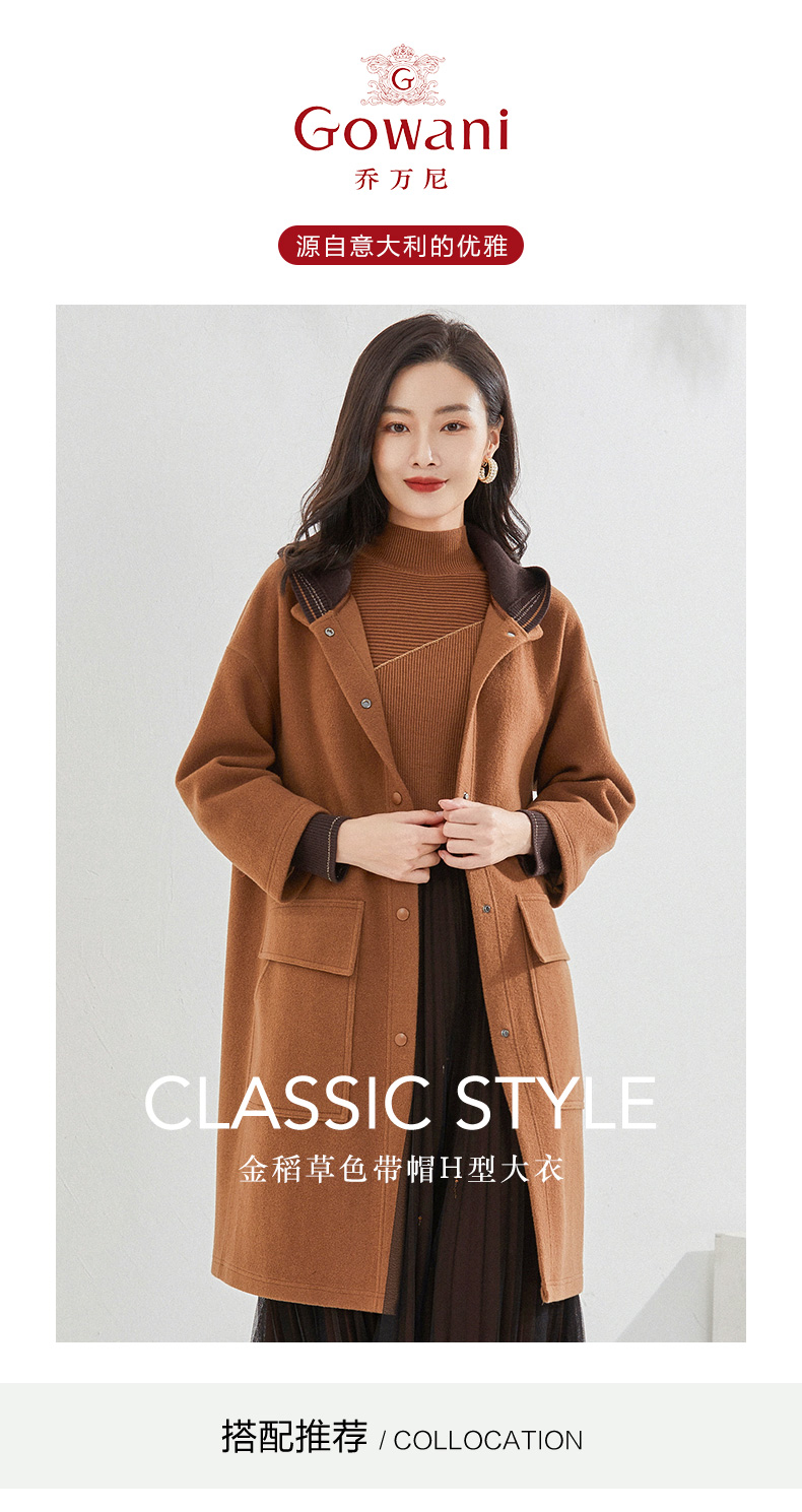 乔万尼冬新款绵羊毛大衣直筒羊毛呢减龄连帽轻设计EI4A577