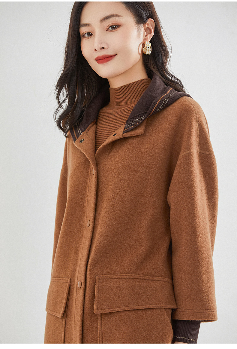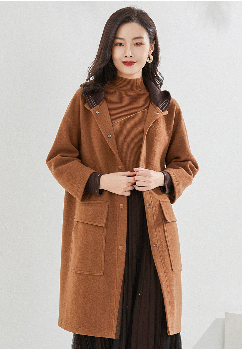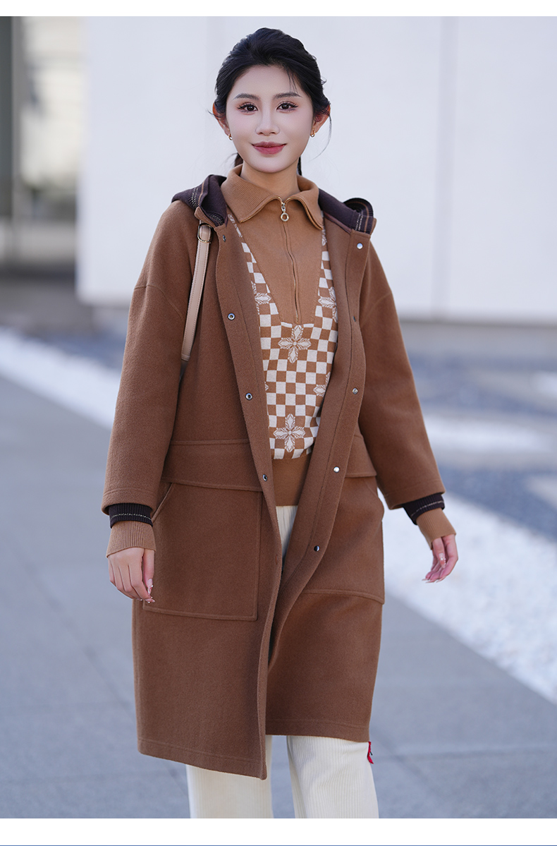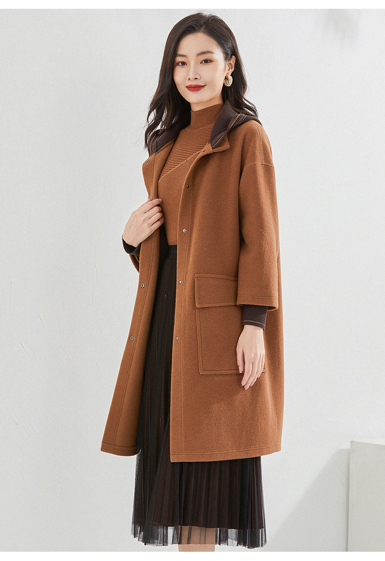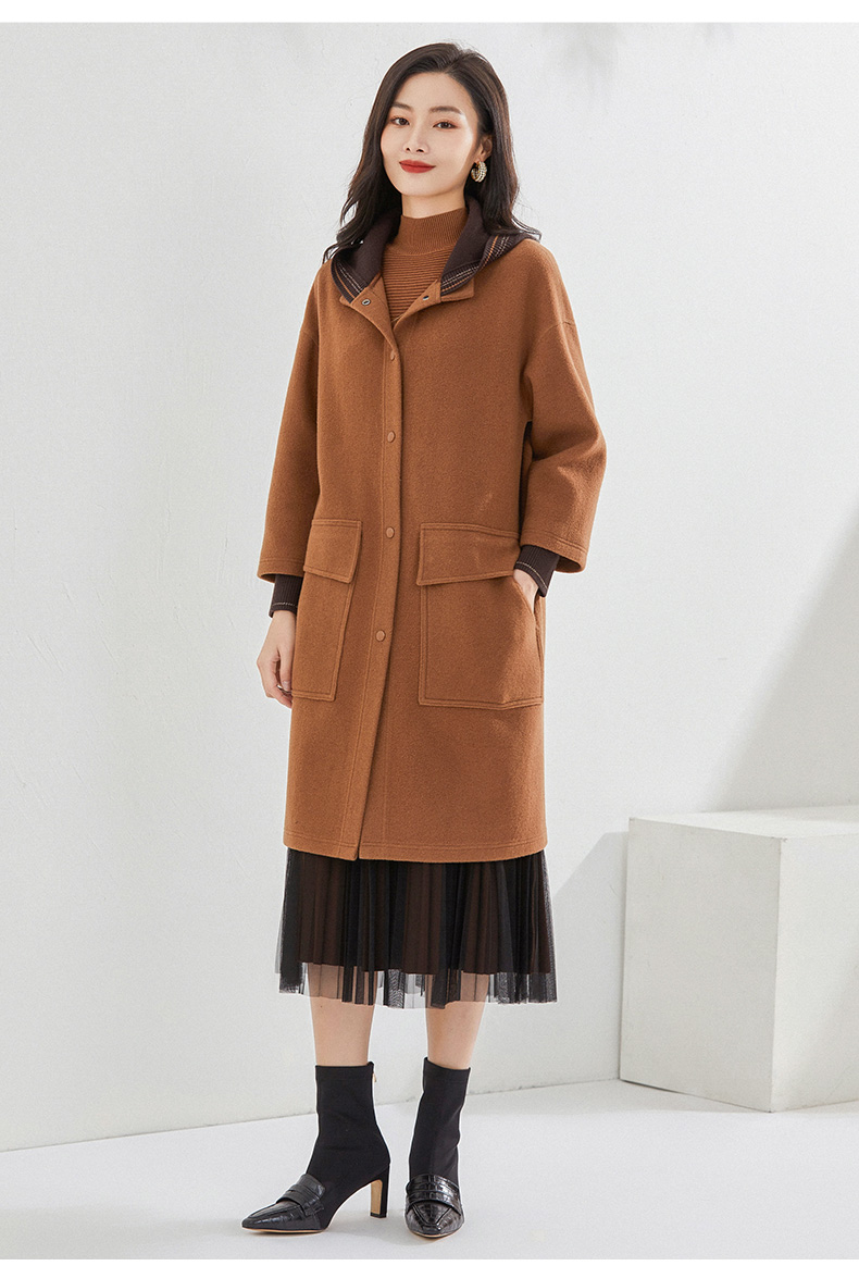 乔万尼冬新款绵羊毛大衣直筒羊毛呢减龄连帽轻设计EI4A577