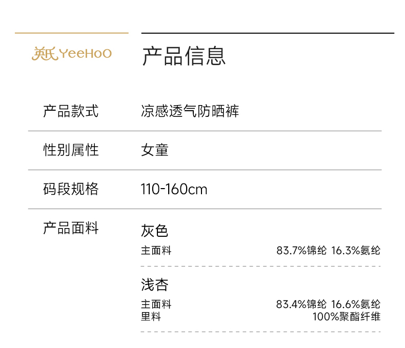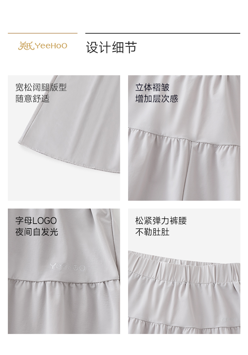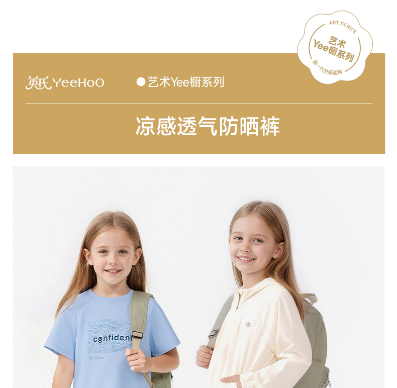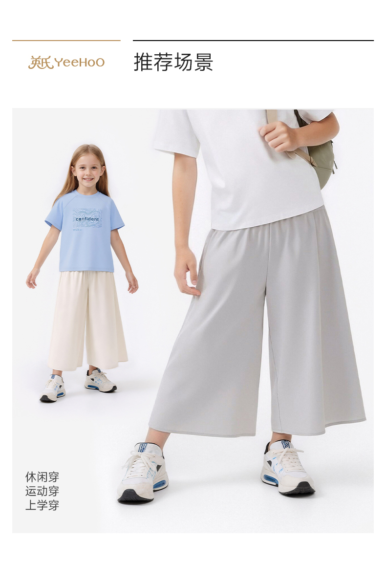 英氏裤子春夏款凉感防晒女童长裤休闲百搭2026新款阔腿裤简约舒适