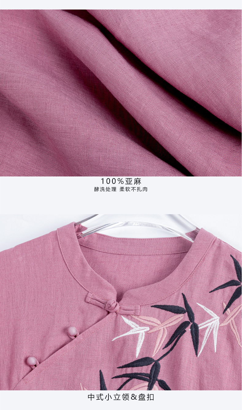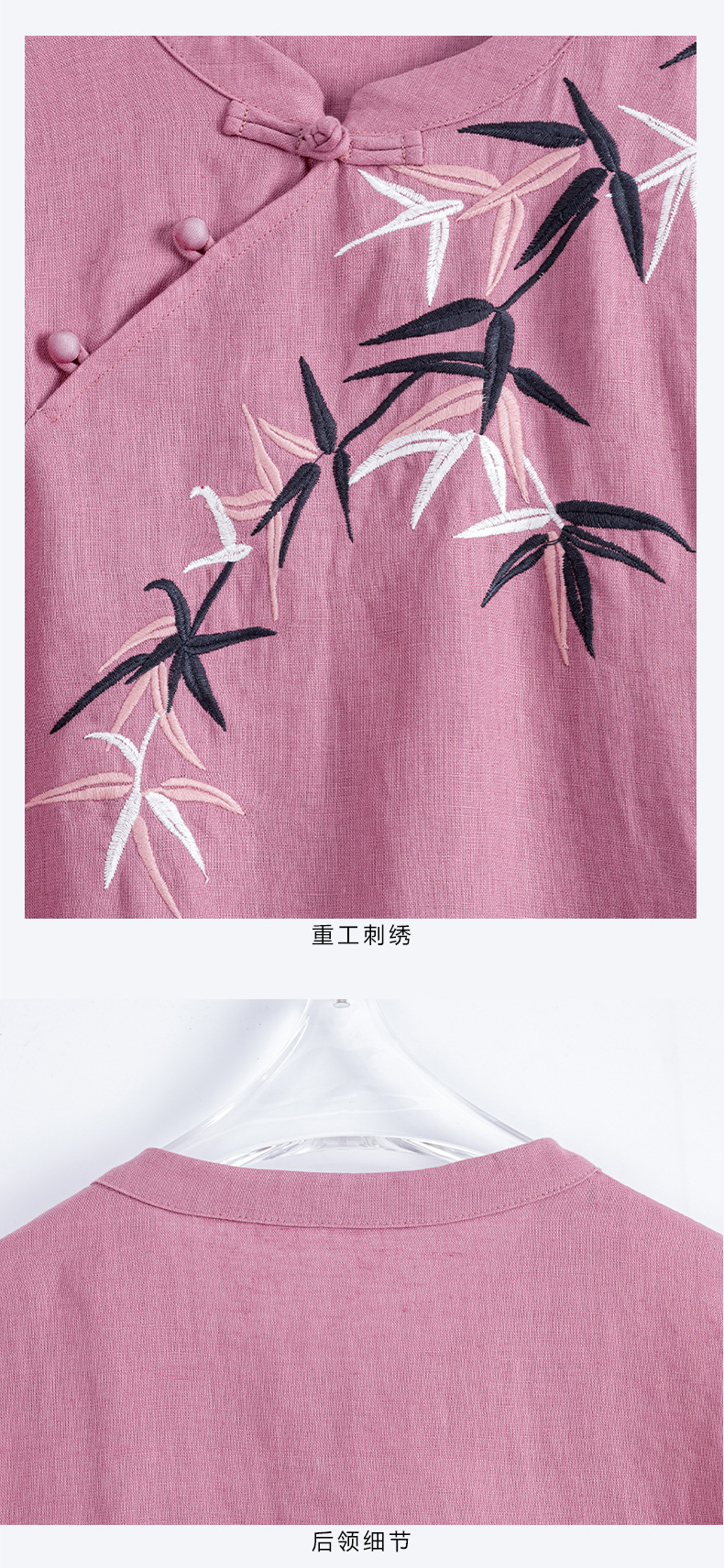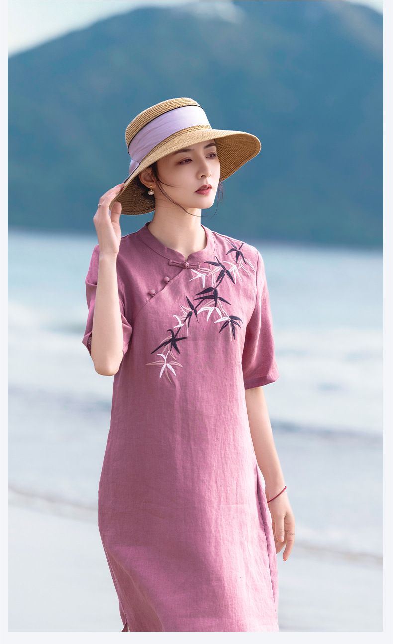 丁摩 亚麻国风立领盘扣改良式旗袍裙中袖连衣裙S511