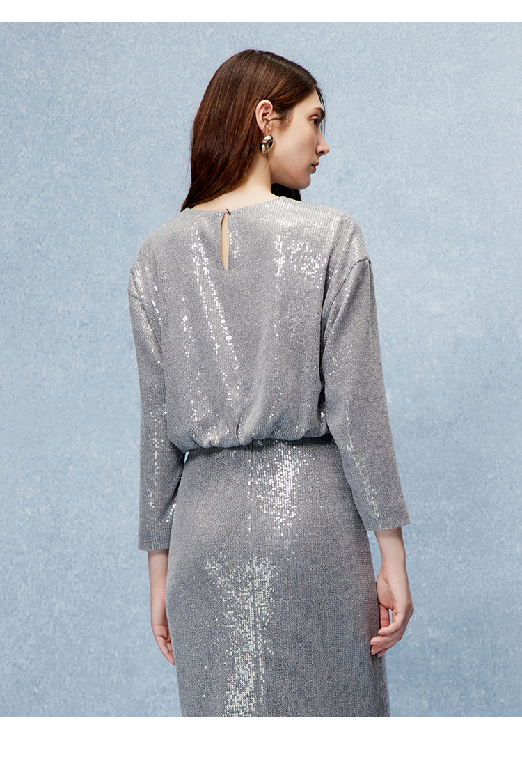 EITIE爱特爱夏季新款复古V领波点收腰抽褶五分袖显瘦连衣裙B2207914