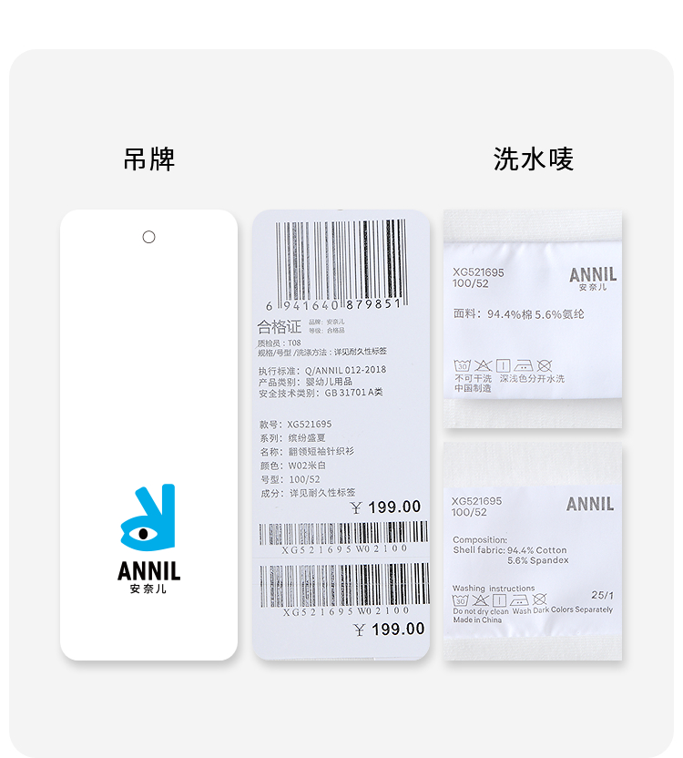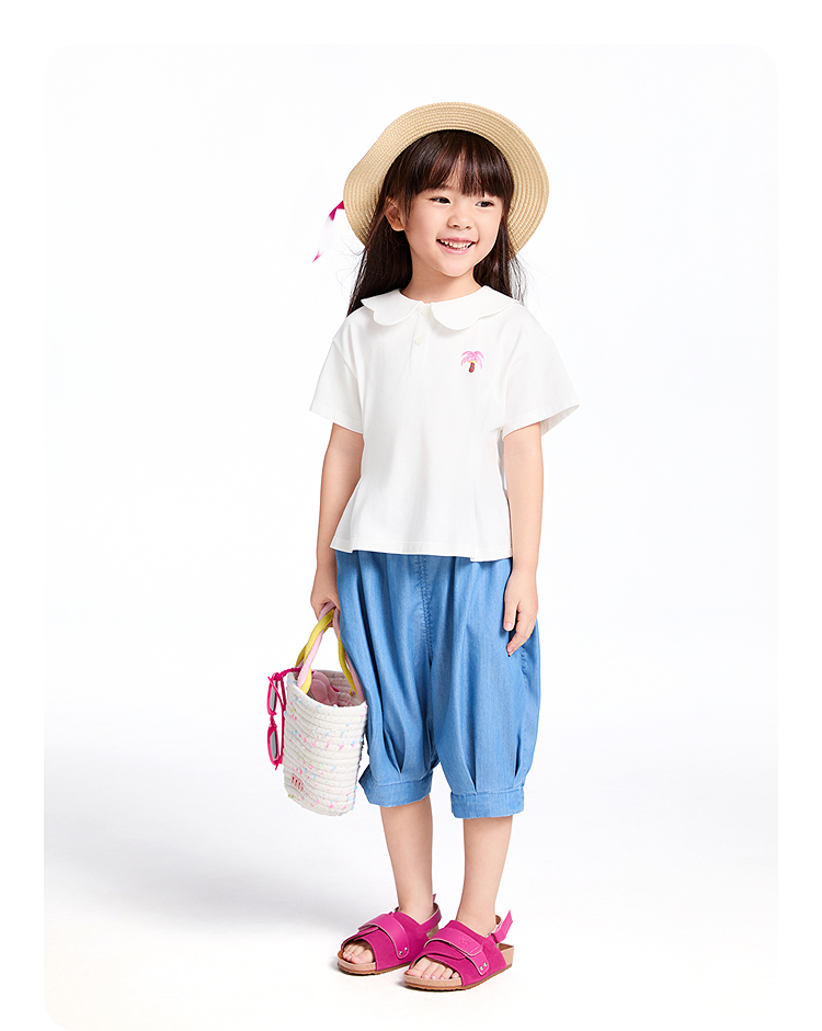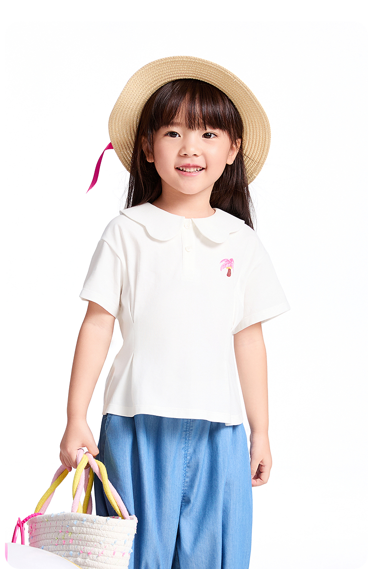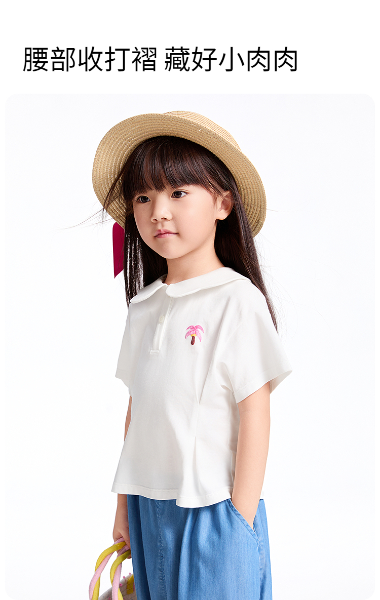 【实体店同款】女童翻领短袖针织衫夏季新款安奈儿童装XG521695