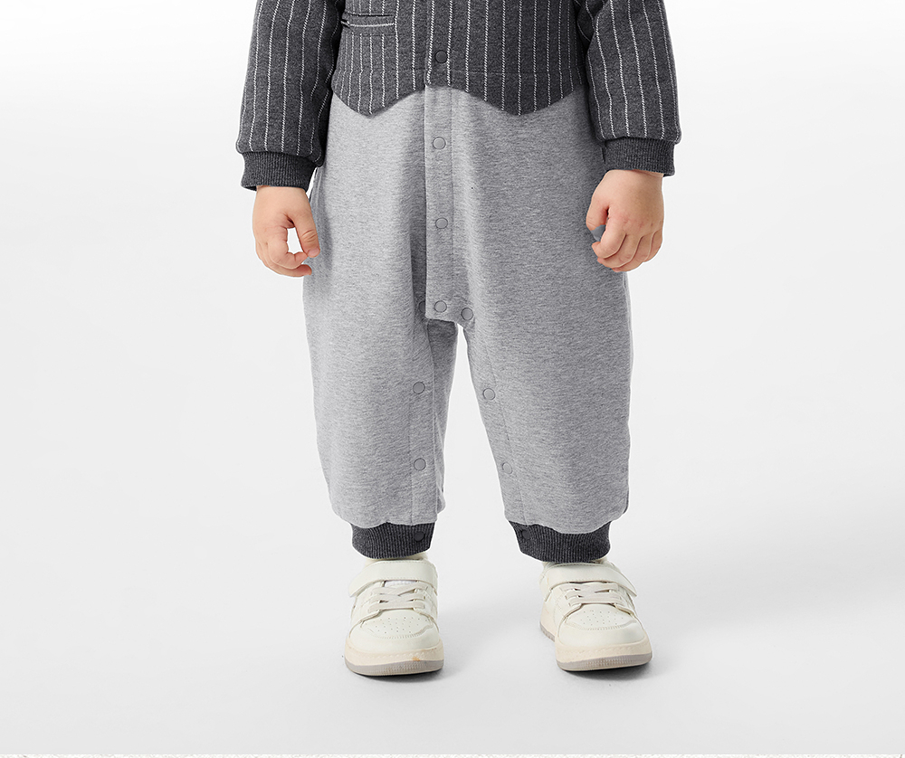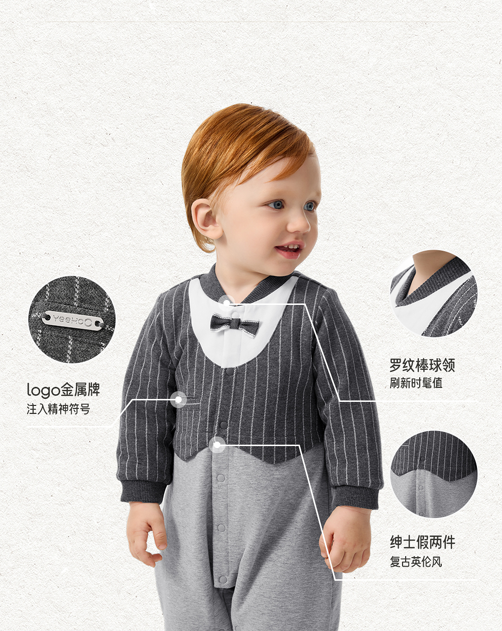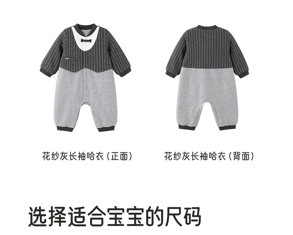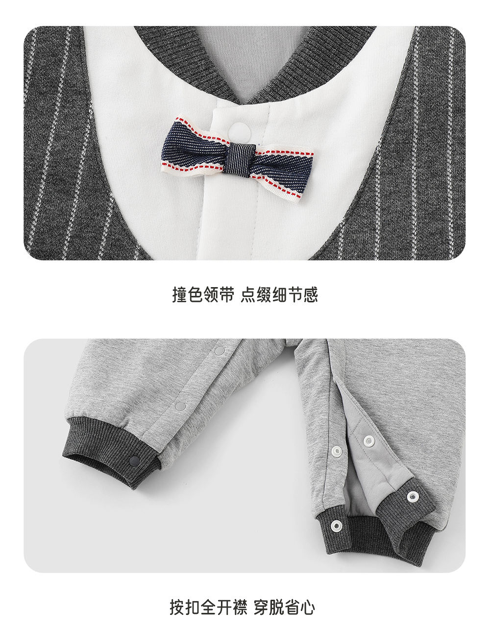 英氏婴儿衣服冬季假两件男童连身衣男宝礼服保暖衣服新款冬季男宝周岁哈衣