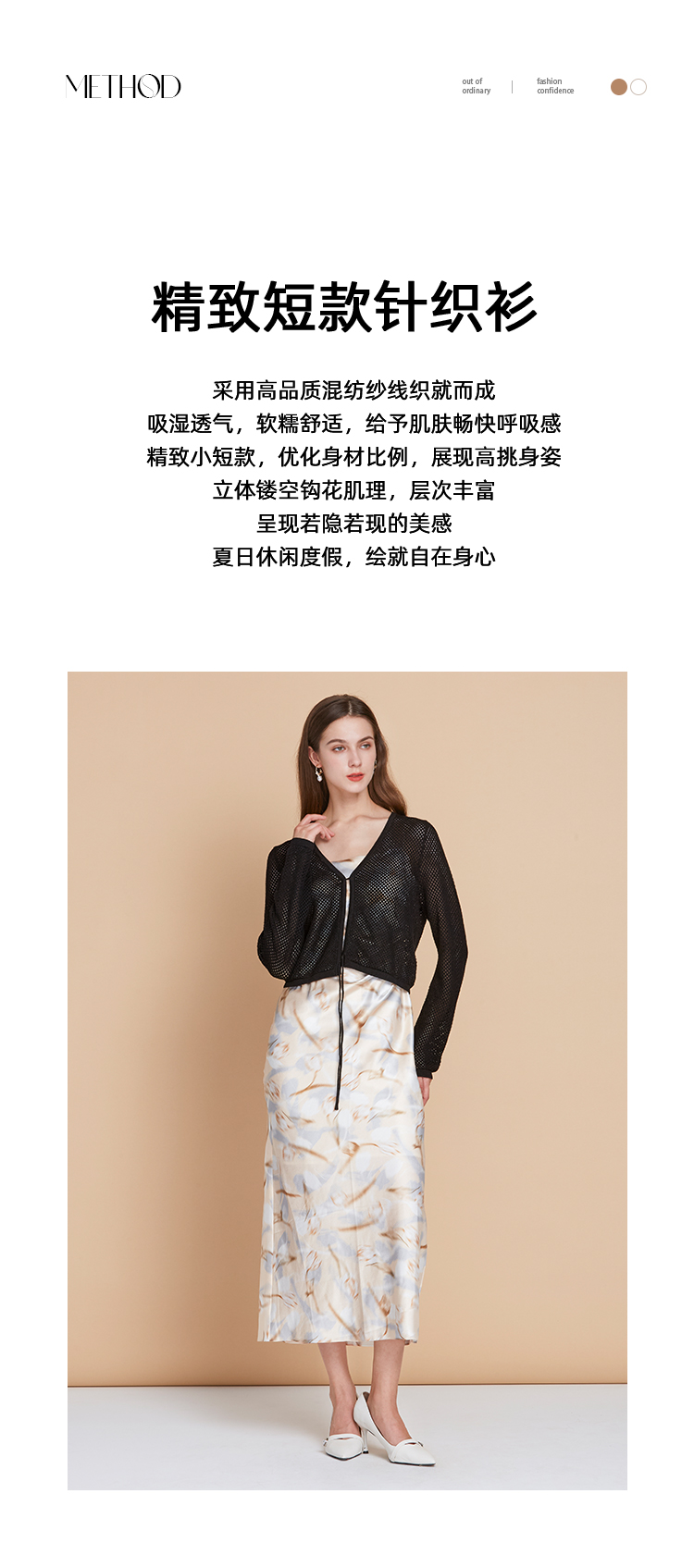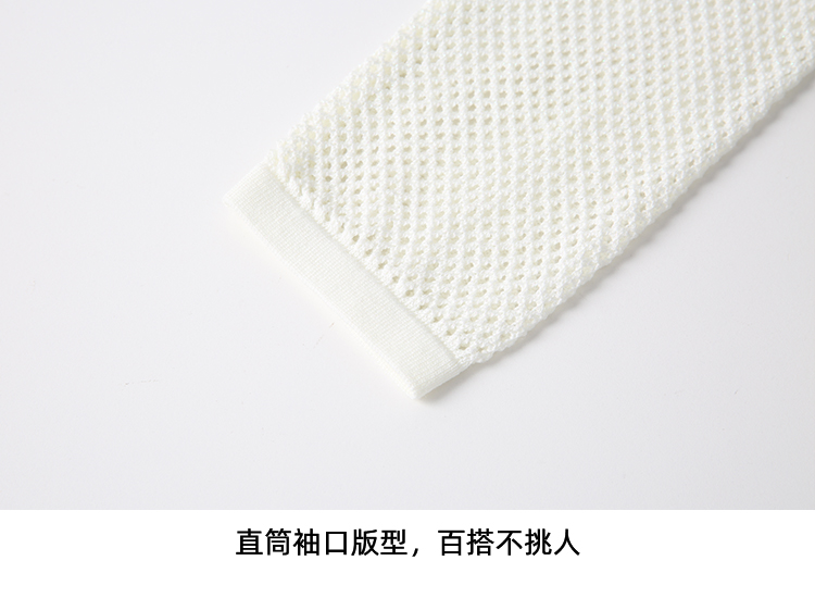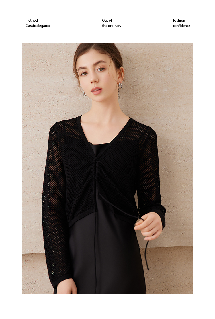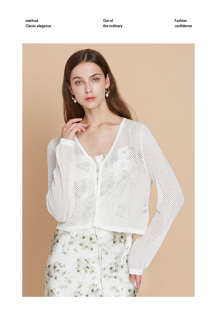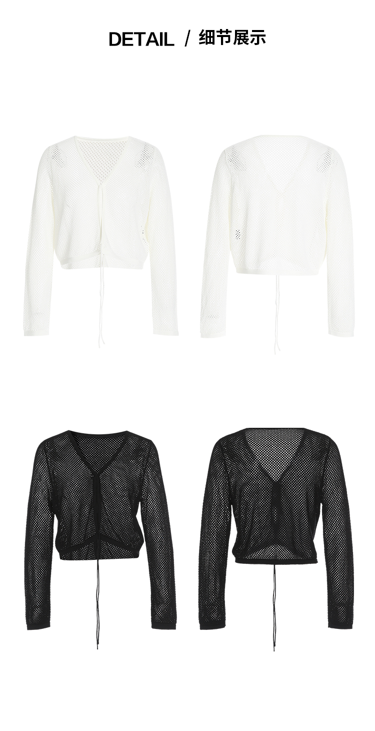EITIE爱特爱网眼V领显瘦短款长袖针织罩衫纯色百搭2025夏季新款B2501608
