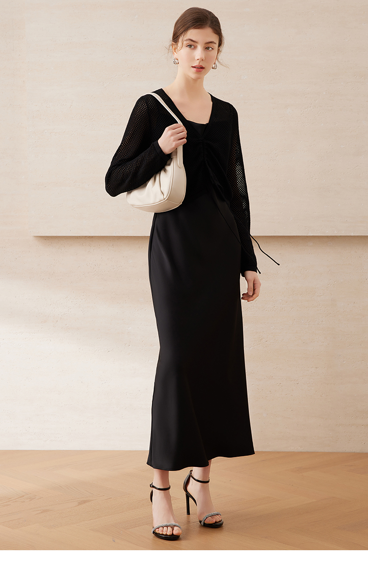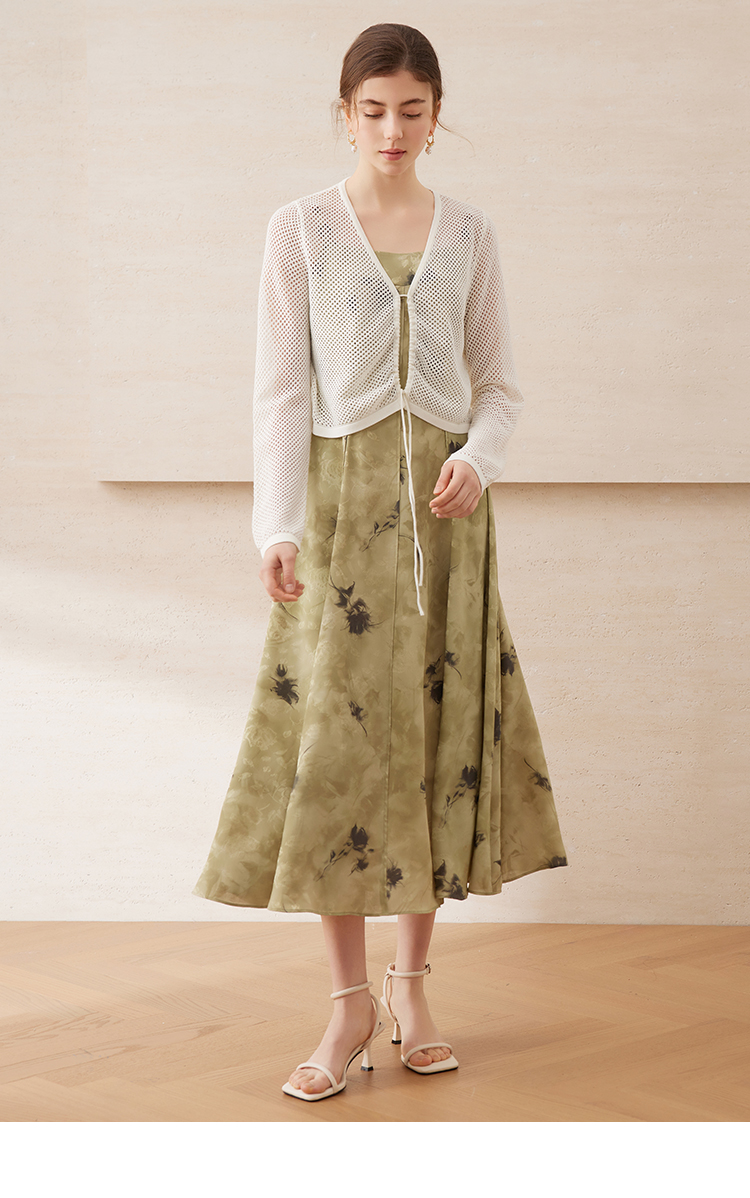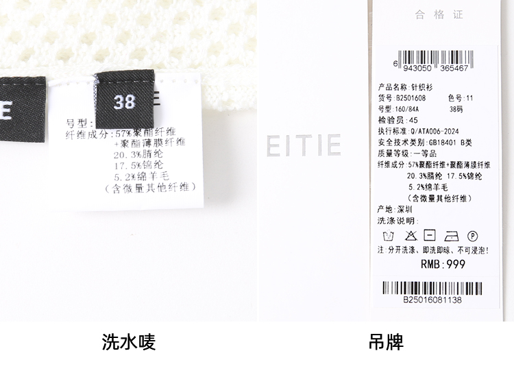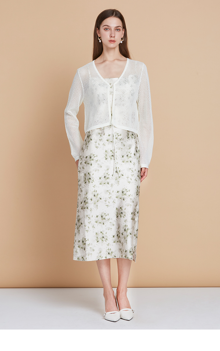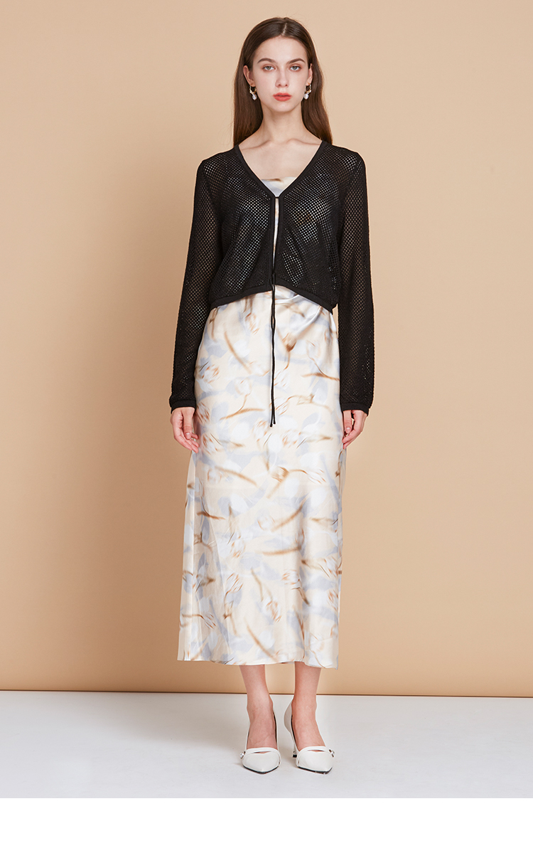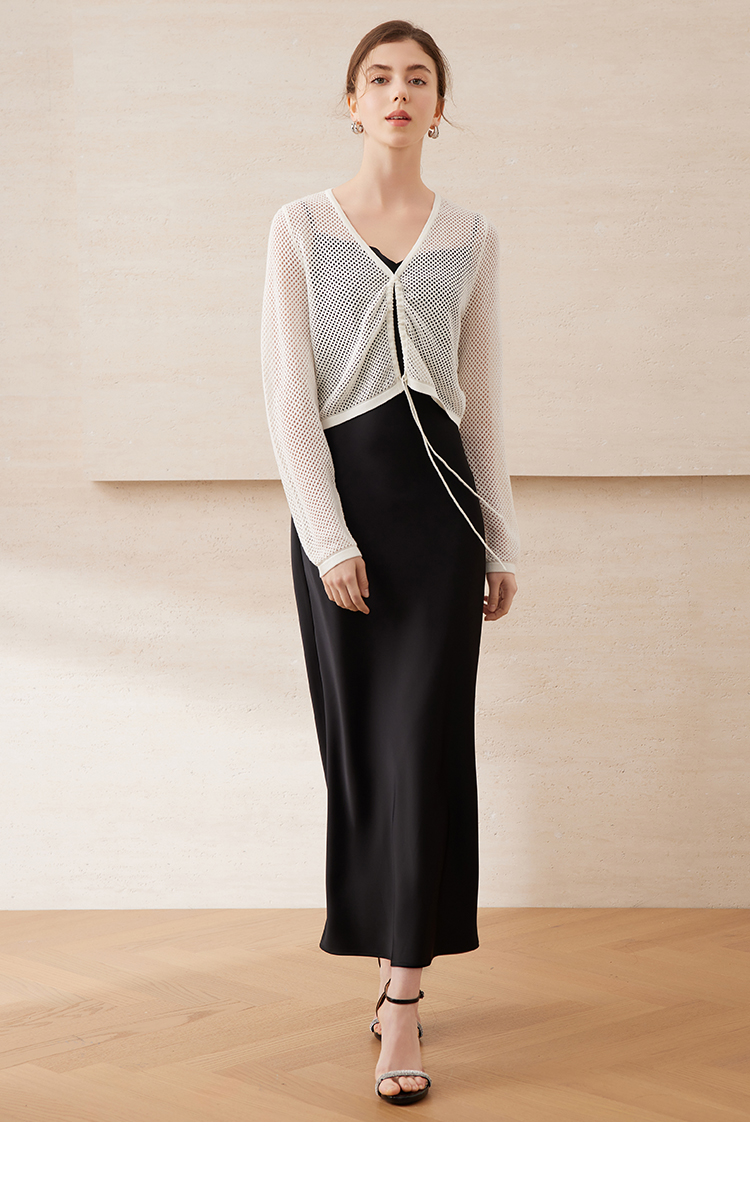 EITIE爱特爱网眼V领显瘦短款长袖针织罩衫纯色百搭2025夏季新款B2501608