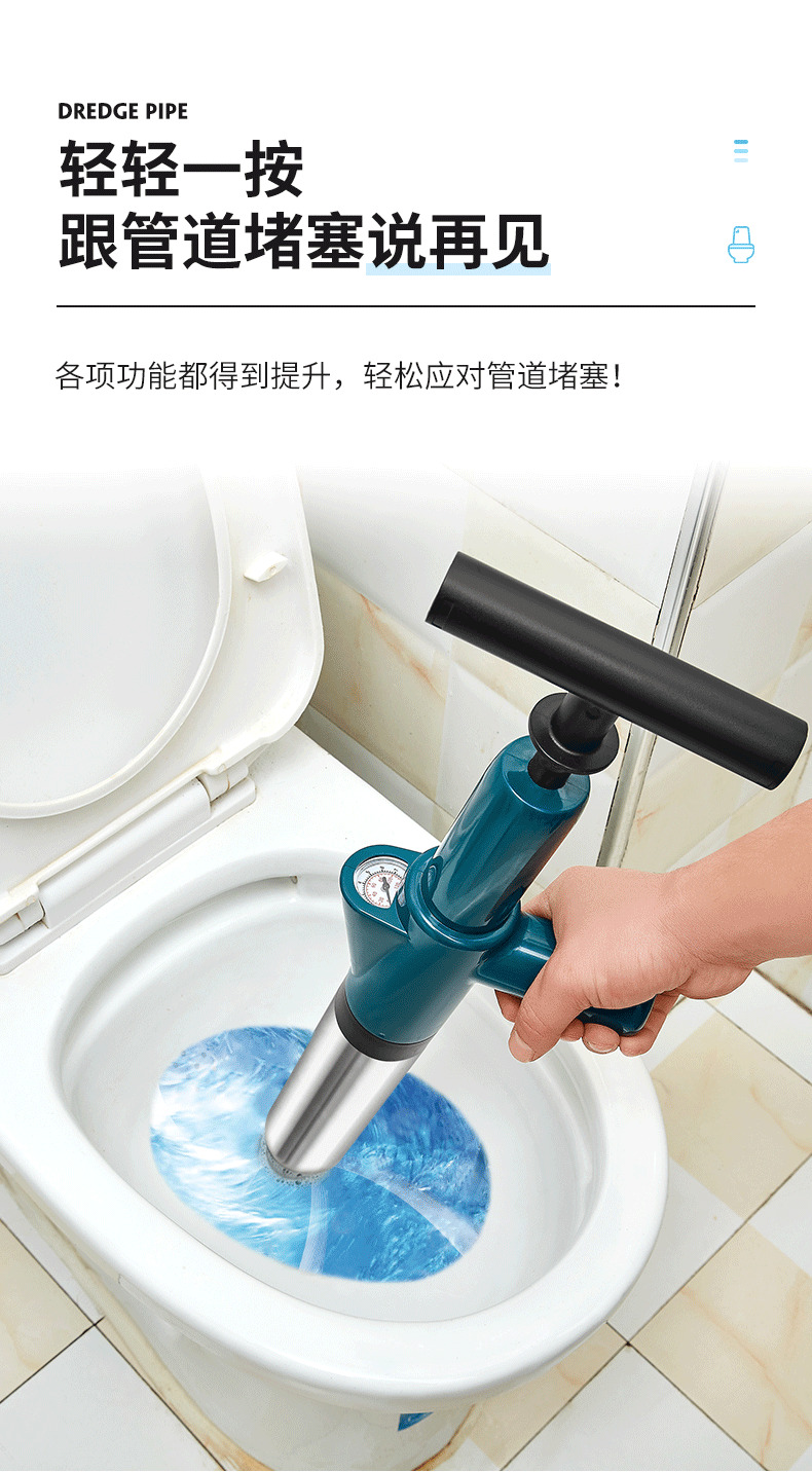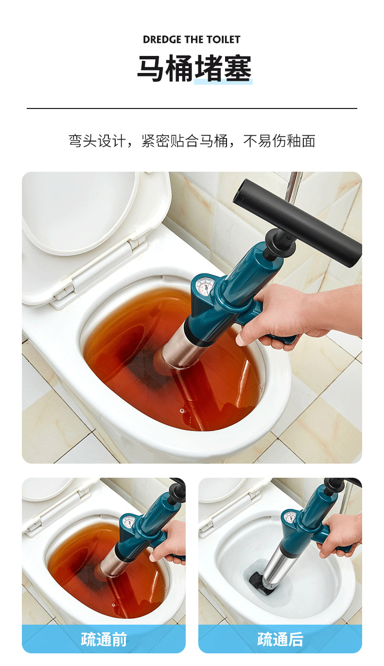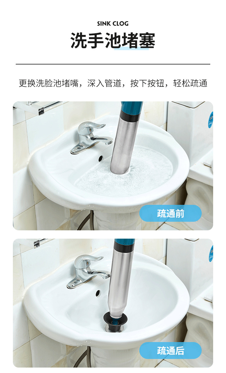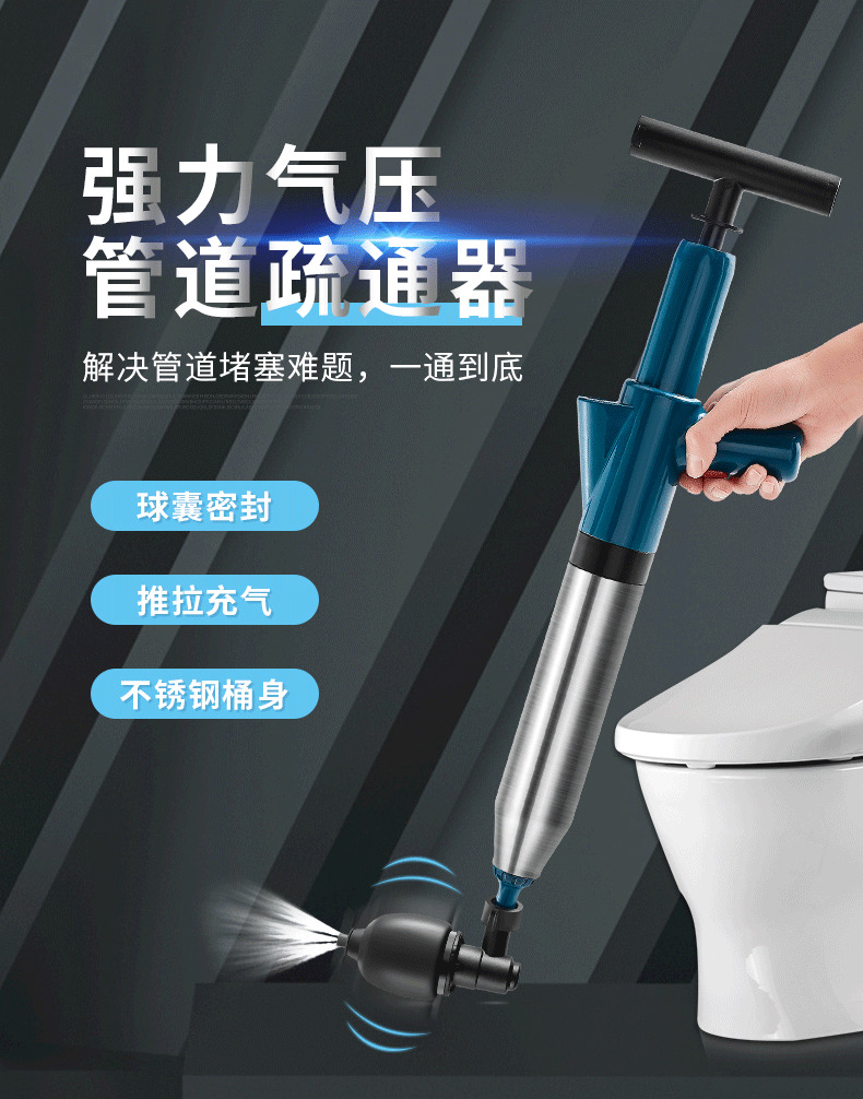 星罗不锈钢款马桶疏通器一炮通厕所堵塞疏通器下水道疏通工具-A仓