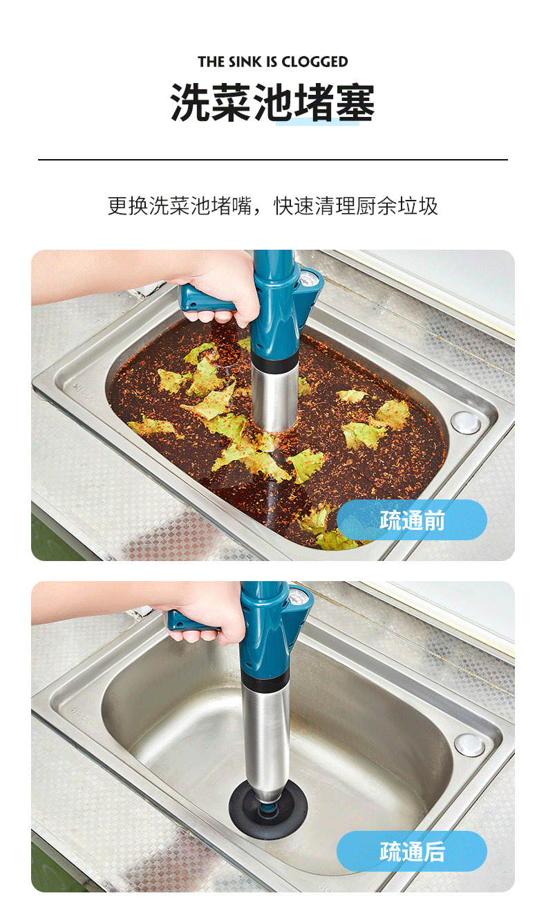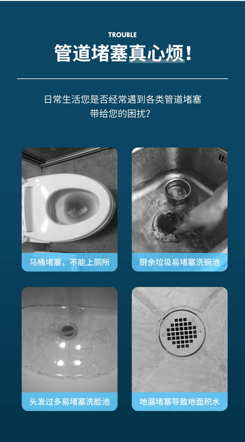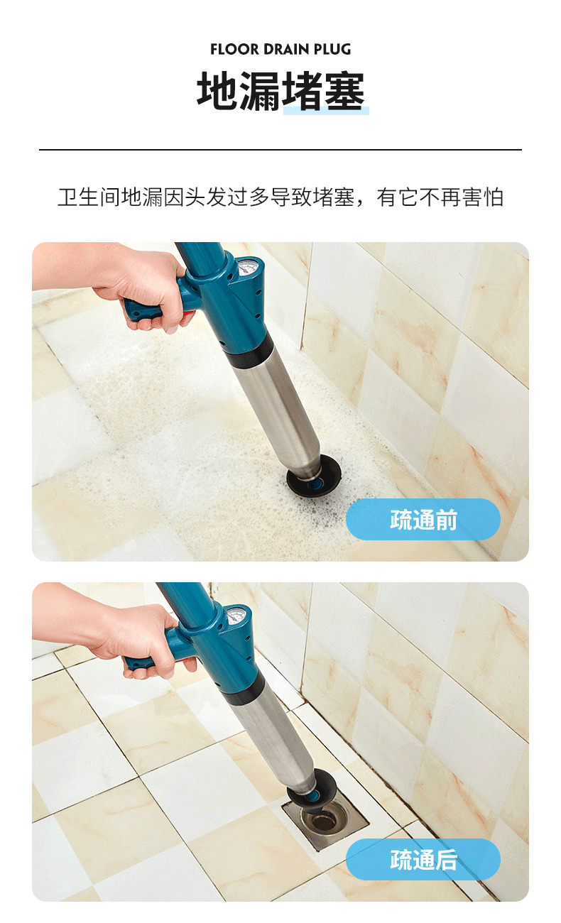 星罗不锈钢款马桶疏通器一炮通厕所堵塞疏通器下水道疏通工具-A仓