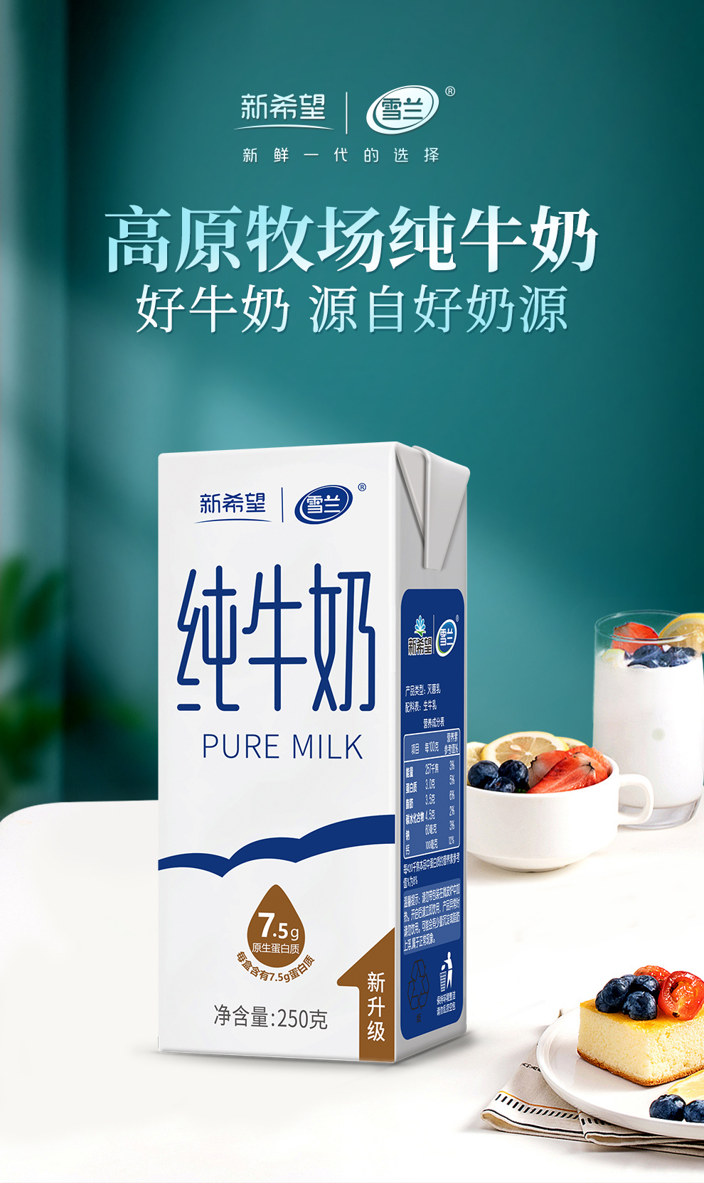 【AL精选】新希望(雪兰)云南高原奶全脂牛奶250g*16盒学生早餐纯牛奶整箱