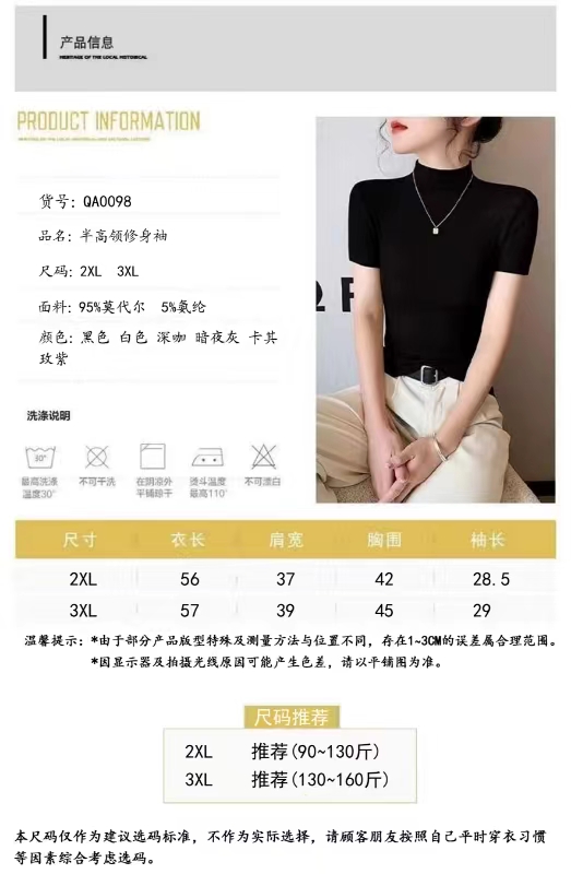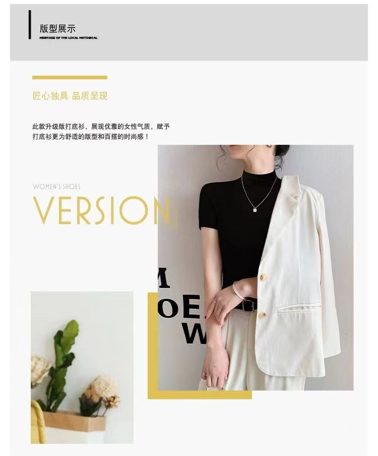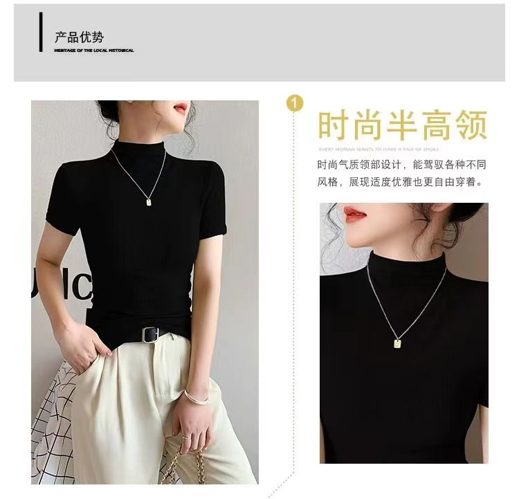 莫代尔半高领打底衫亲肤柔软透气弹力大,不缩水不变形不掉色。