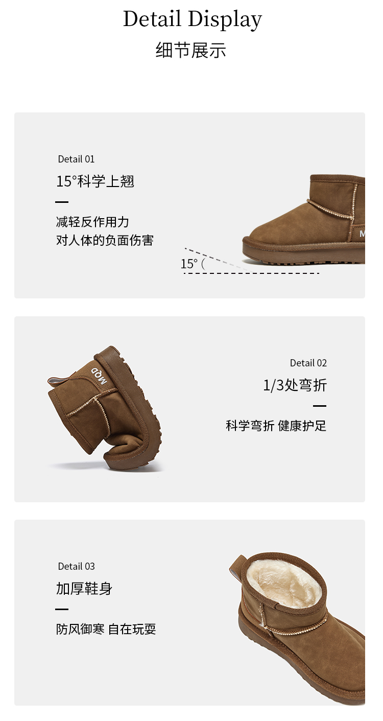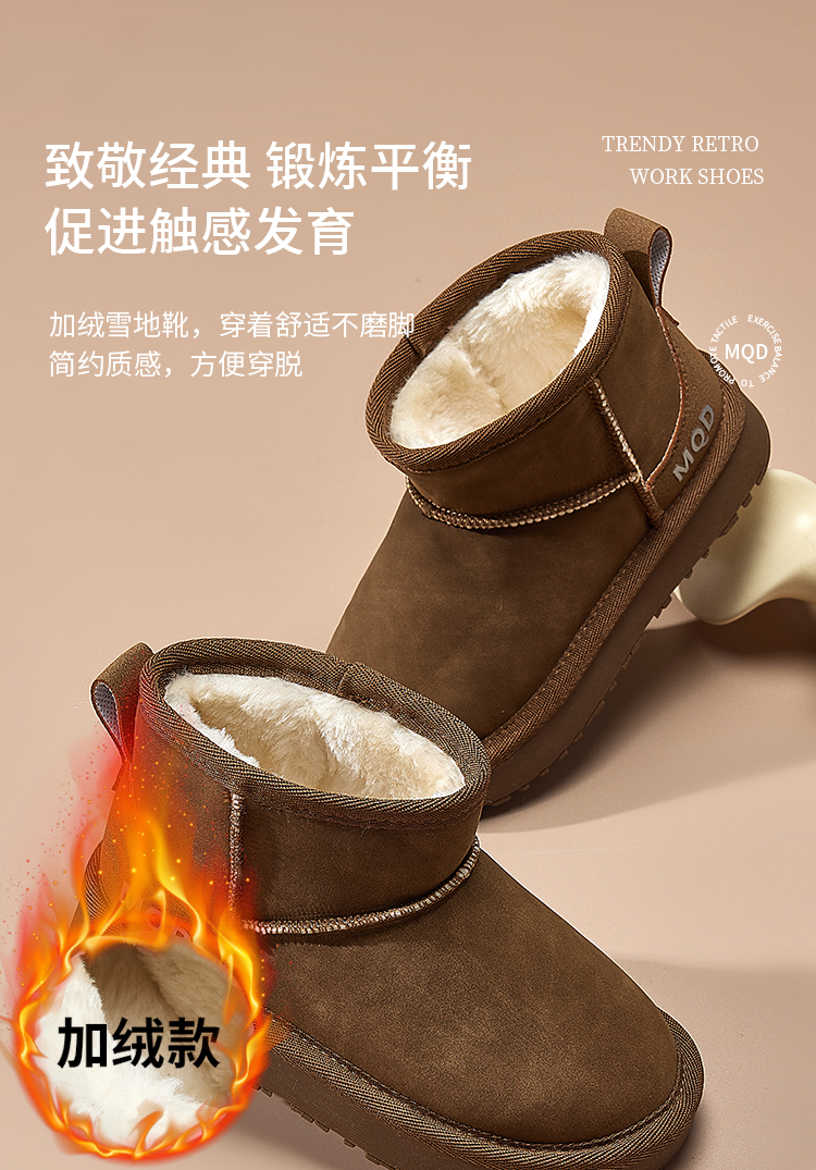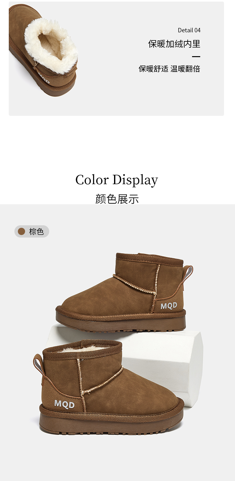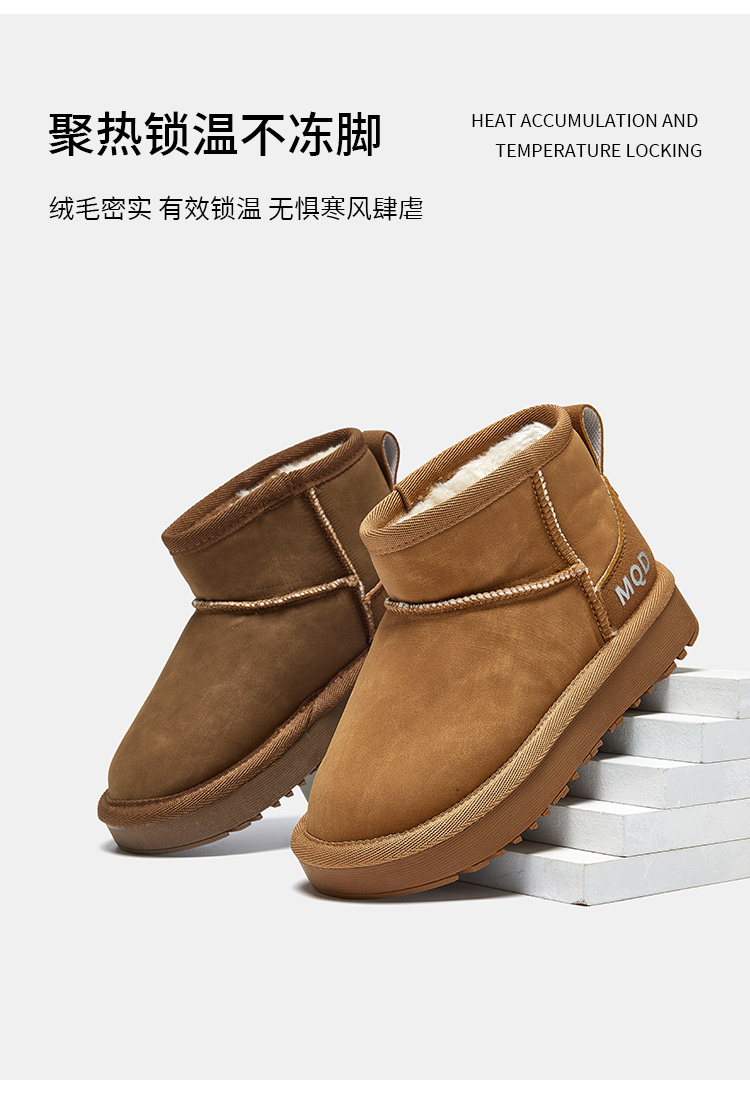 【ZY马骑顿】雪地靴短靴冬季新款加绒加厚皮面厚底防水防滑棉靴小短靴