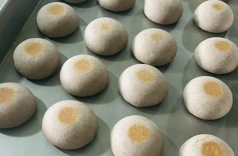 蓝莓饼松软,采用了天然发酵的工艺,菌种要提前一天制作,纯手工工艺,每一个饼都是不一样的,都是师傅纯手工来操作。