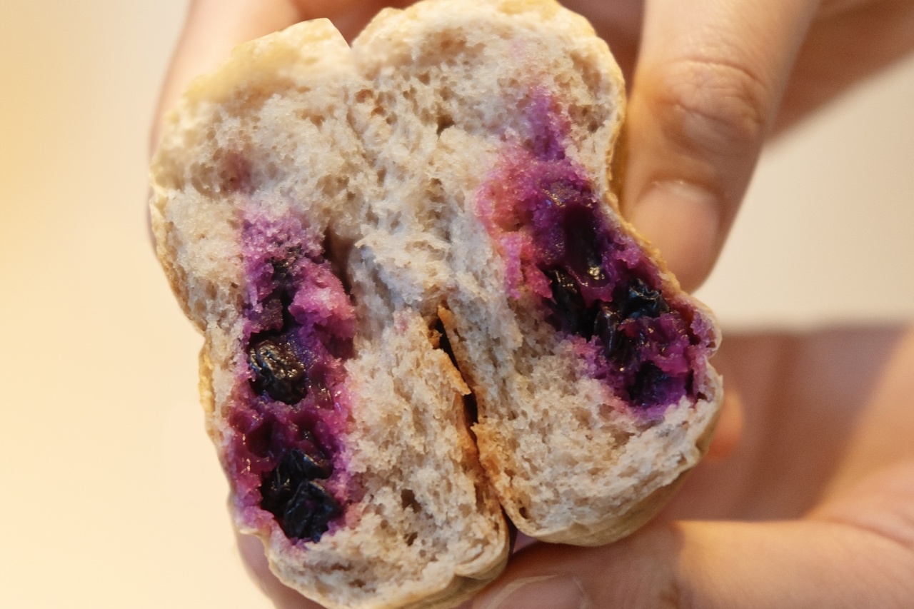 配料表:小麦粉、青稞粉(≧30%)、蓝莓(≧18%)、椰子油、白砂糖、紫薯粉、酵母、食用盐