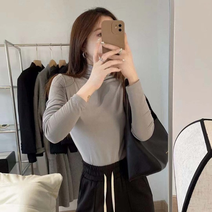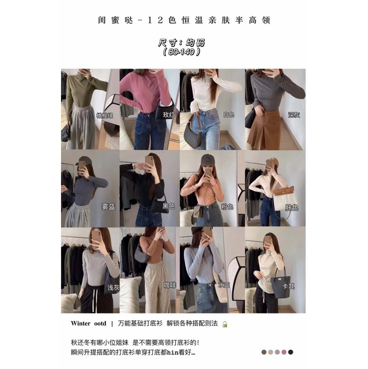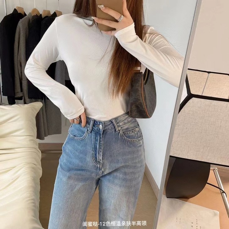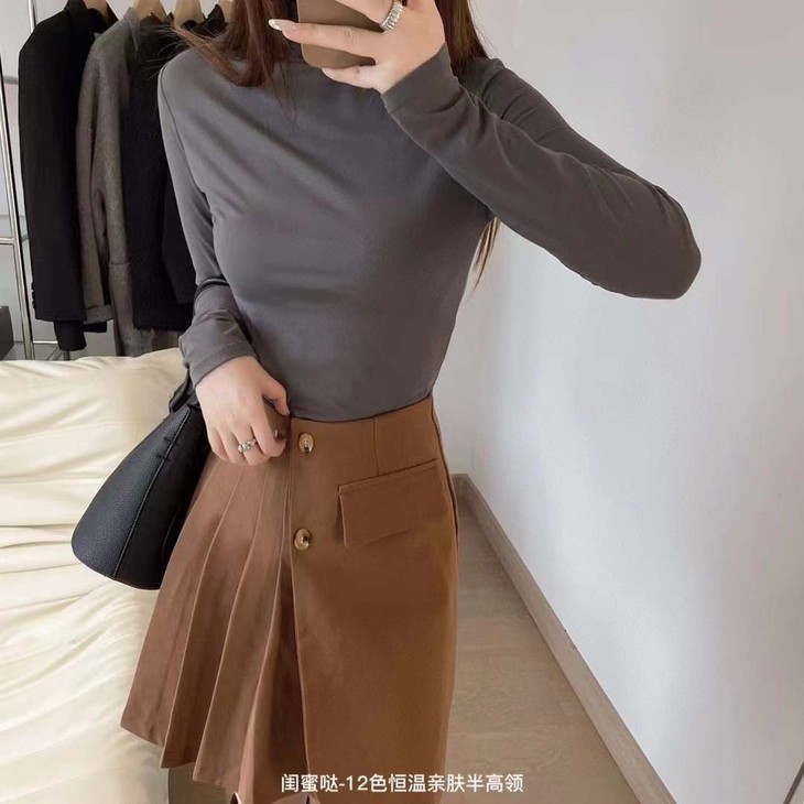 【秋冬必备百搭打底❗️基础色好搭配】闺蜜哒12色恒温亲肤半高领打底衫长袖t恤秋冬款内搭紧身上衣优雅。ja