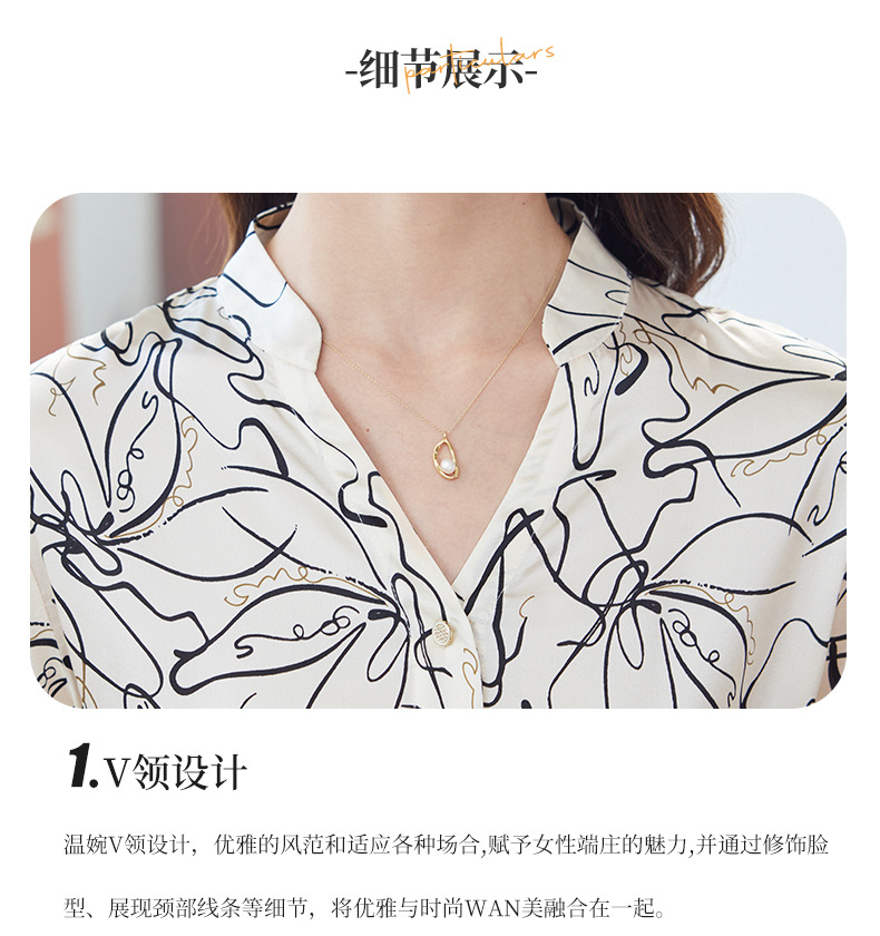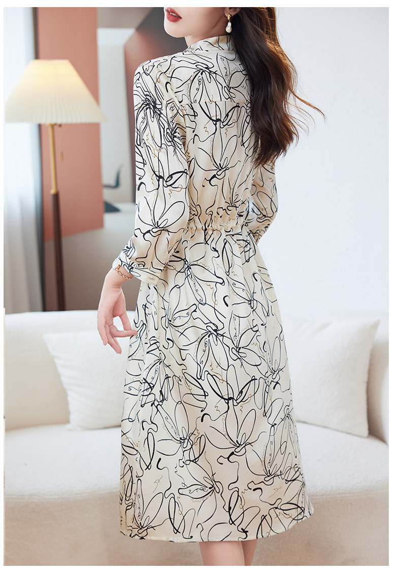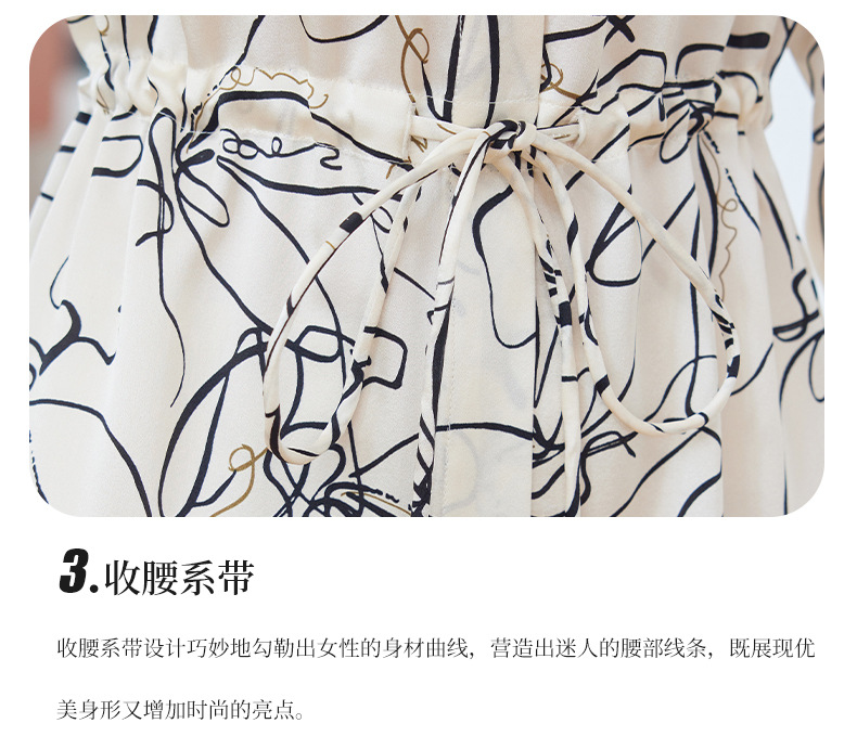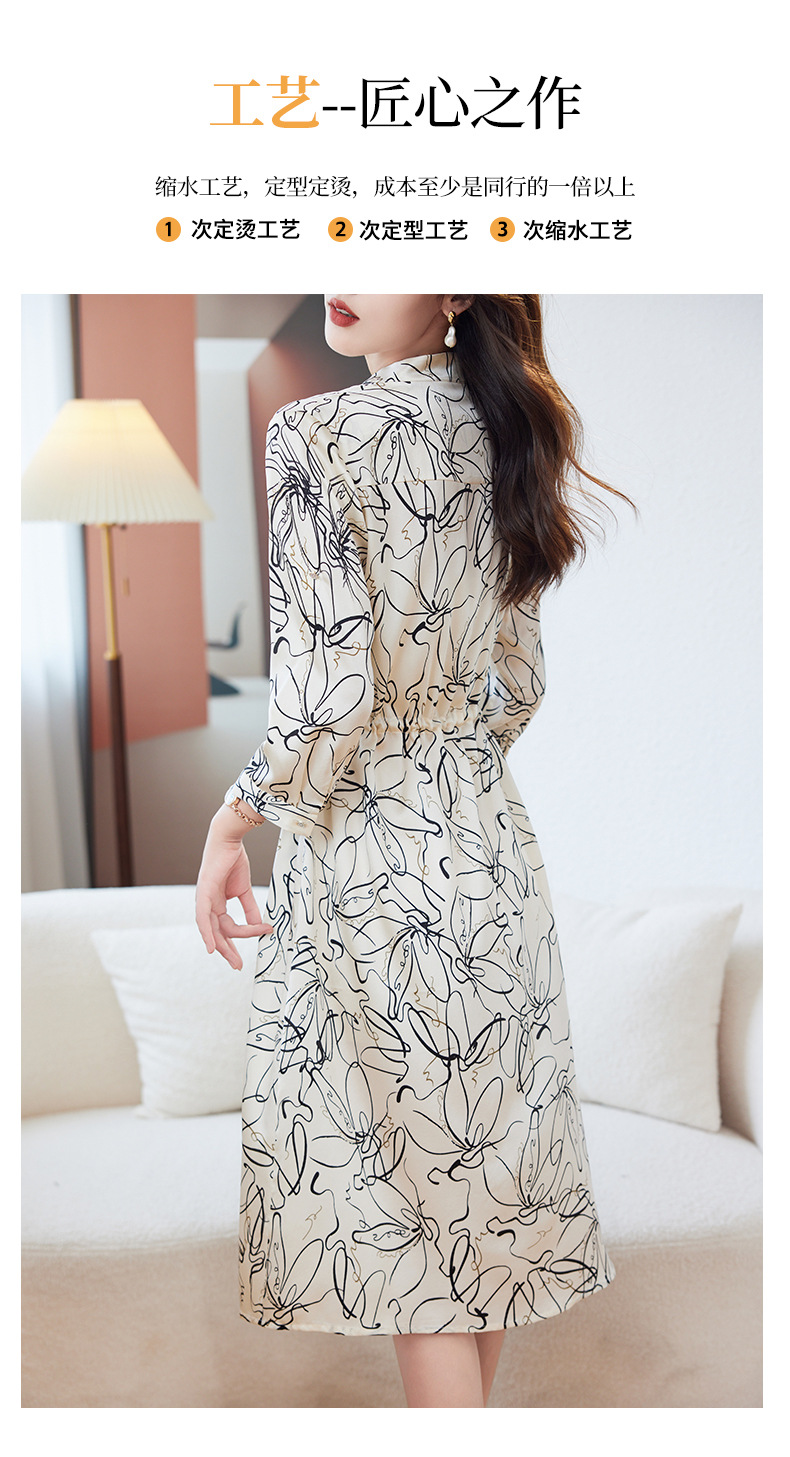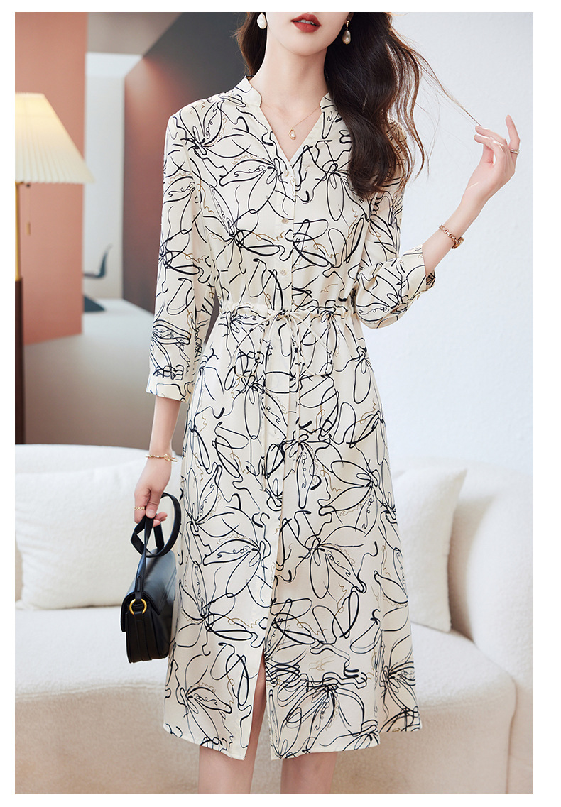 KQ-29679品牌V领淑女轻熟风真丝连衣裙气质名媛法式显瘦碎花收腰桑蚕丝裙