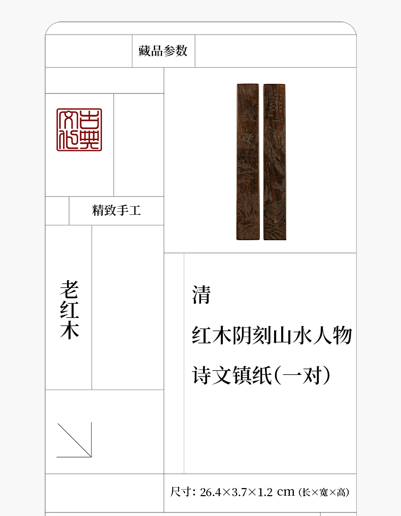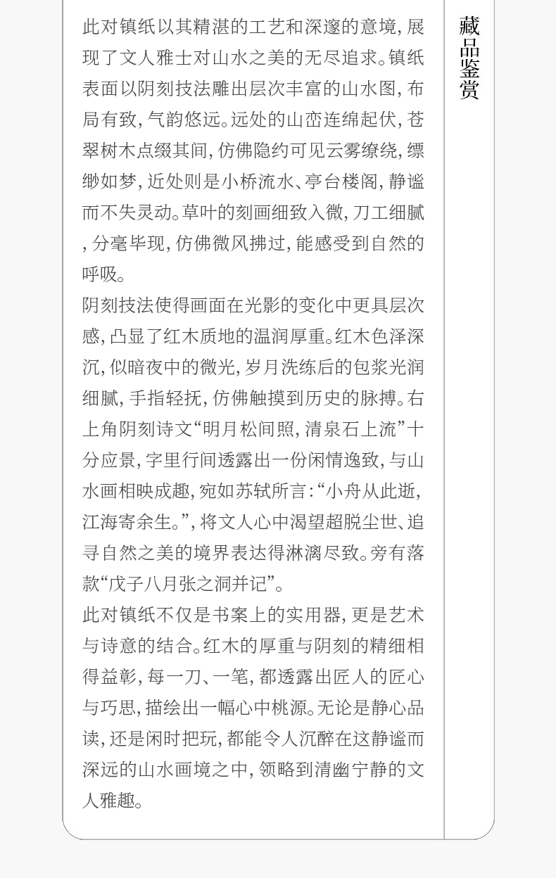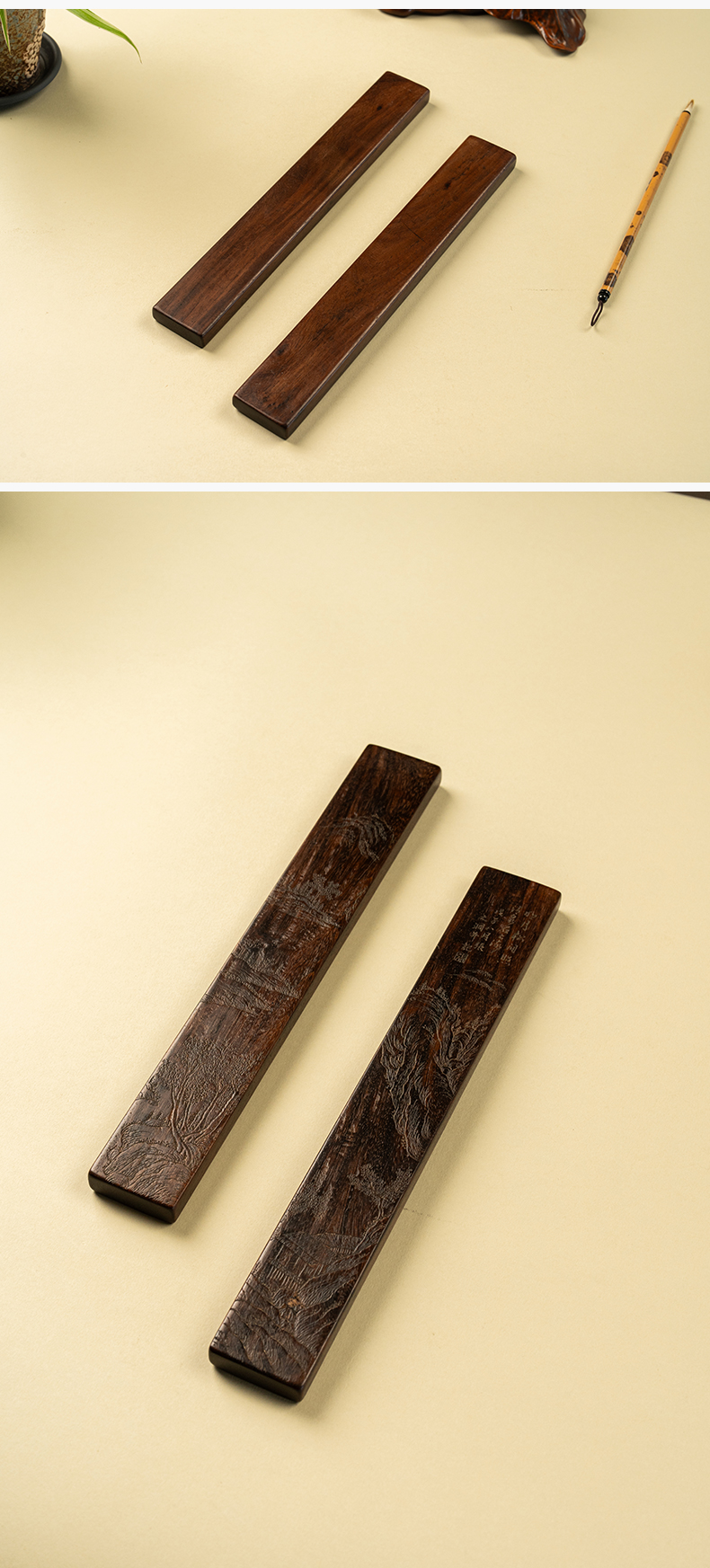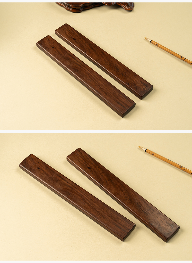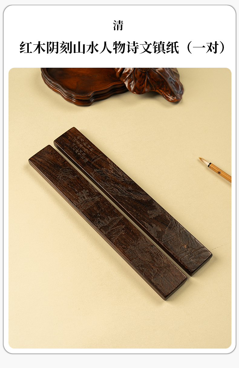 清 红木阴刻山水人物诗文镇纸(一对)