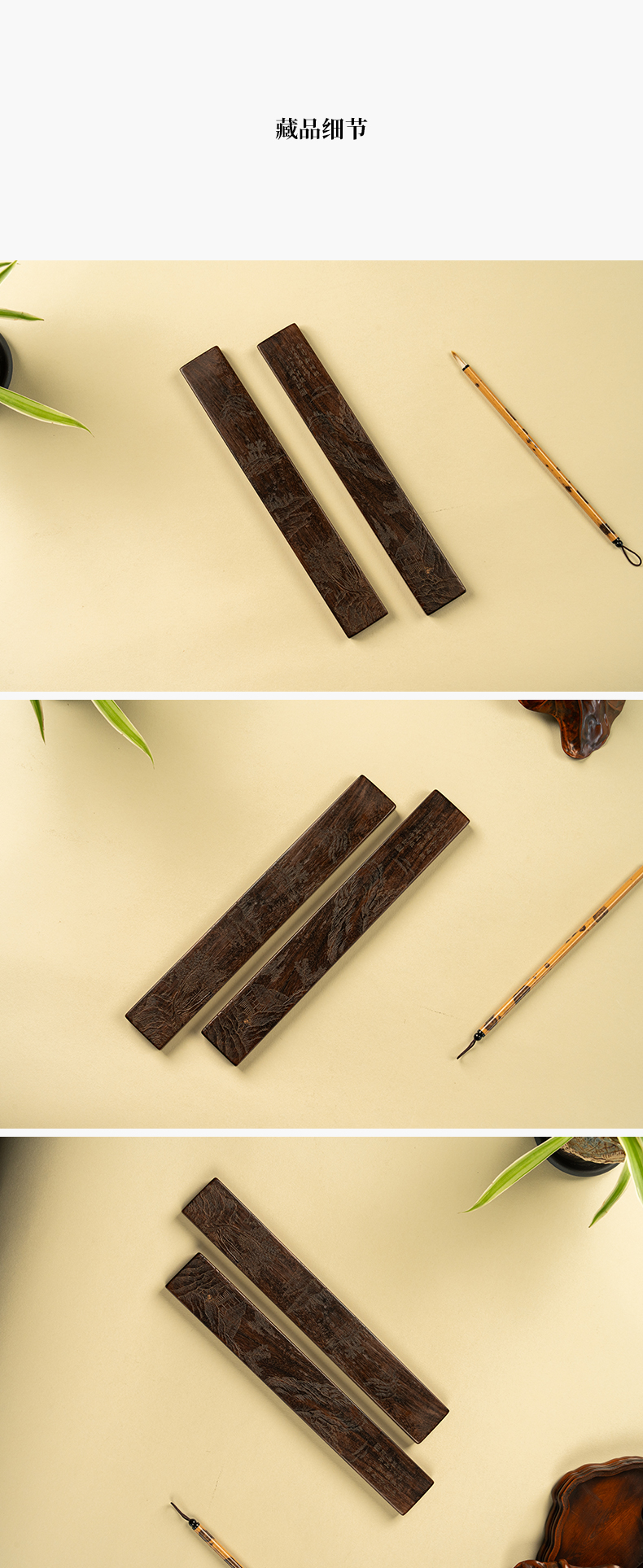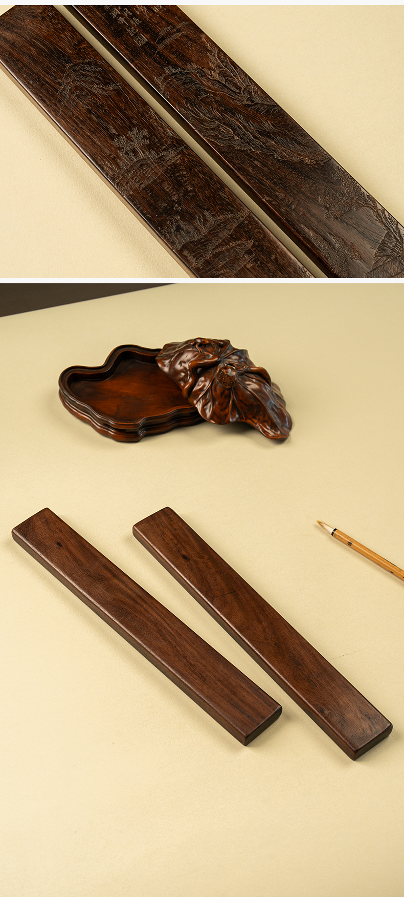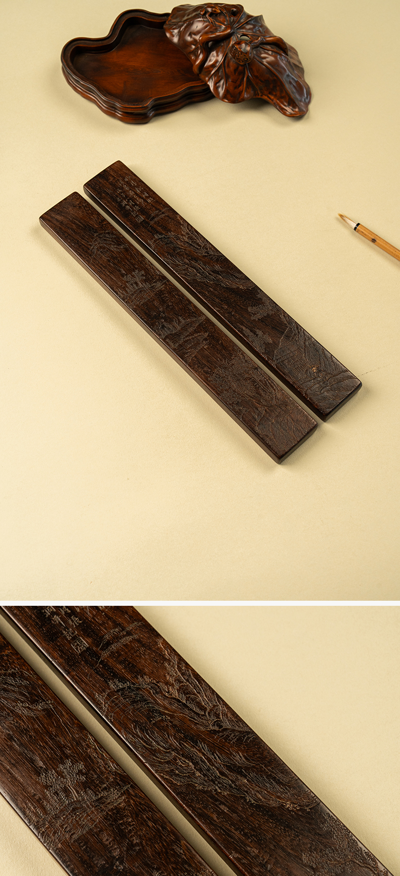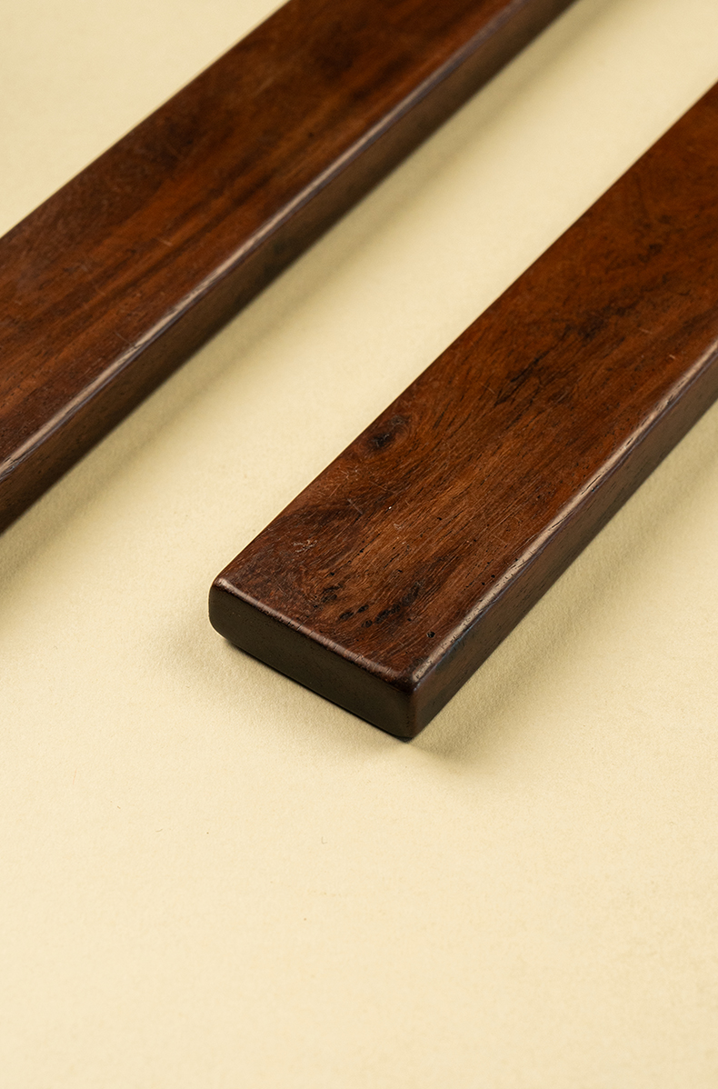 清 红木阴刻山水人物诗文镇纸(一对)