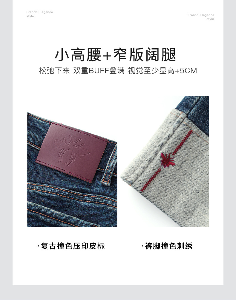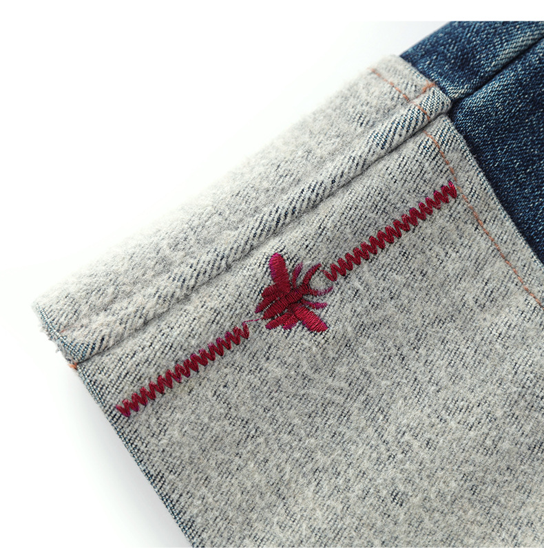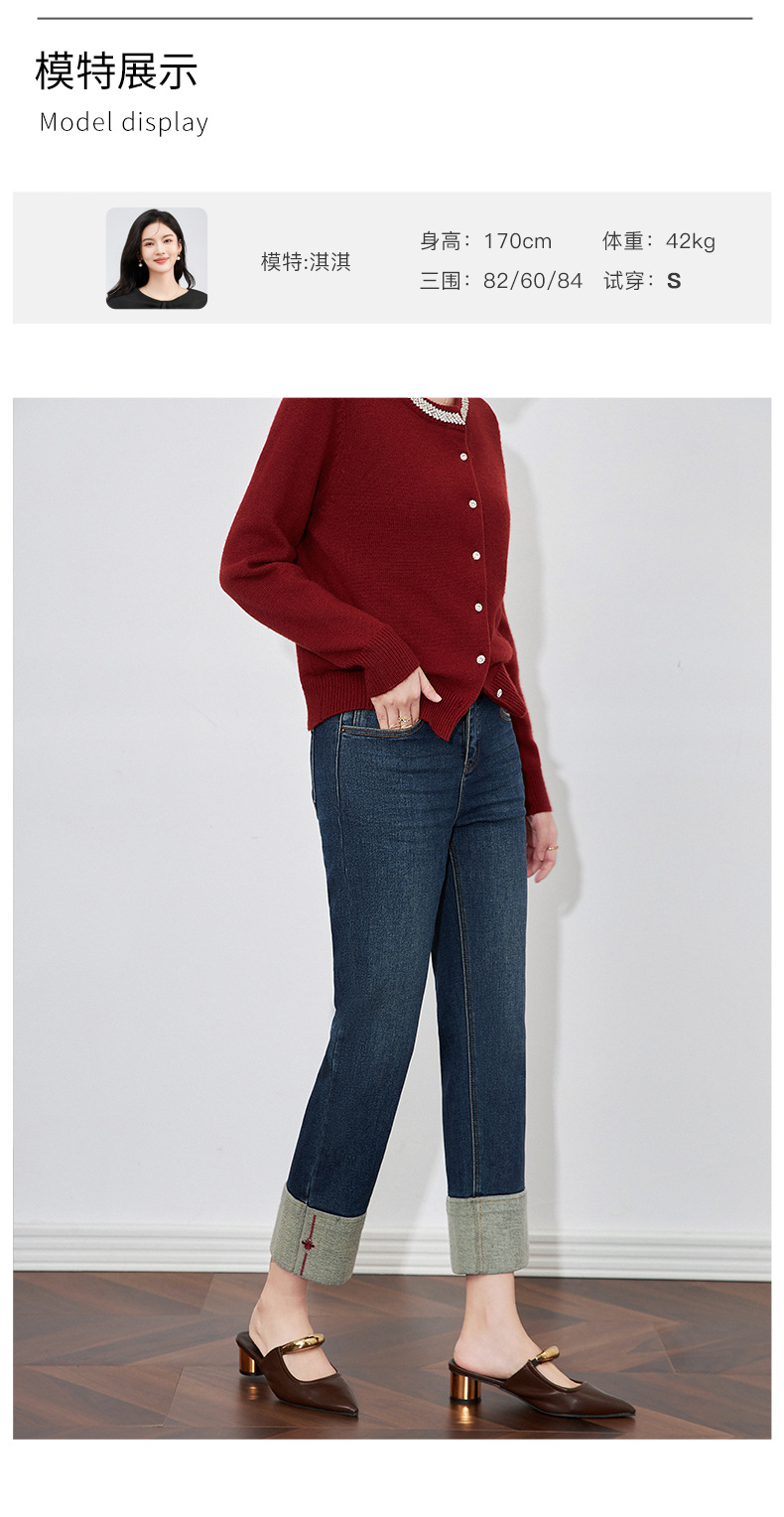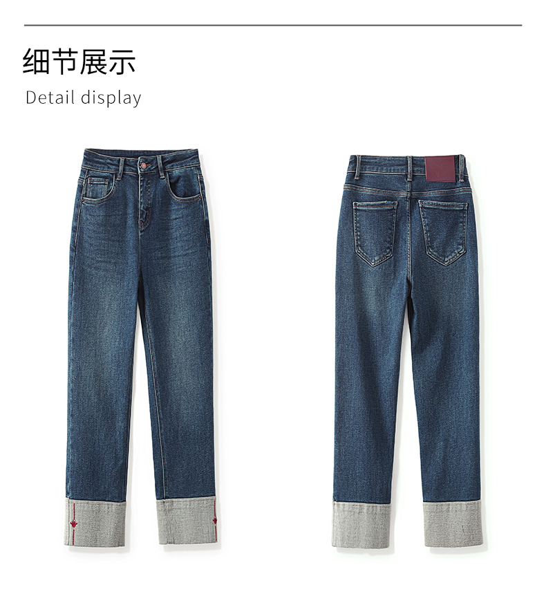 【高货wl】全新升级【铂金会员220/天猫299/差价79】(34447) 洛诗琳时尚绣花加绒翻边小直筒牛仔裤修腿显瘦烟管裤女