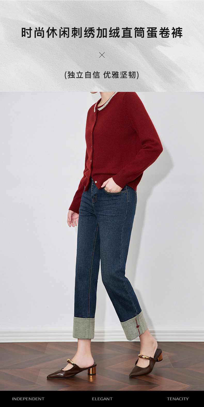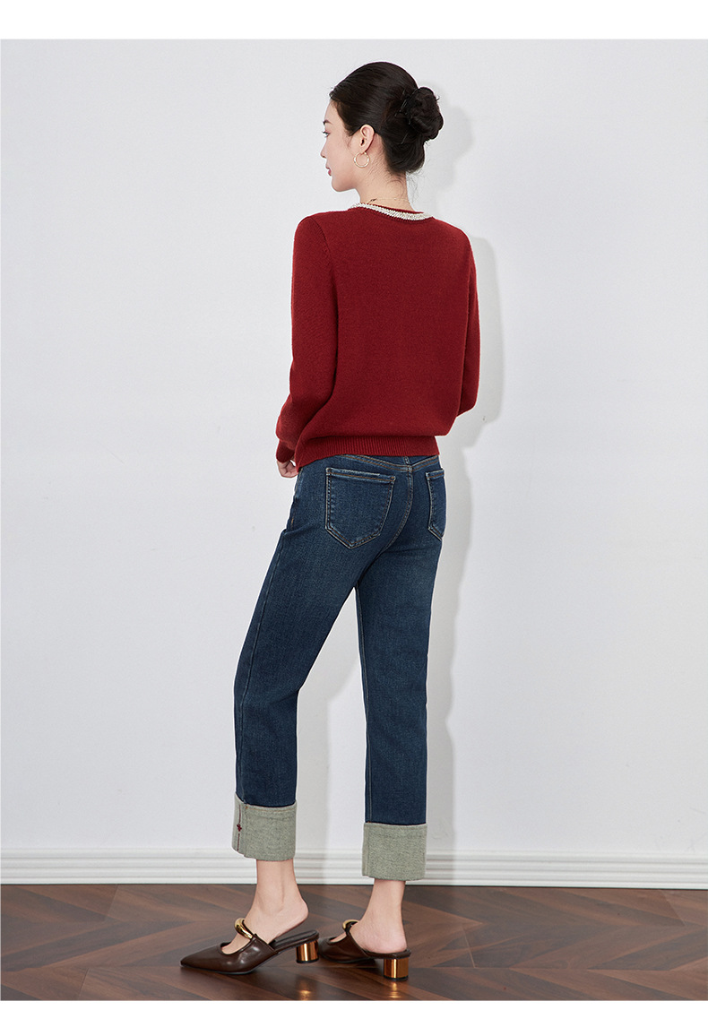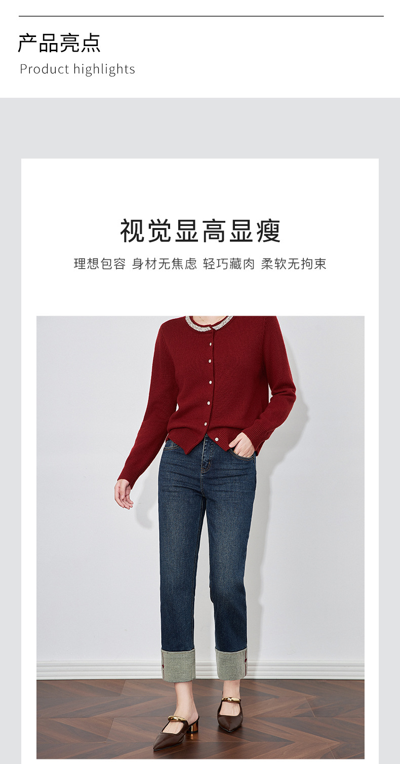 【高货wl】全新升级【铂金会员220/天猫299/差价79】(34447) 洛诗琳时尚绣花加绒翻边小直筒牛仔裤修腿显瘦烟管裤女