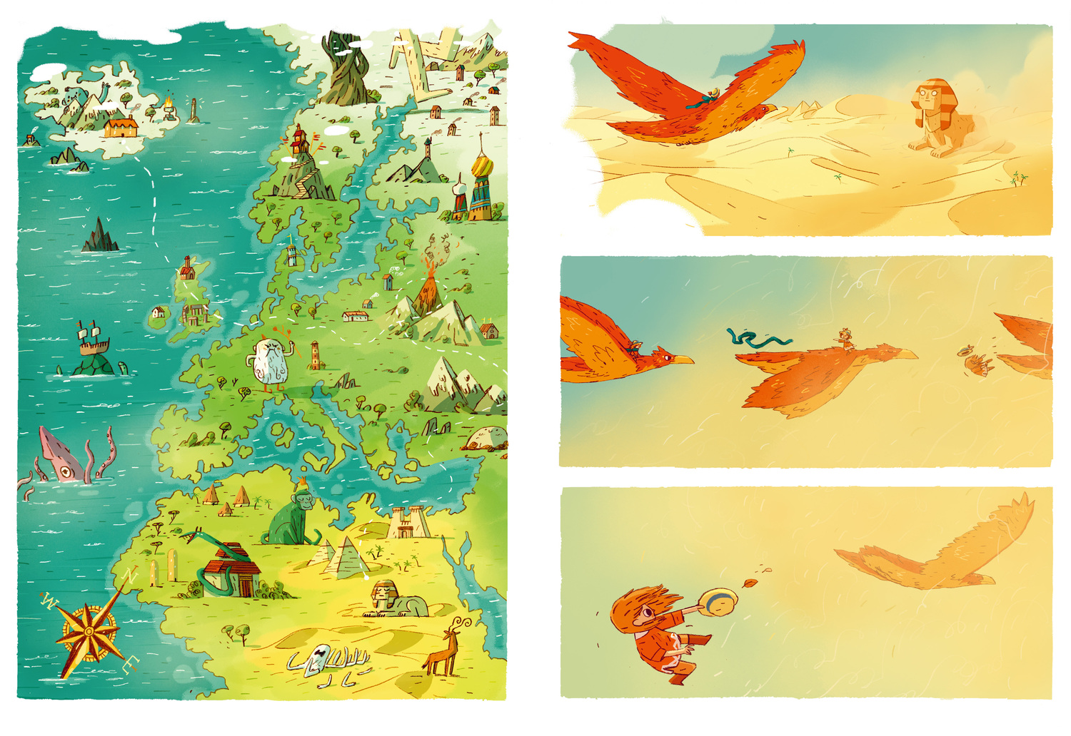 ★读这本书就像在看电影!画面转换像电影分镜一样流畅,构图灵活多变,场景宏大壮美,遍布神话元素,拉满神秘氛围感,牢牢吸引孩子,提高孩子的观察力和审美能力