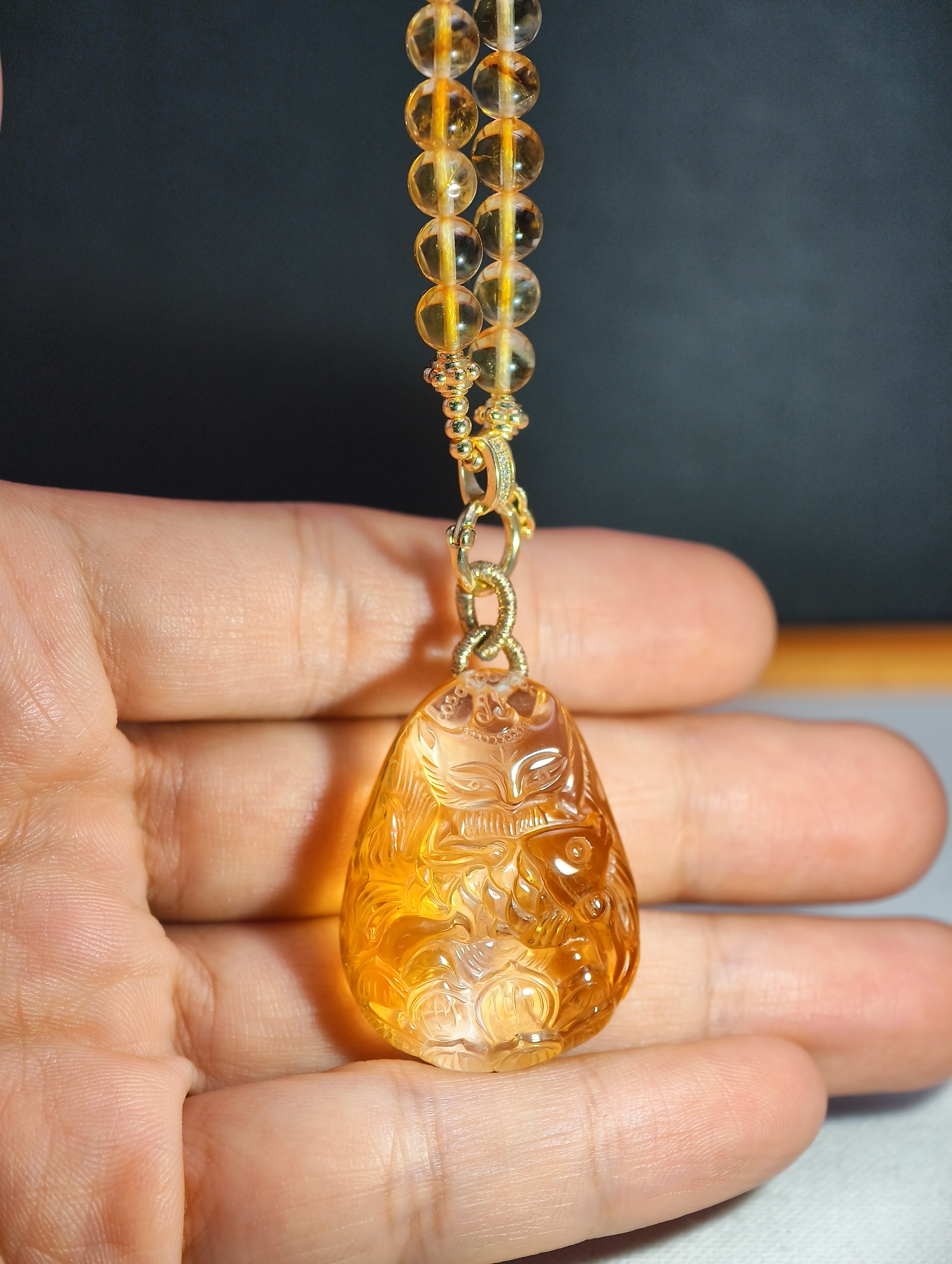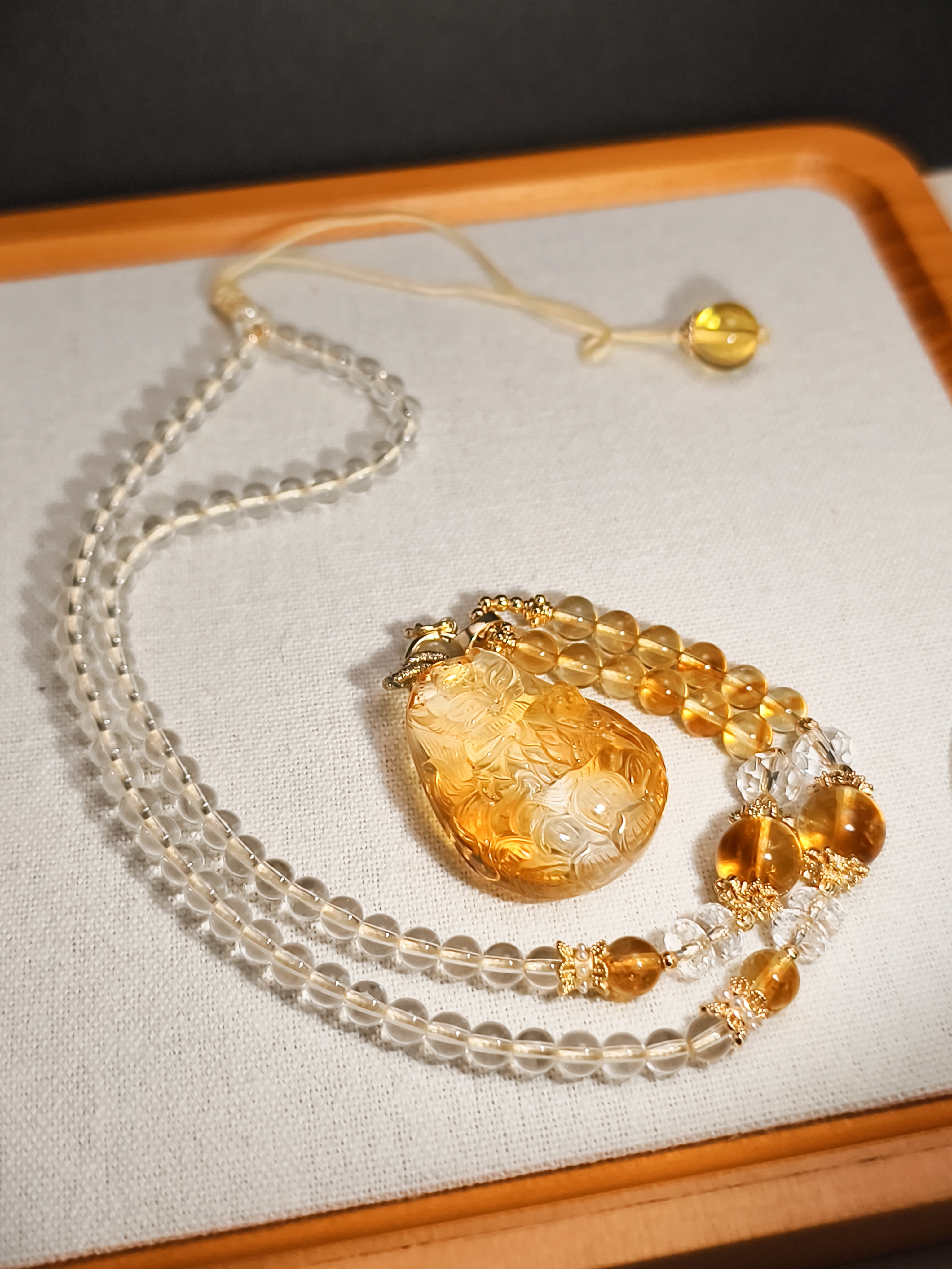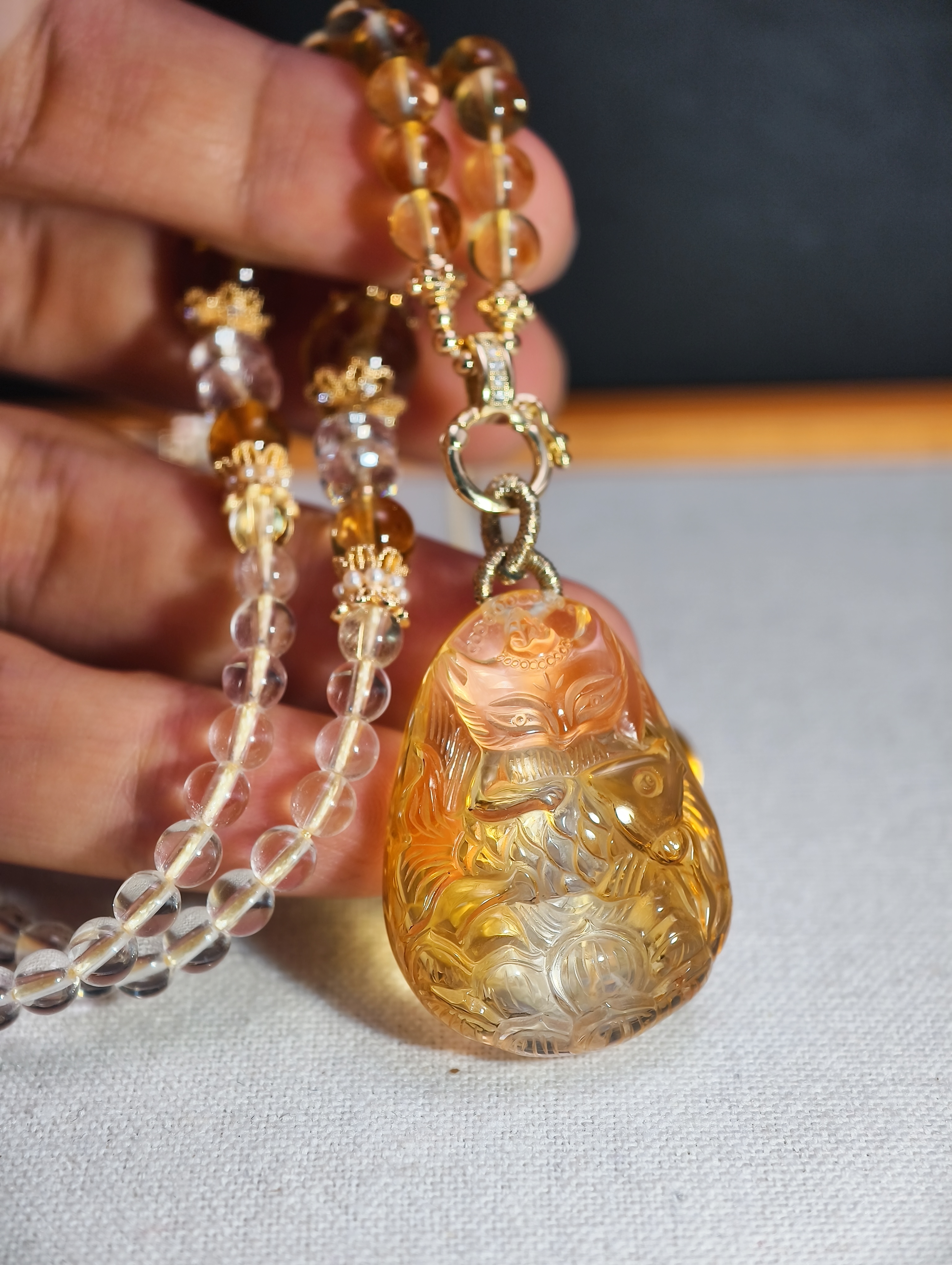 董易奇吉祥物黄水晶貔貅金蟾编织绳男女吊坠挂件