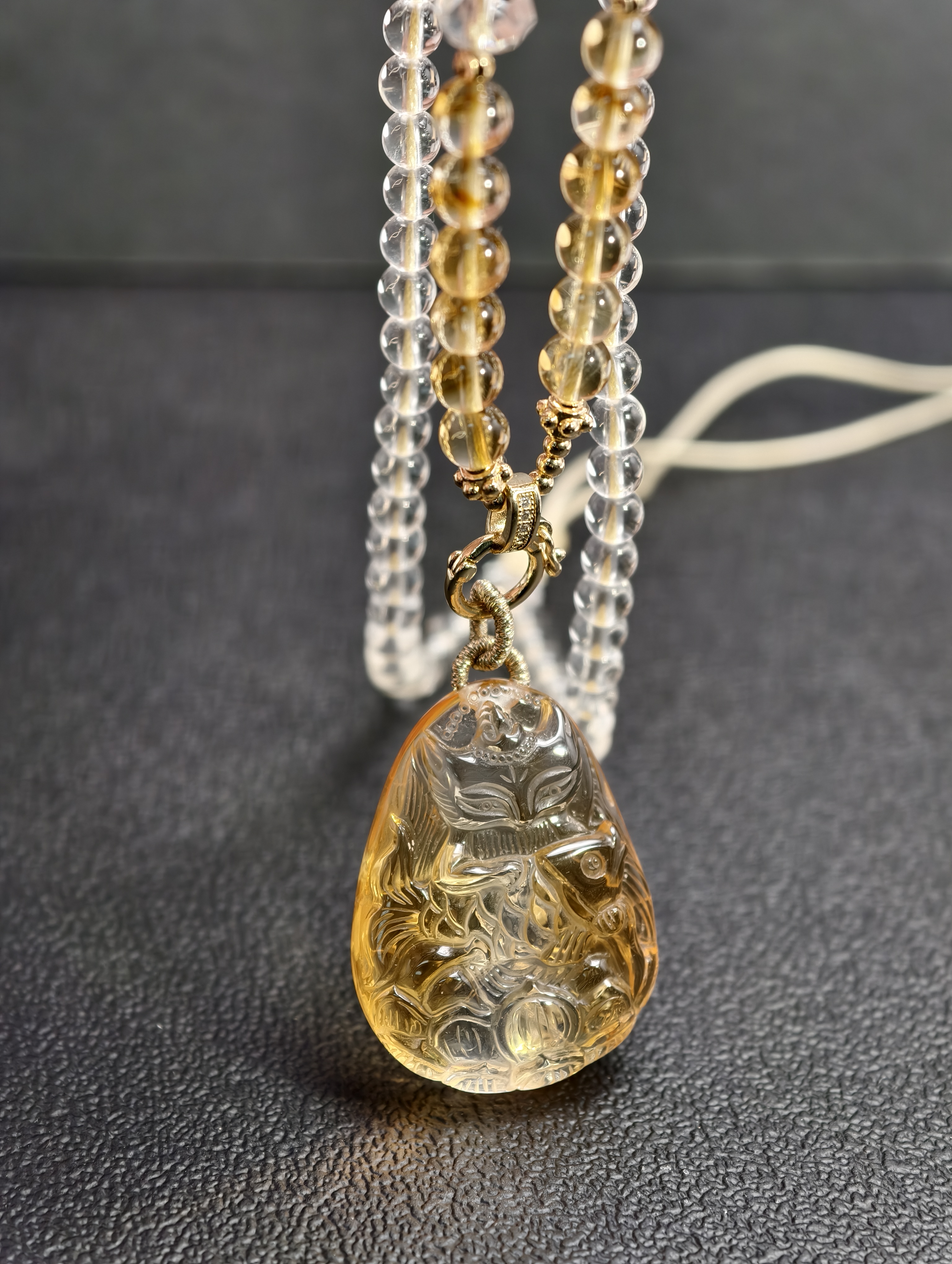 董易奇原创食禄贵人吊坠天然白水晶挂件银饰品男女士项链