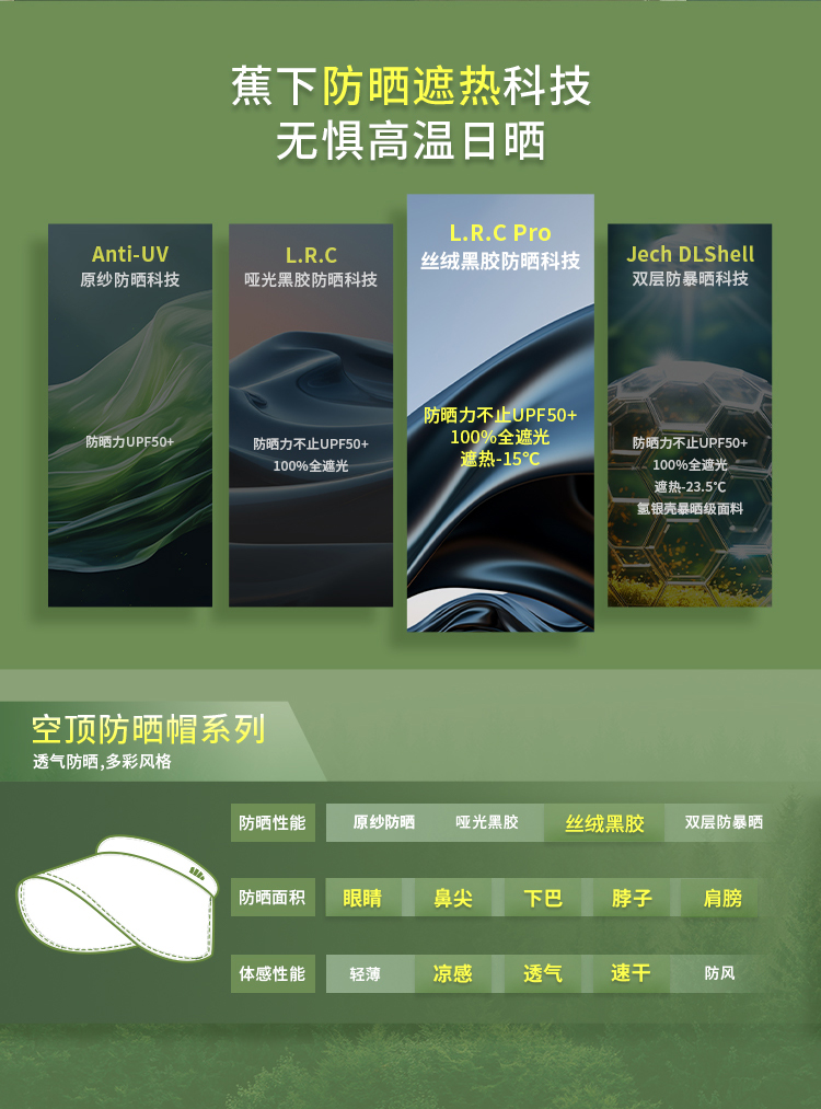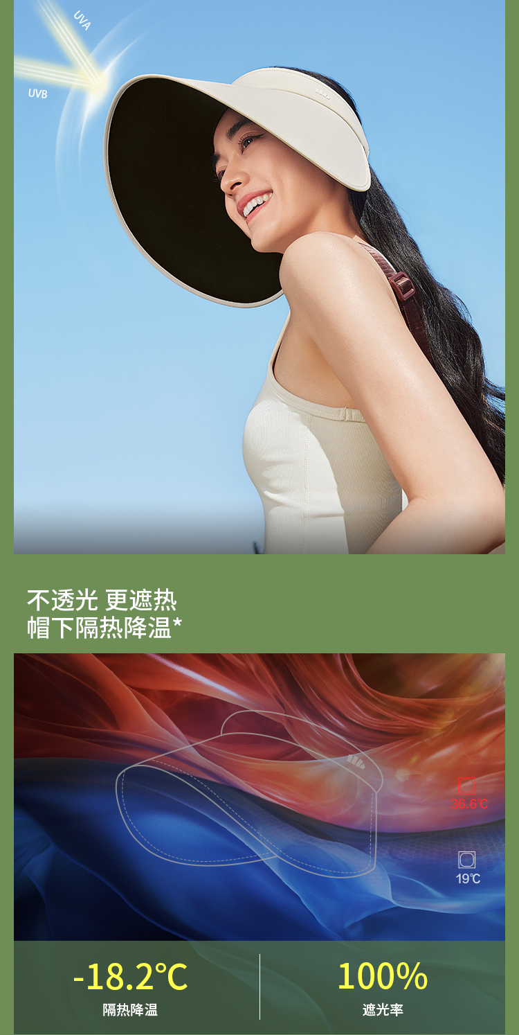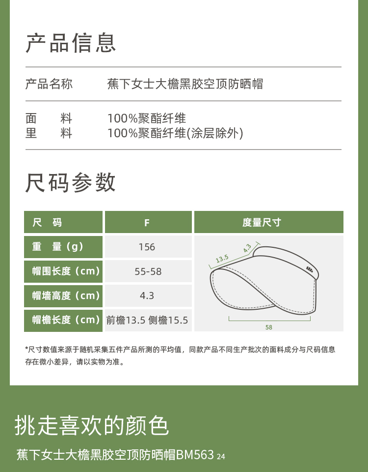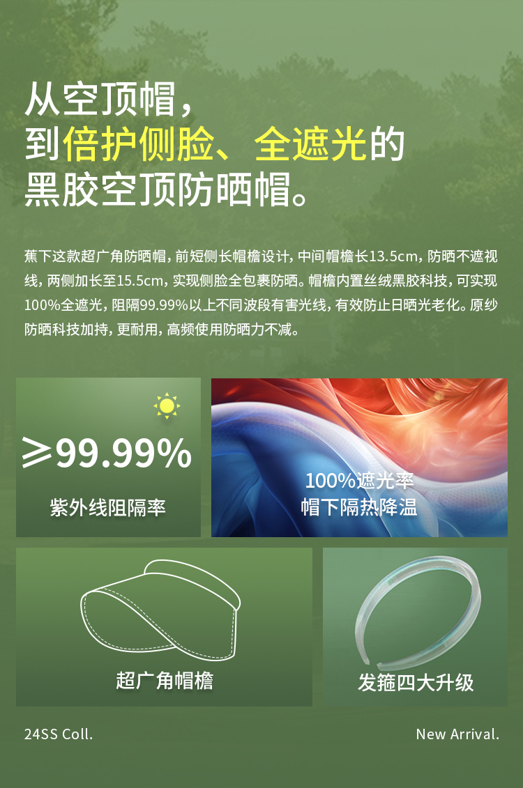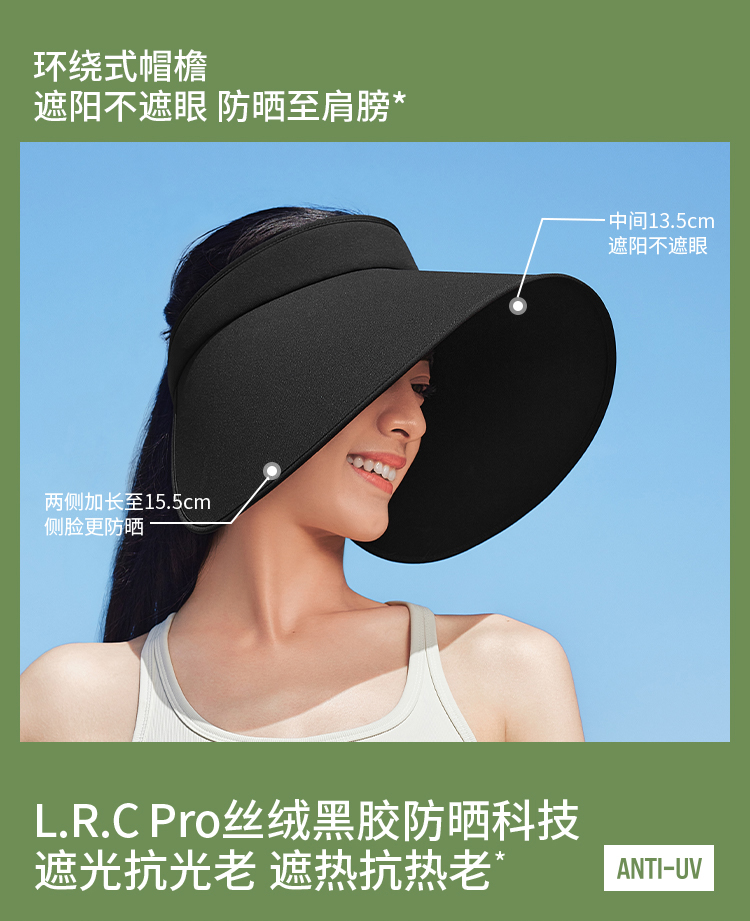蕉下女士大檐黑胶空顶防晒帽BM56324