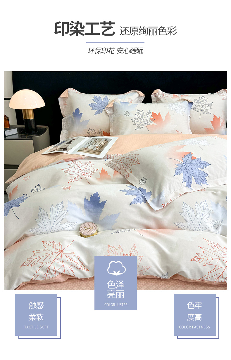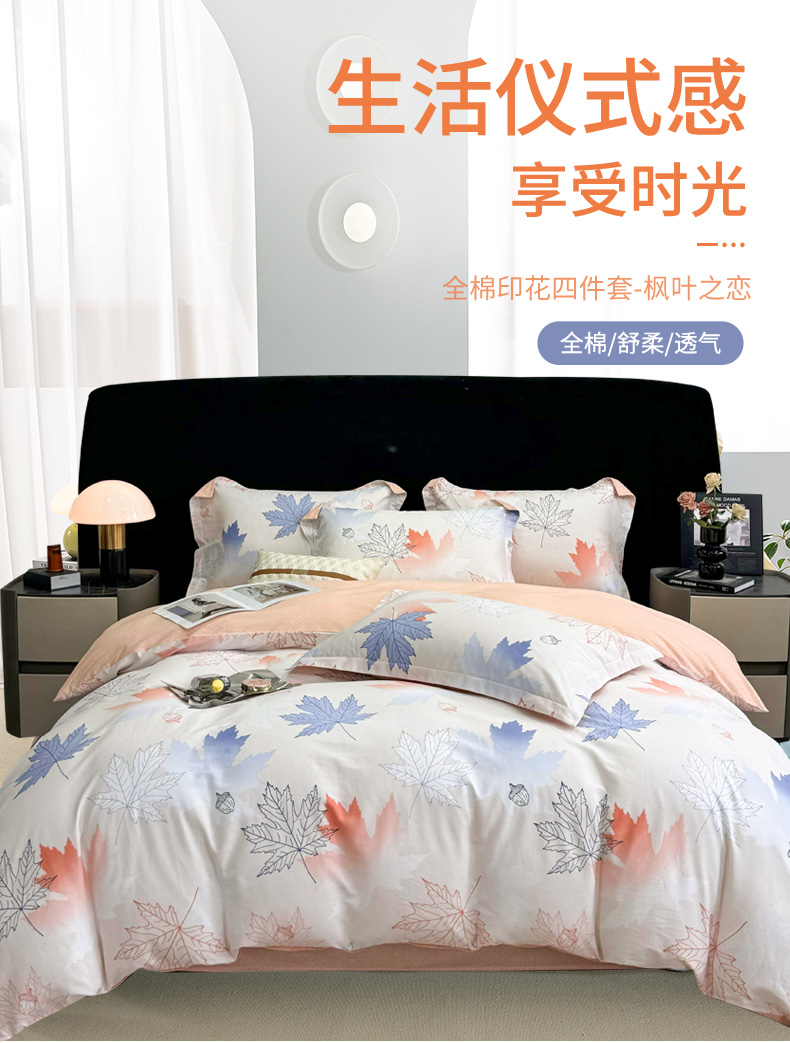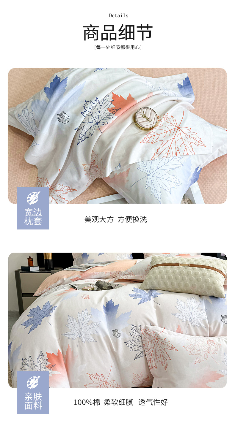 【维科家纺】家纺全棉四件套100纯棉简约床品清新四季被套枫叶之恋1.5米1.8