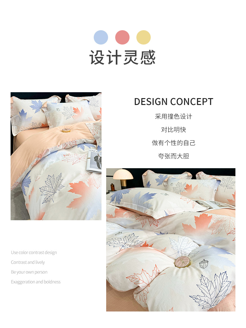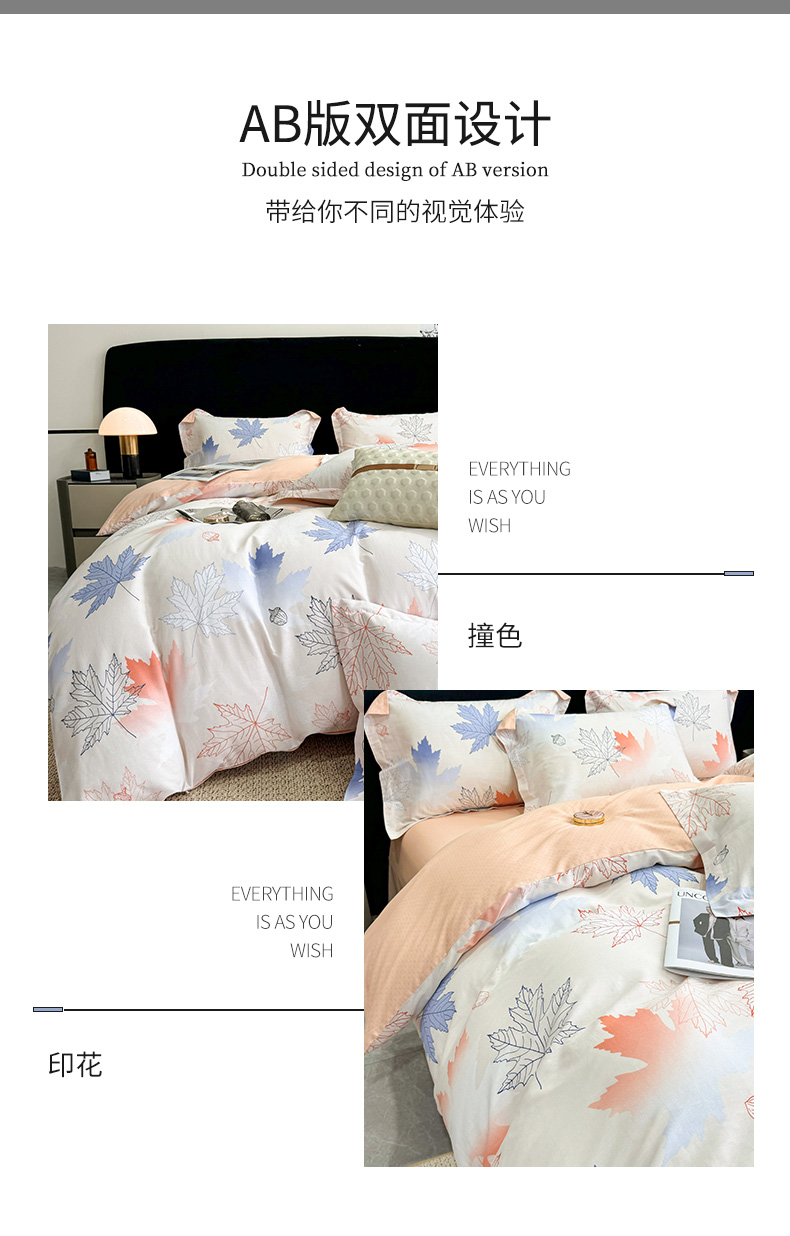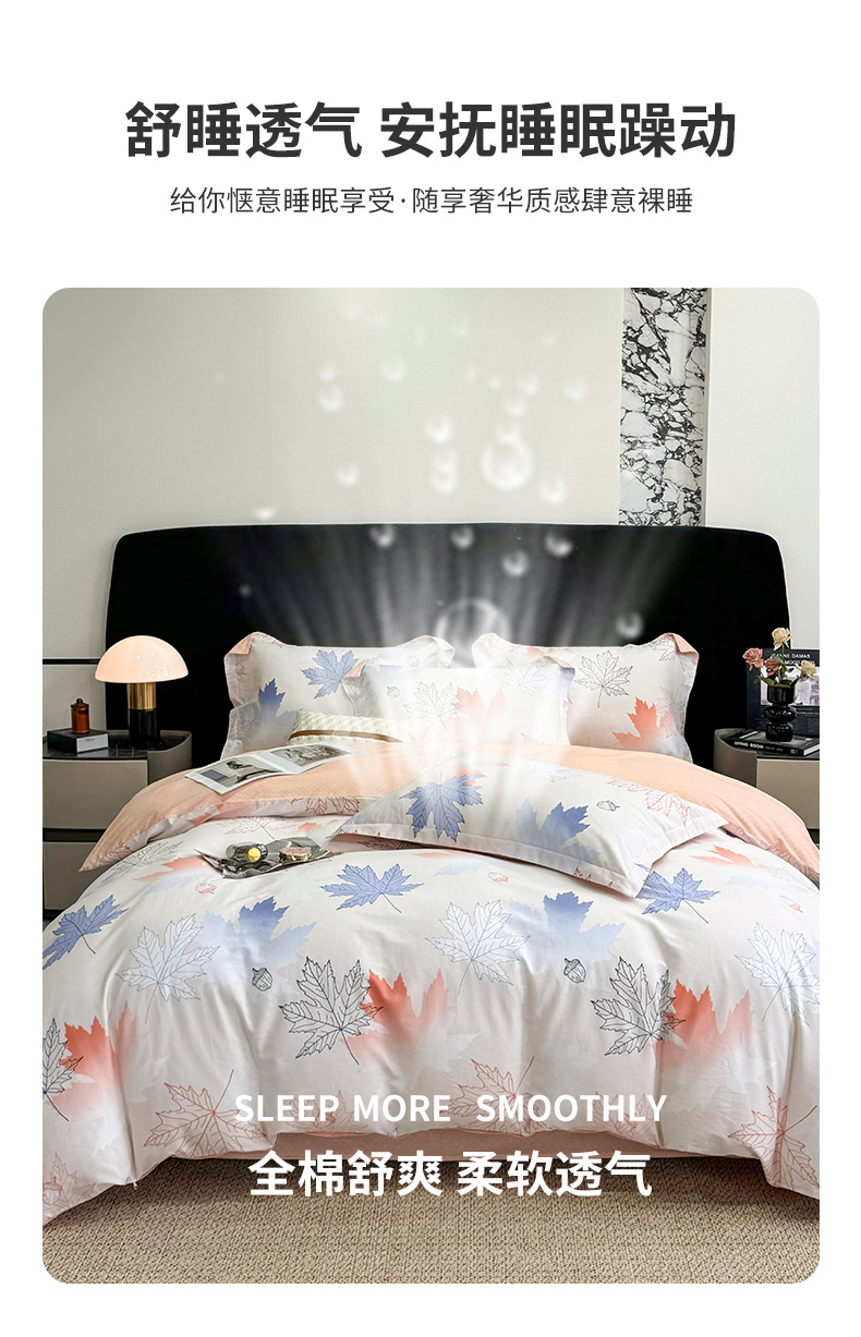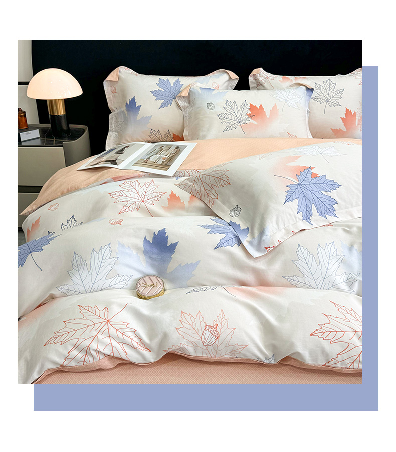 【维科家纺】家纺全棉四件套100纯棉简约床品清新四季被套枫叶之恋1.5米1.8