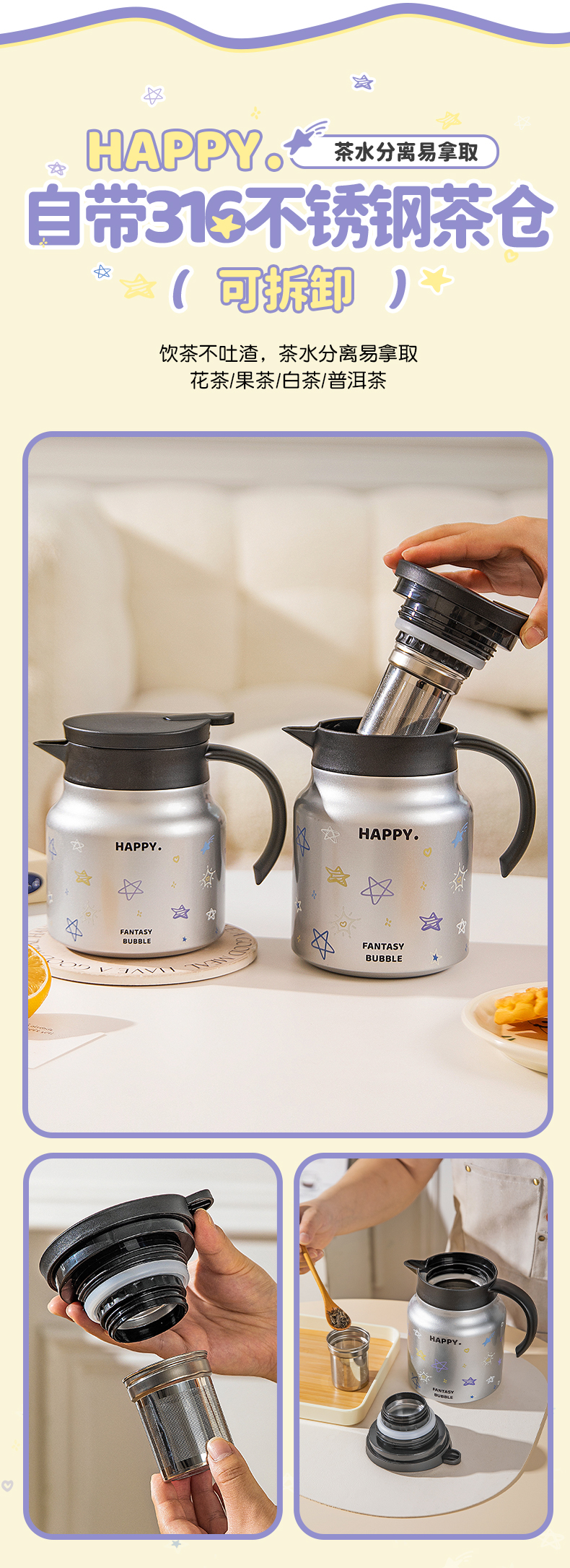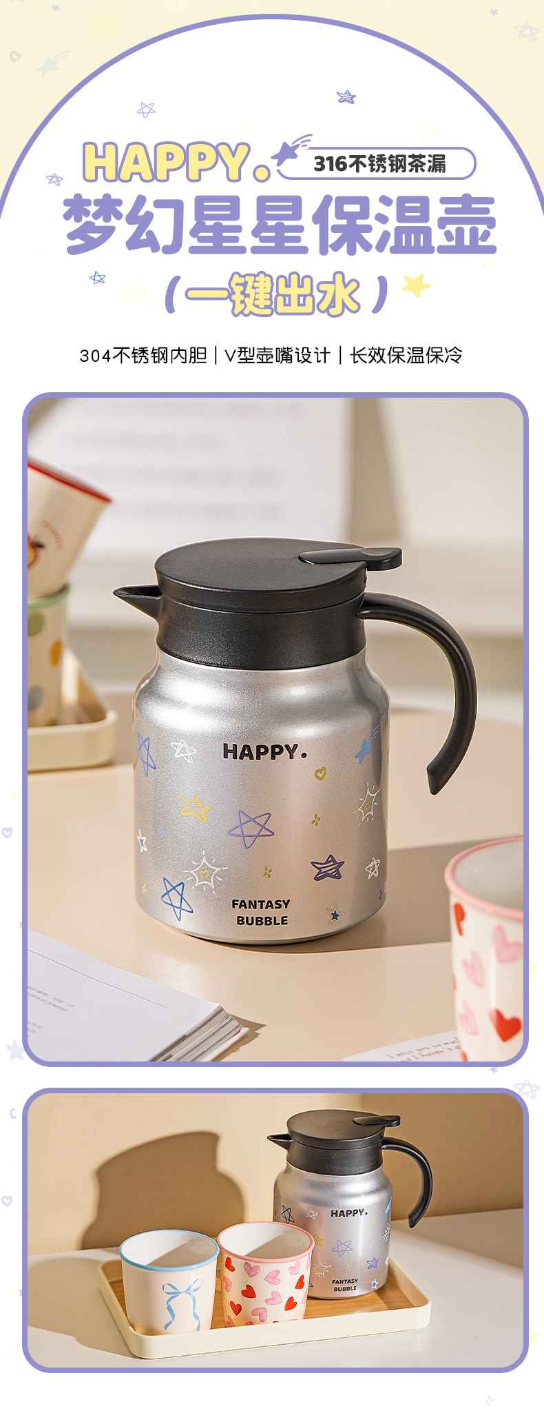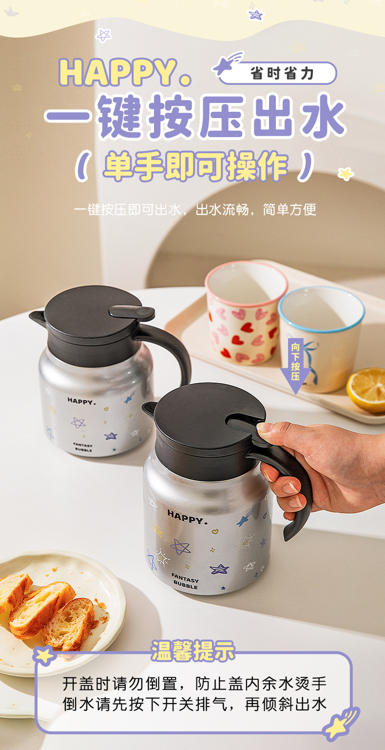 摩登主妇不锈钢保温壶大容量水壶家用喝水杯套装热水瓶焖茶壶暖壶