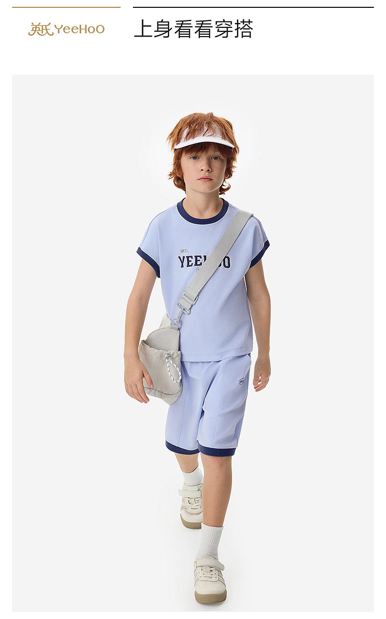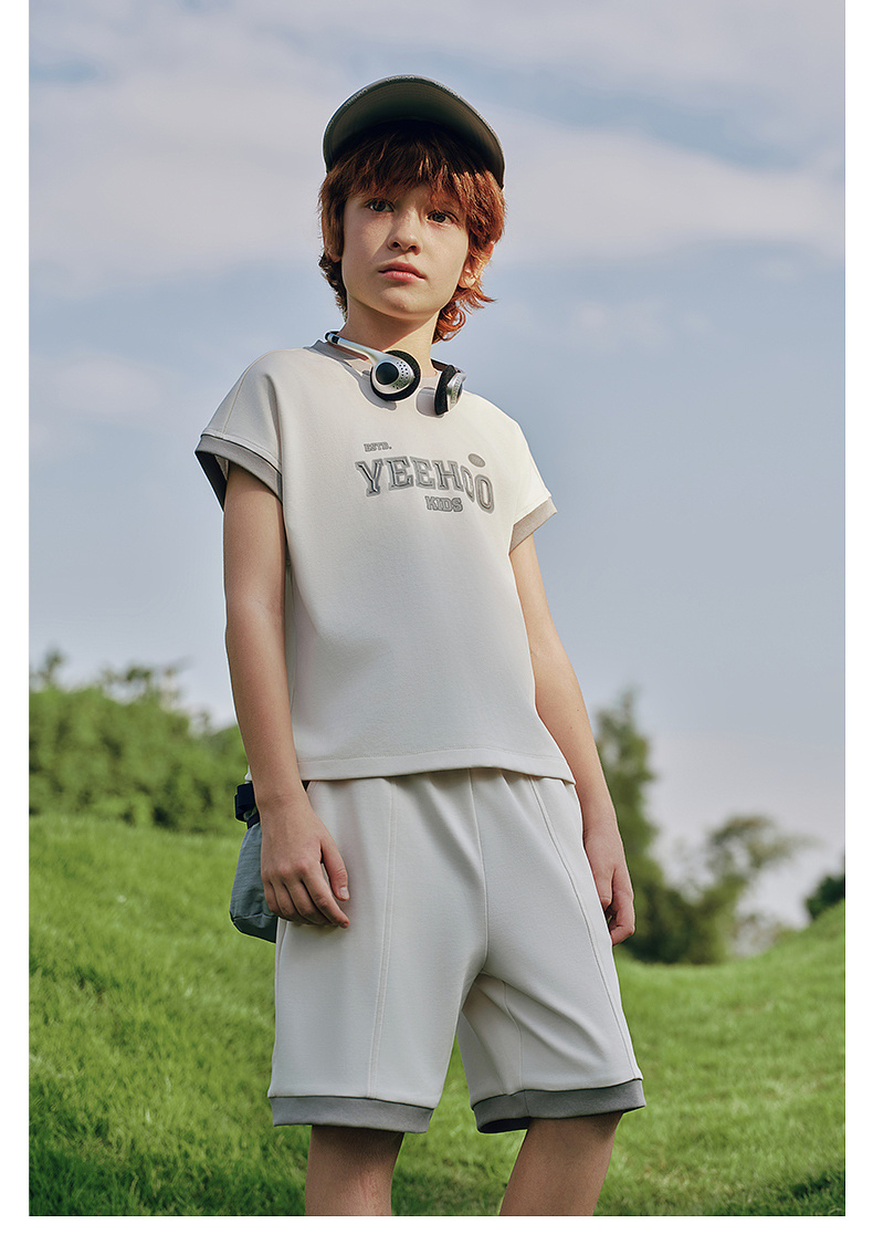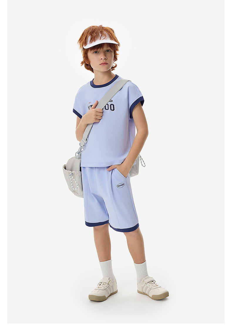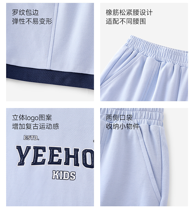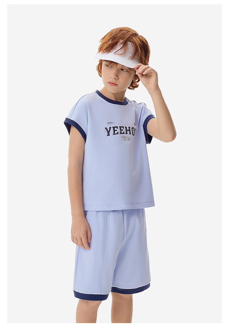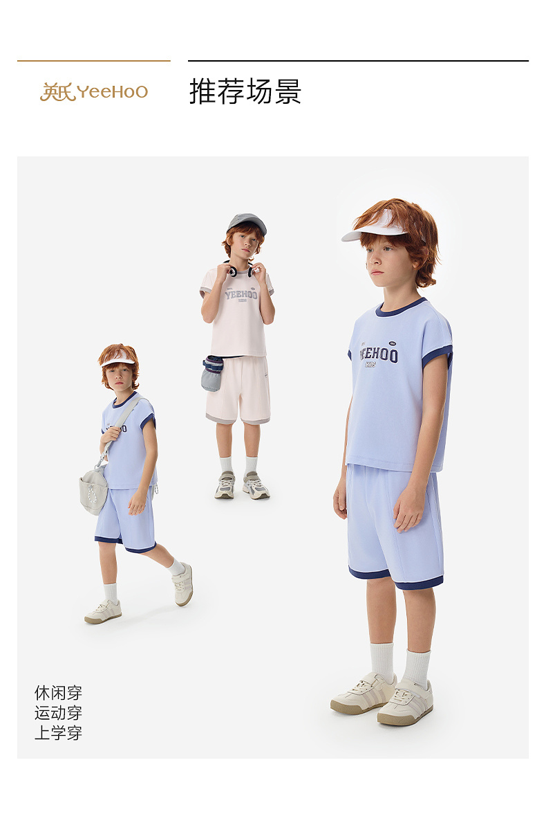 【50S高密针织】英氏儿童套装男童衣裤套装夏季针织短袖短裤套装户外运动休闲百搭