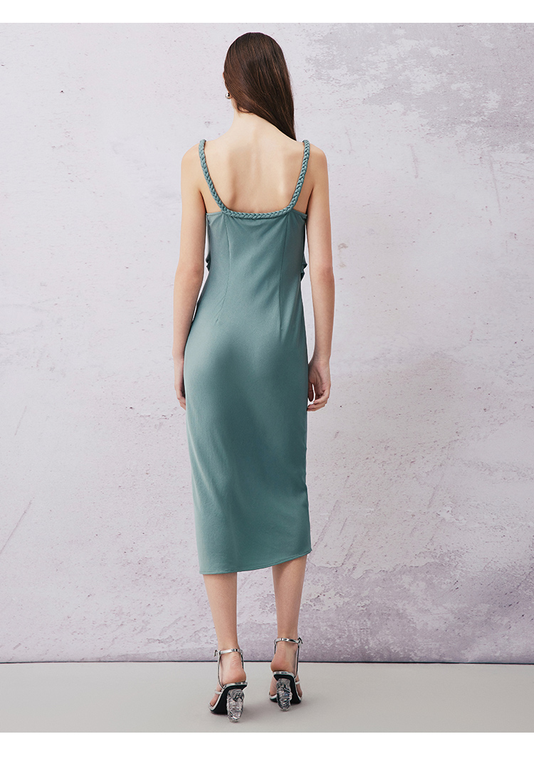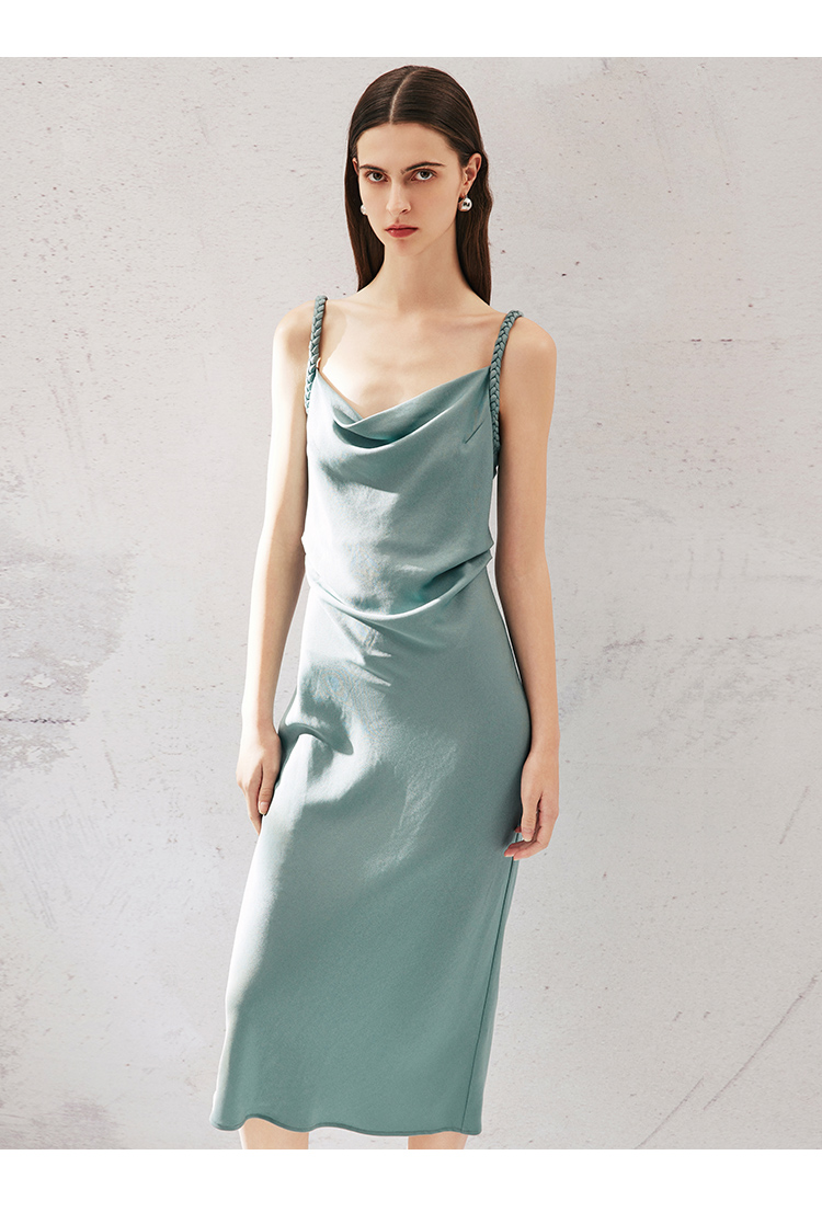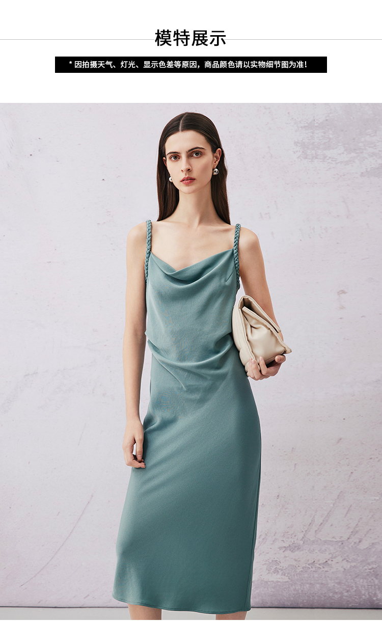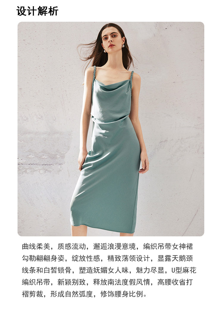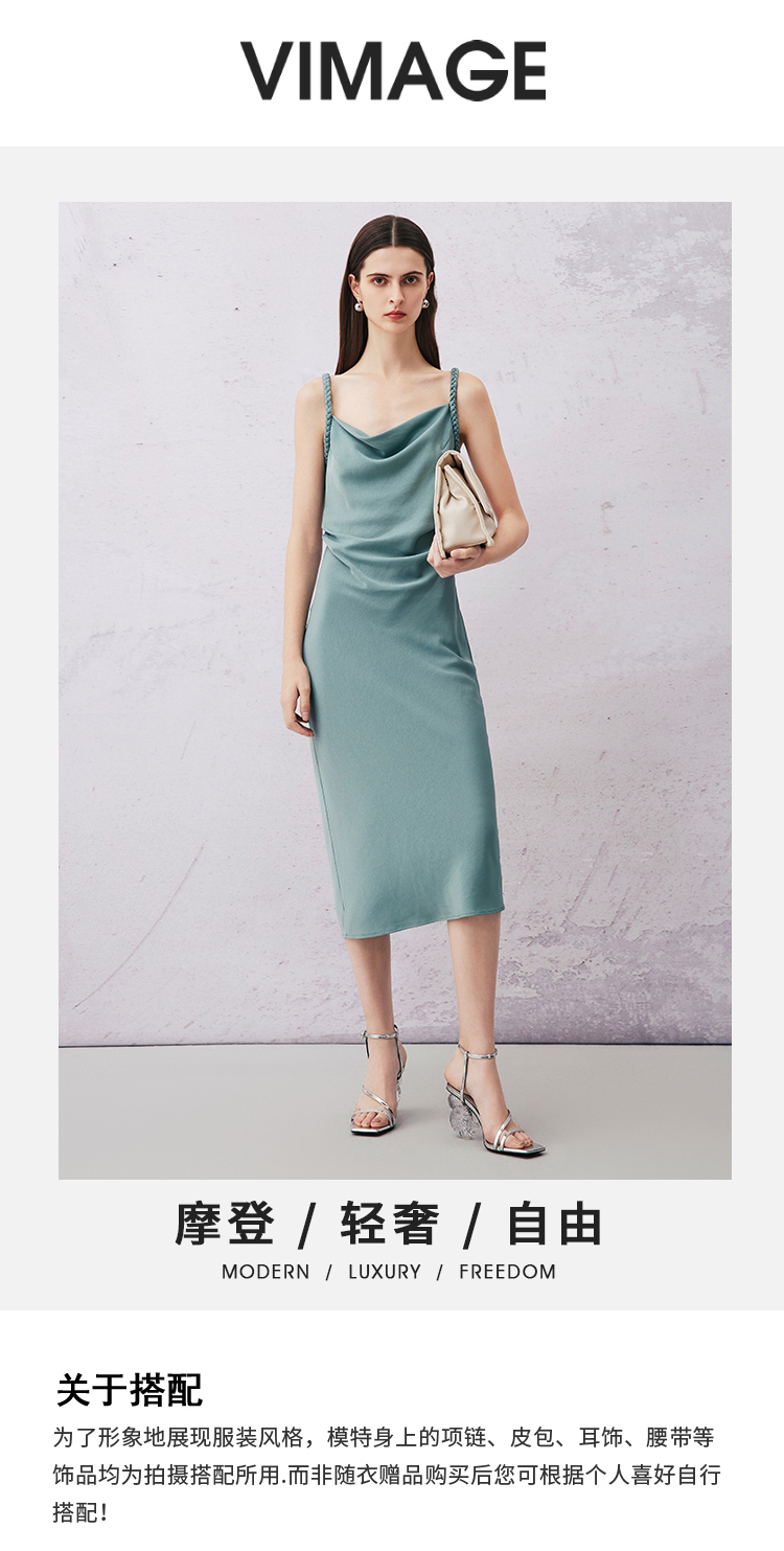 VIMAGE纬漫纪夏季新款气质慵懒荡领修身显瘦吊带连衣裙V2107733