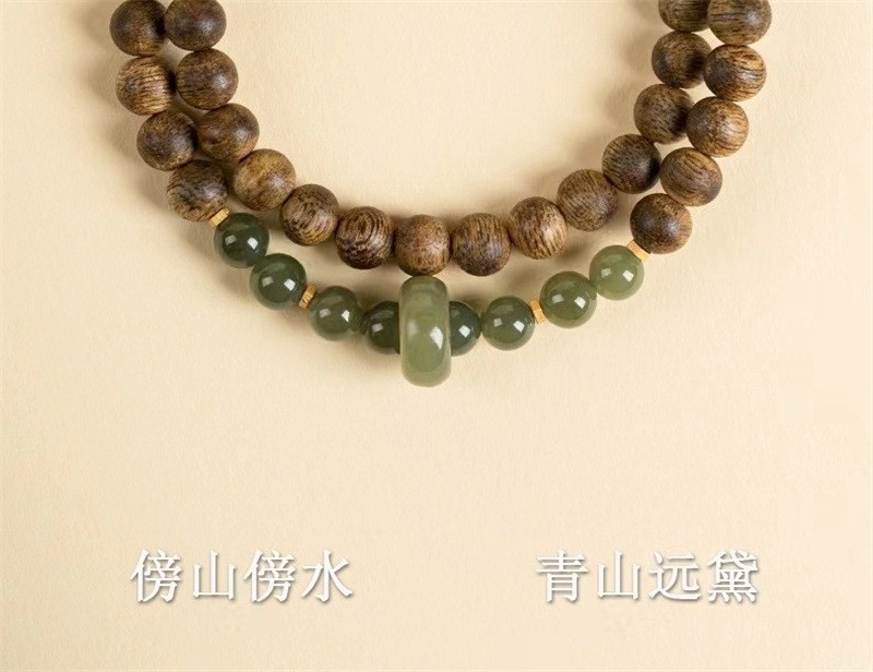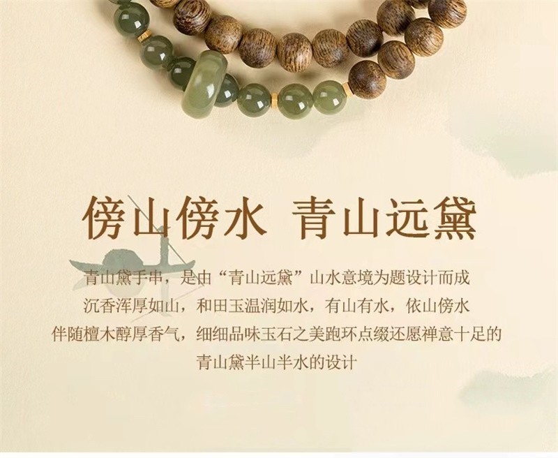 沉香之美 古朴大气【沉香.青山黛】和田玉跑环 半山半水,一份心意 更是祝福 男女老少皆宜 自戴送礼佳品