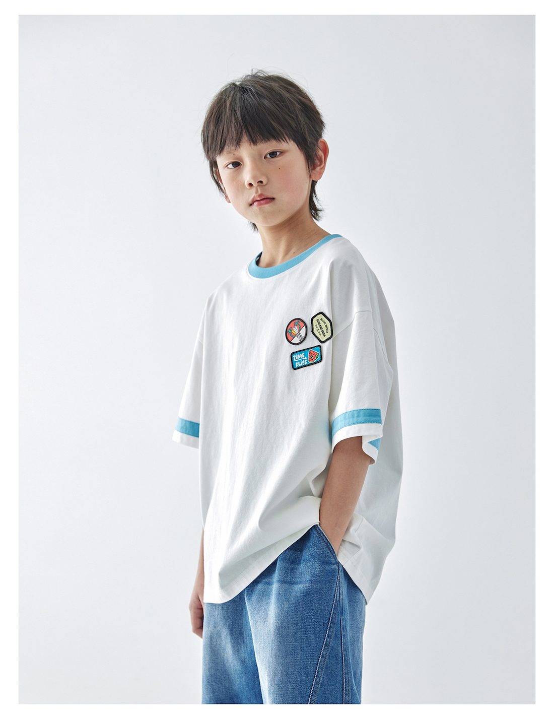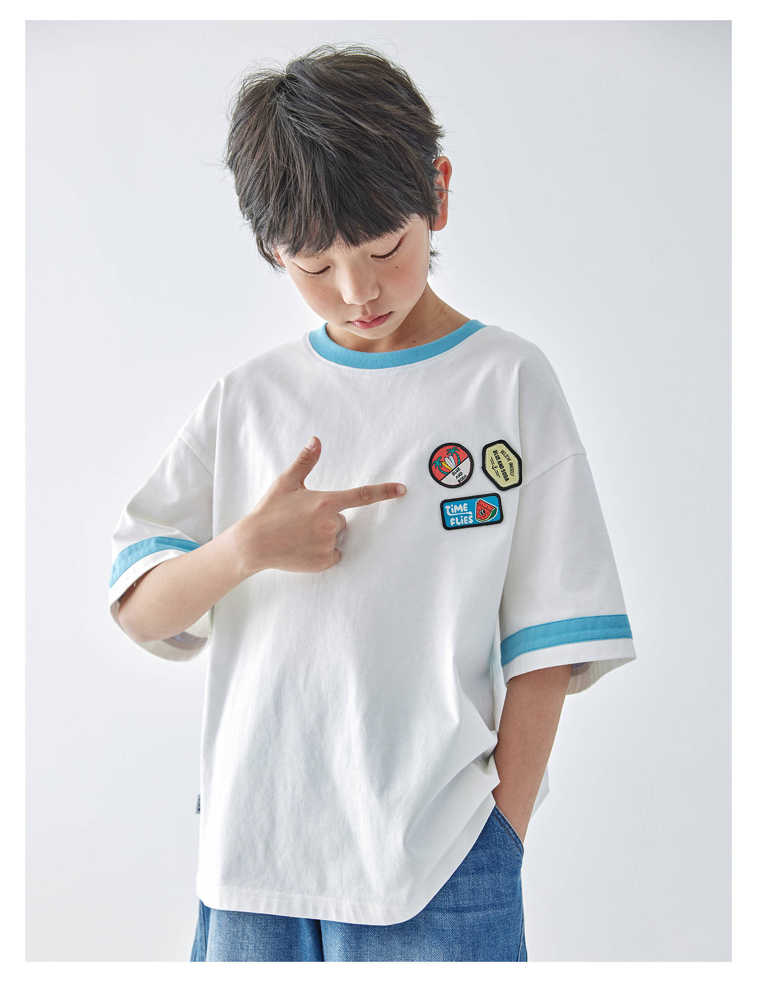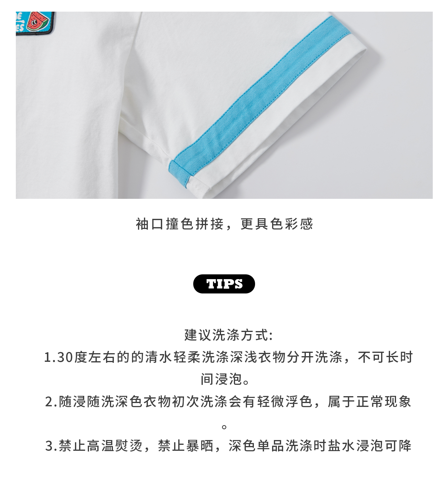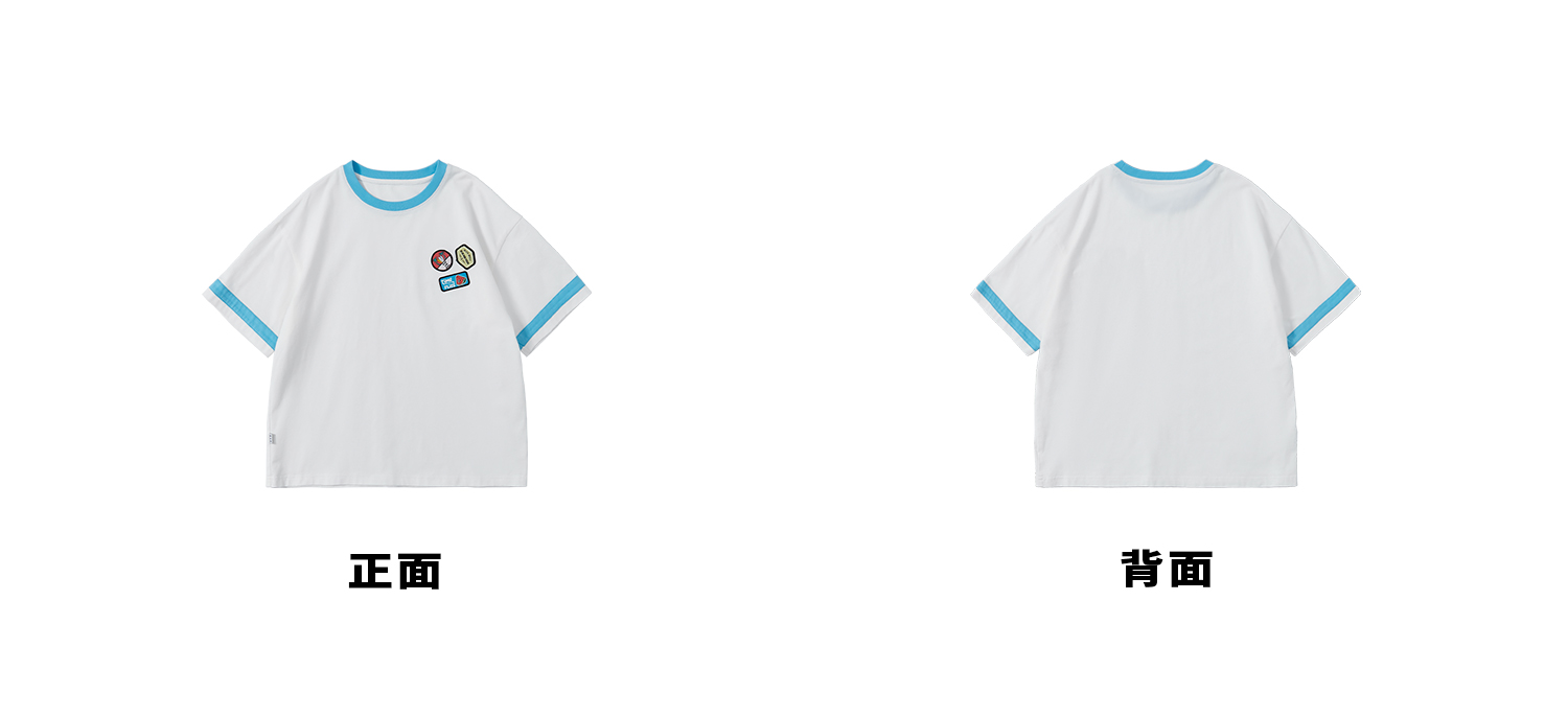 蓝汽水2025新款撞色休闲短袖T恤夏季全棉趣味撞色织标亲子款上衣