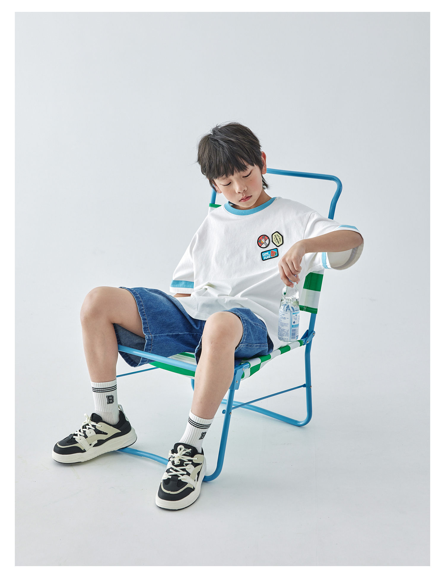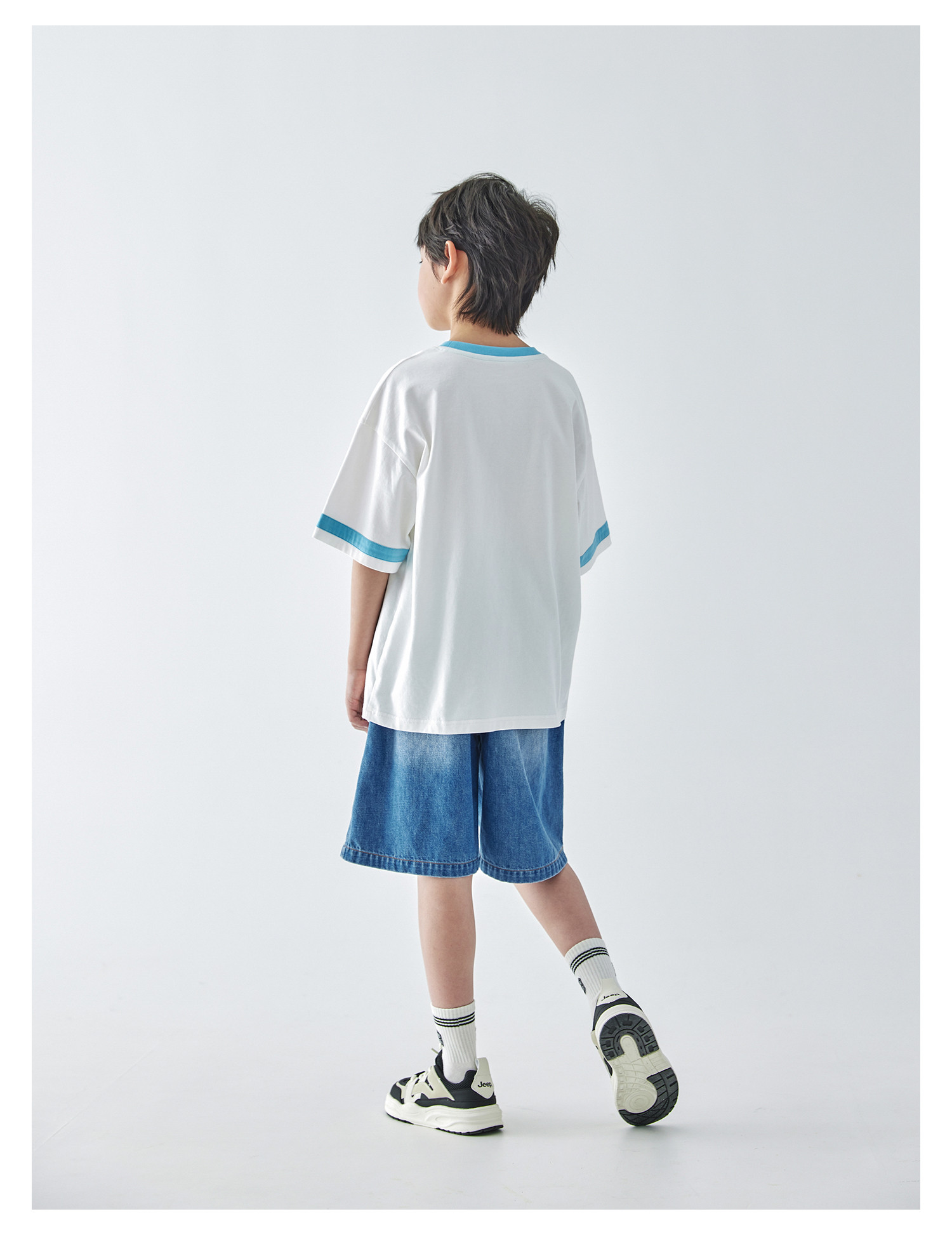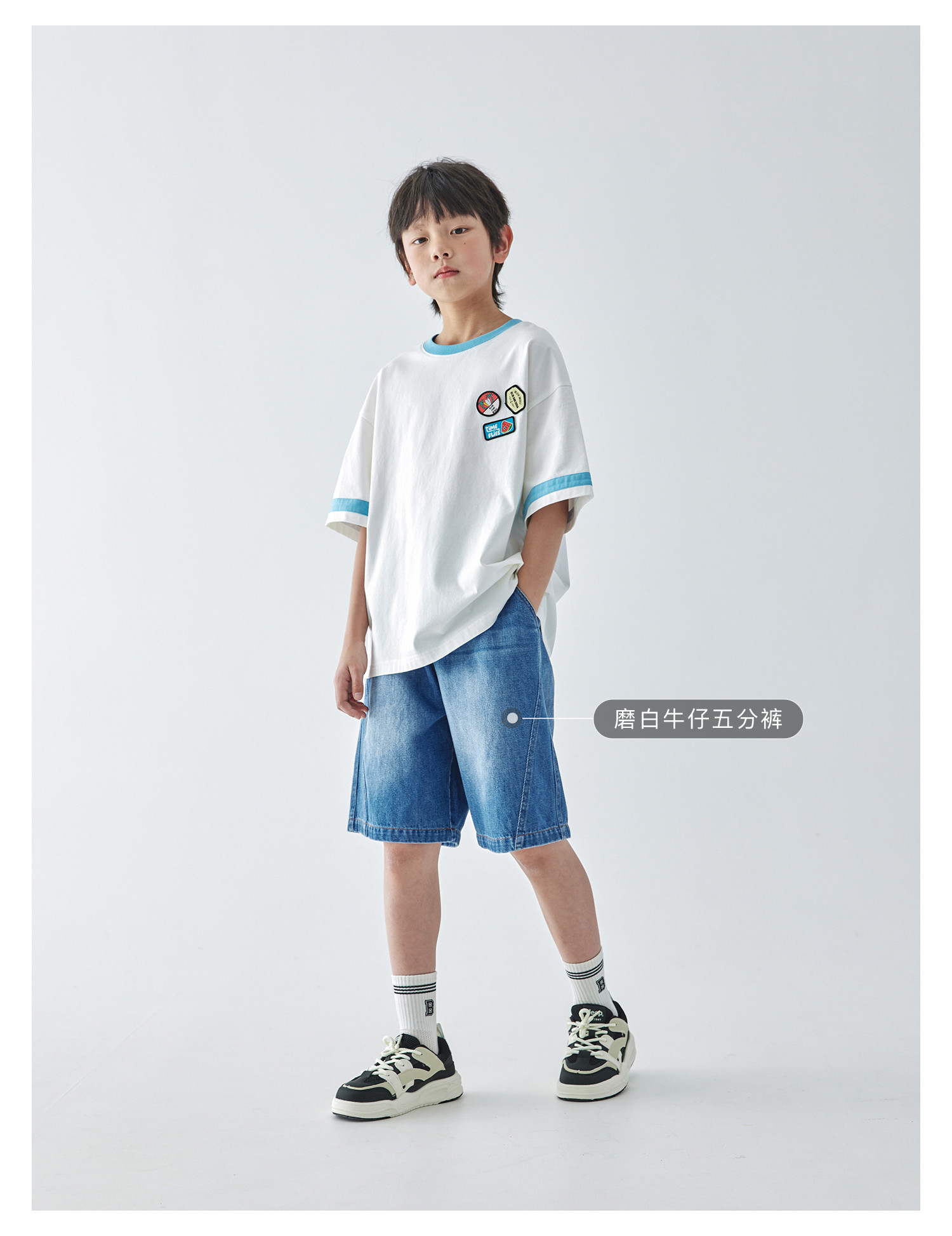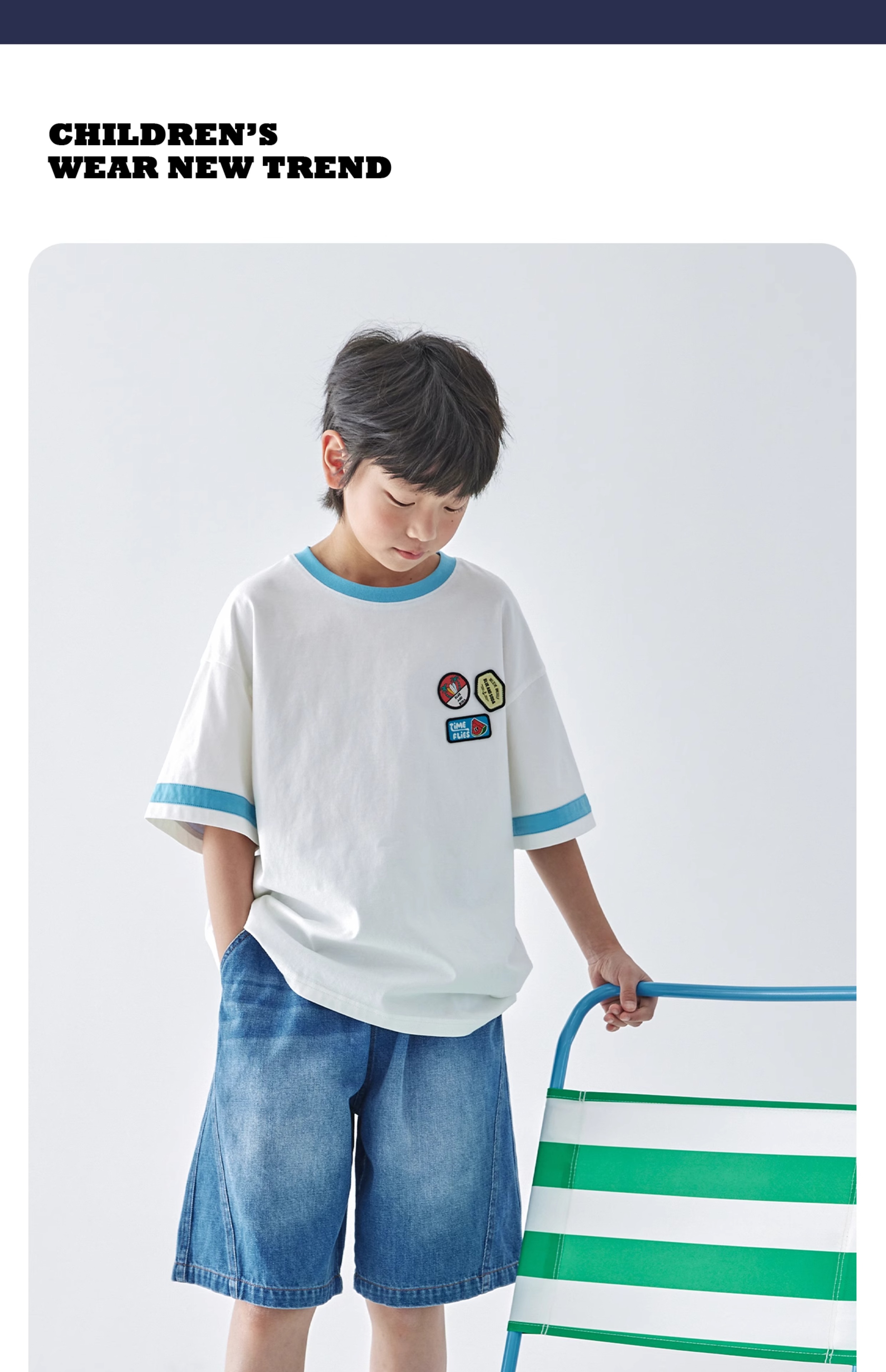 蓝汽水2025新款撞色休闲短袖T恤夏季全棉趣味撞色织标亲子款上衣