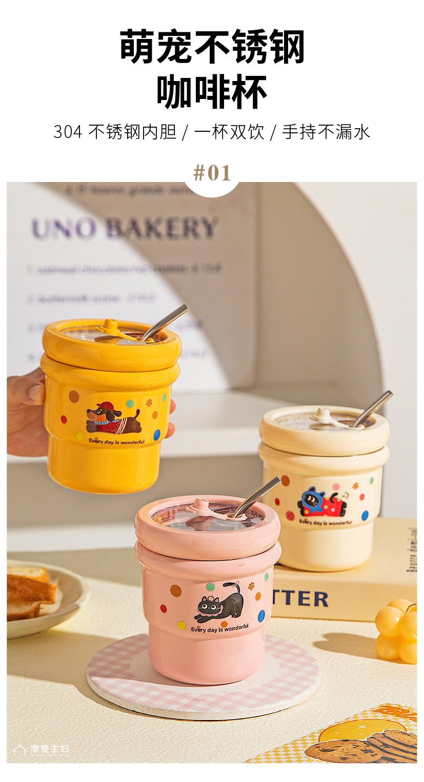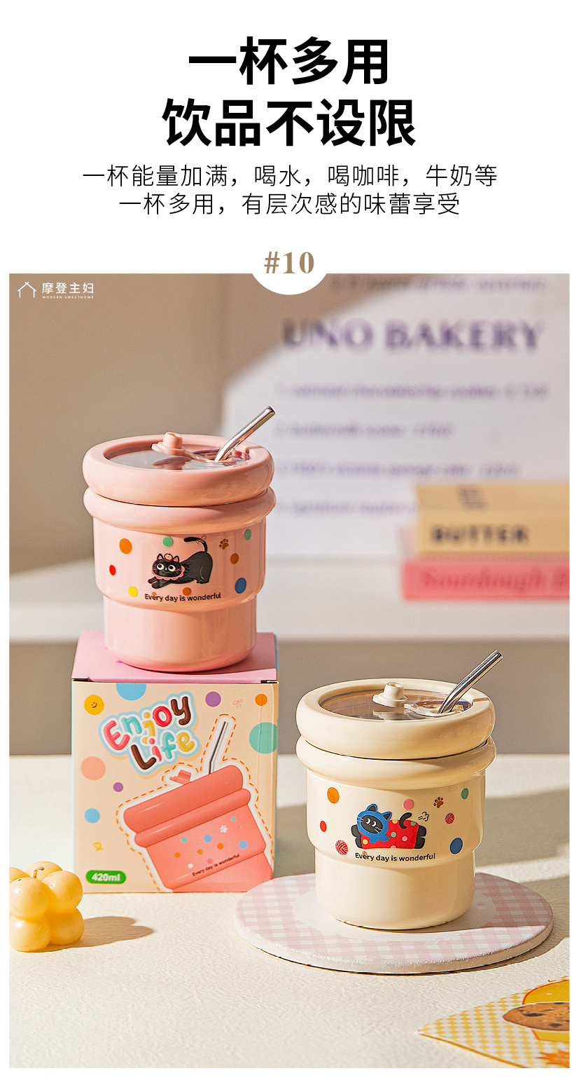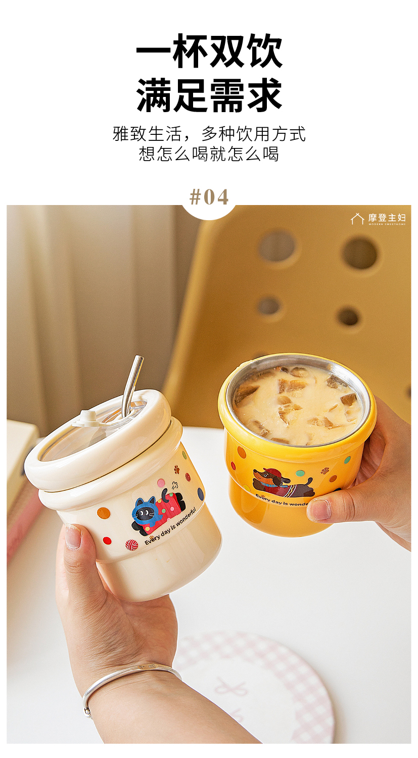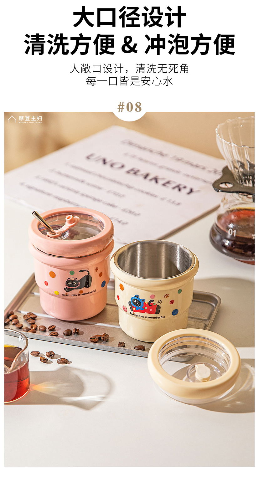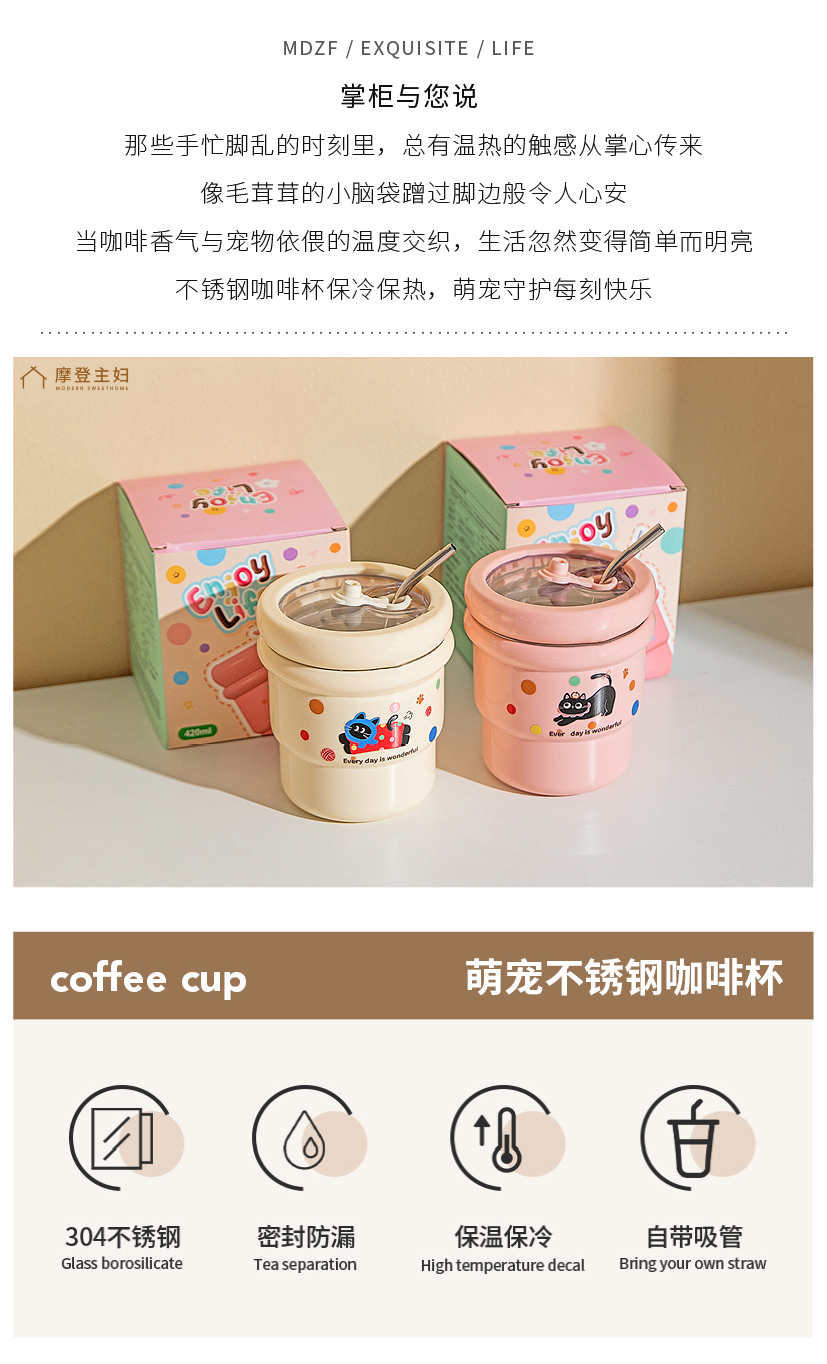 摩登主妇不锈钢咖啡杯外出携带高颜值家用喝水杯办公室杯子吸管杯