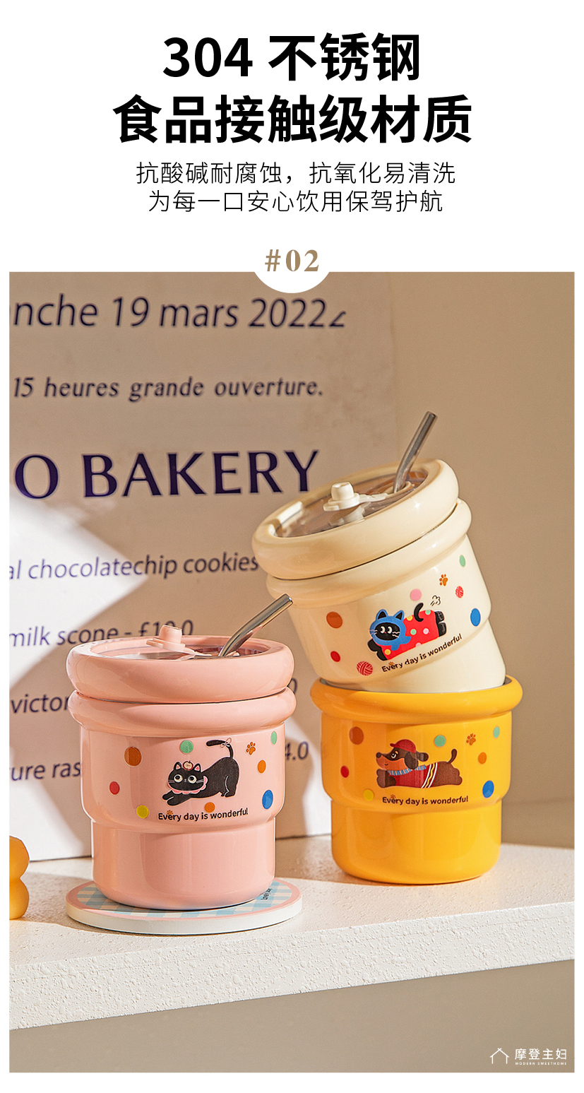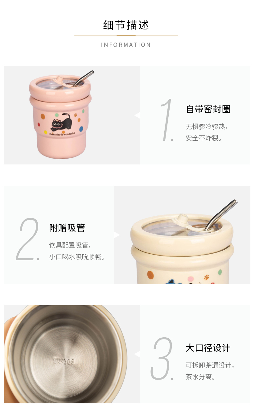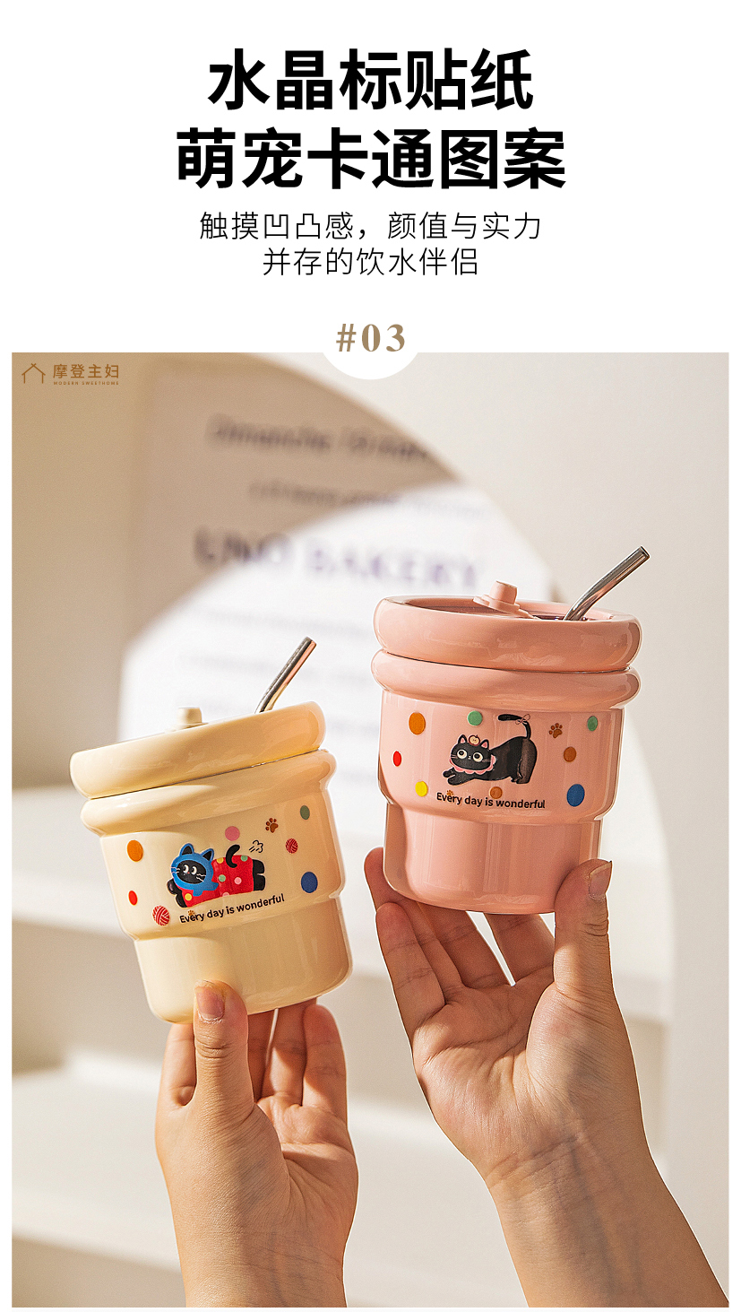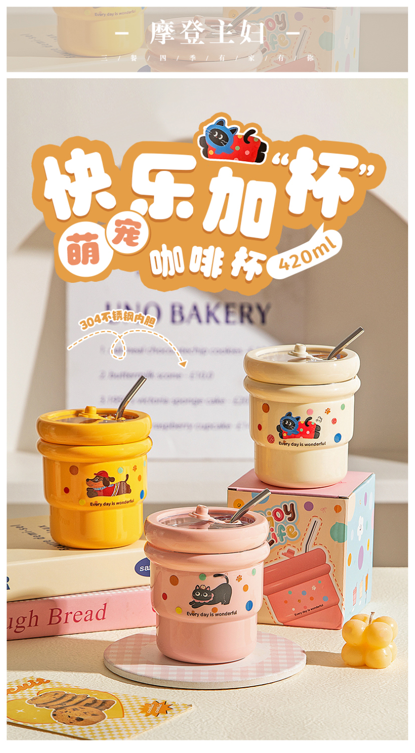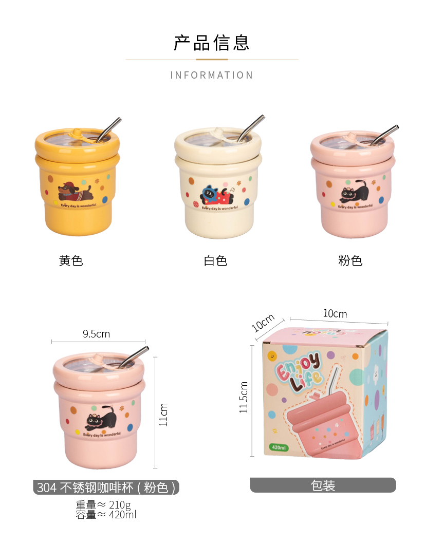 摩登主妇不锈钢咖啡杯外出携带高颜值家用喝水杯办公室杯子吸管杯