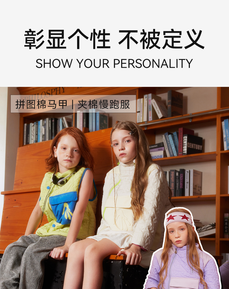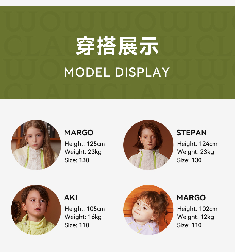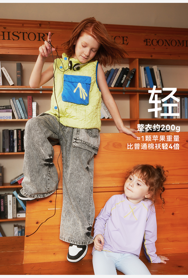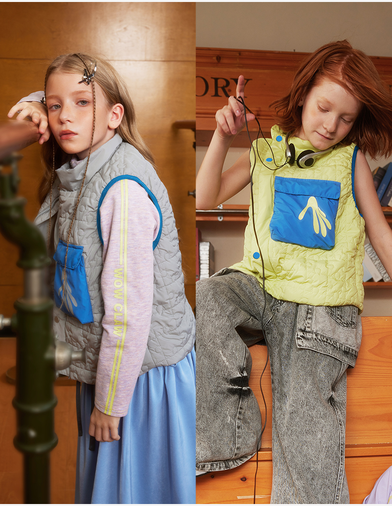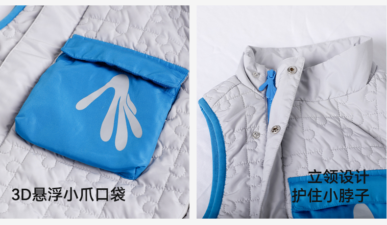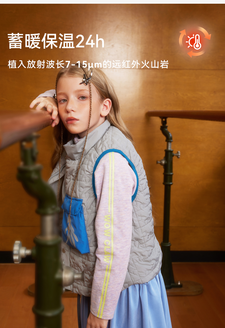 美国WOL 秋冬儿童夹棉马甲秋冬款男女童保暖运动衣轻薄户外外套小爪衣